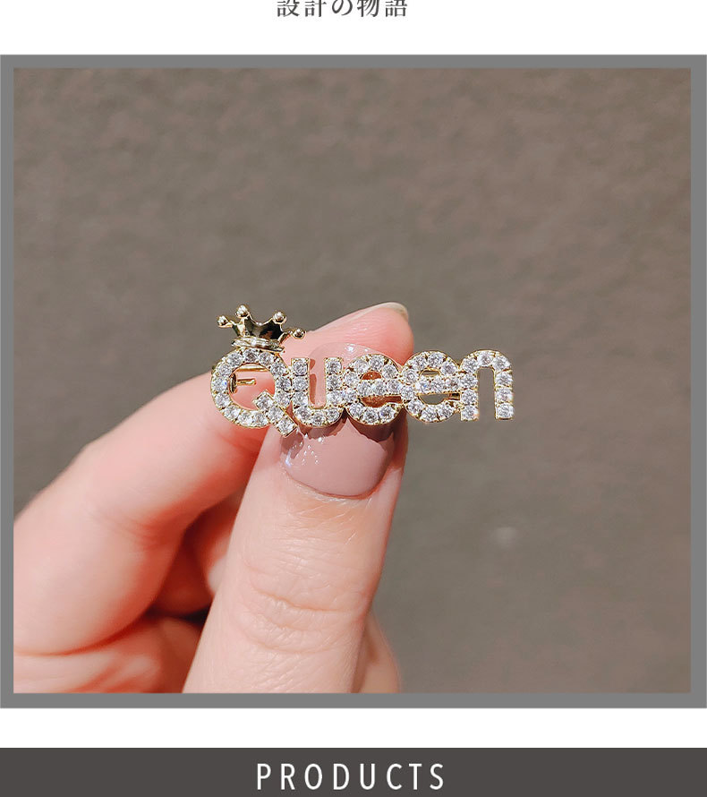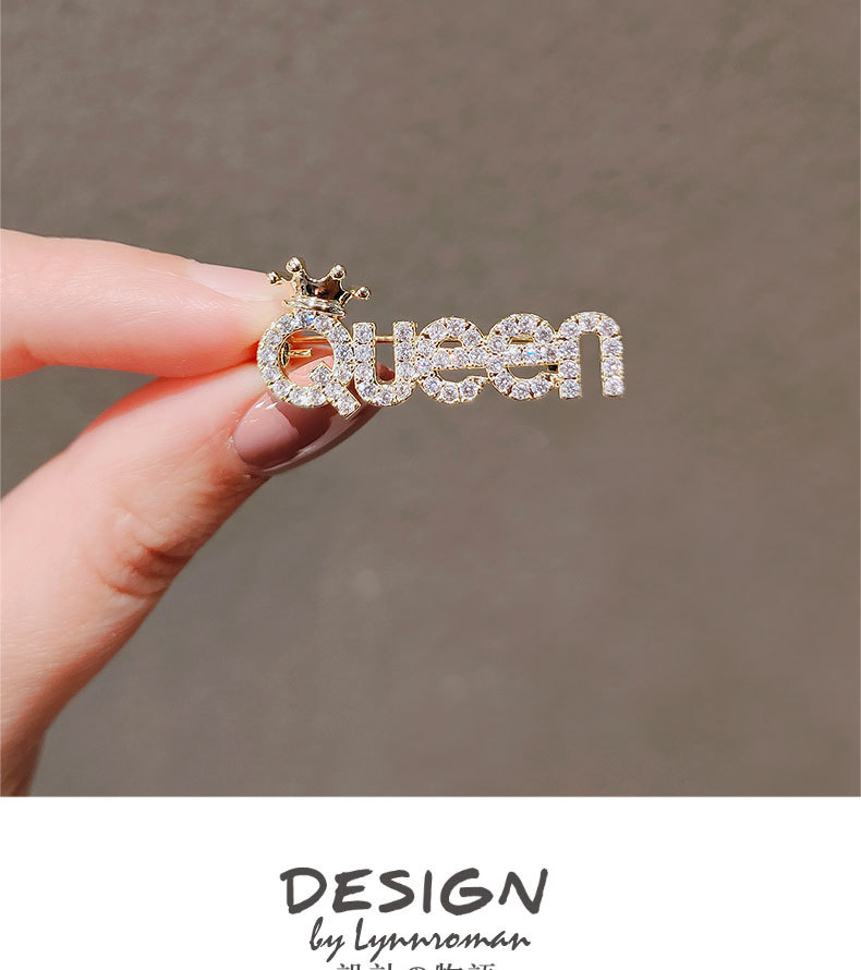 防走光胸针字母QUEEN胸针女潮个性别针领针防走光扣百搭配饰批发