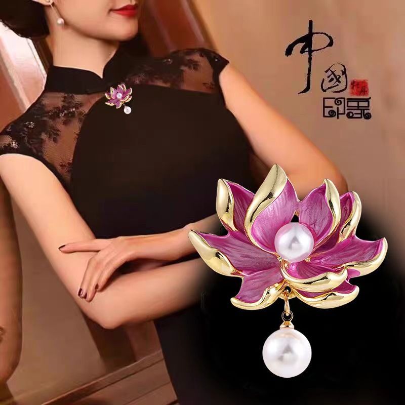 高档莲花胸针女中式旗袍胸花别针西装外套扣针高级感古风配饰批发