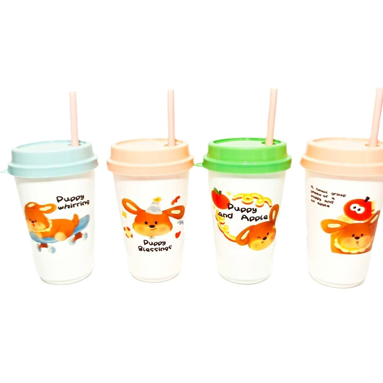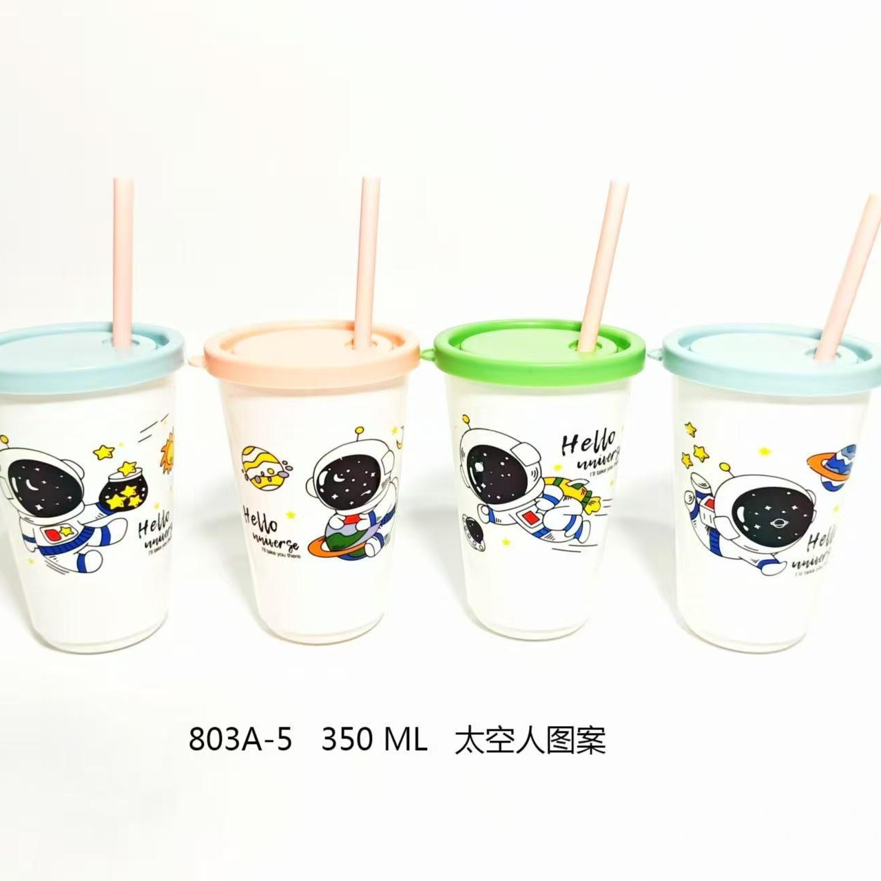 卡通小鹿宇航员创意塑料成人吸管杯随手杯学生情侣果汁杯便携水杯