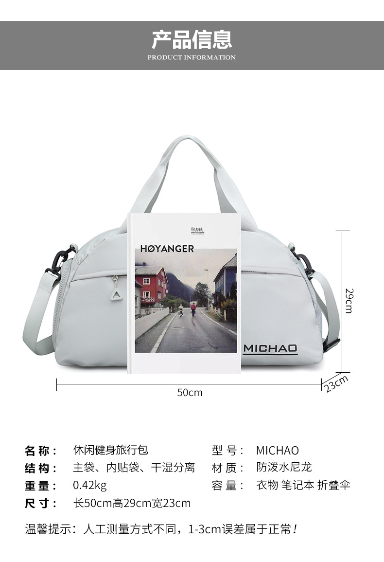 休闲短途出差旅行包2024新款干湿分离游泳健身包女轻便手提瑜伽包