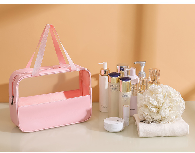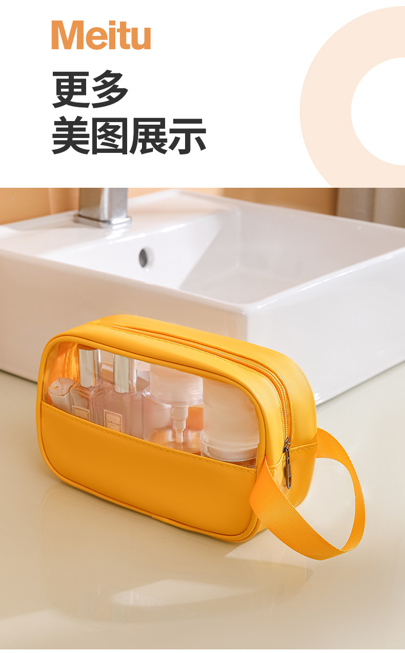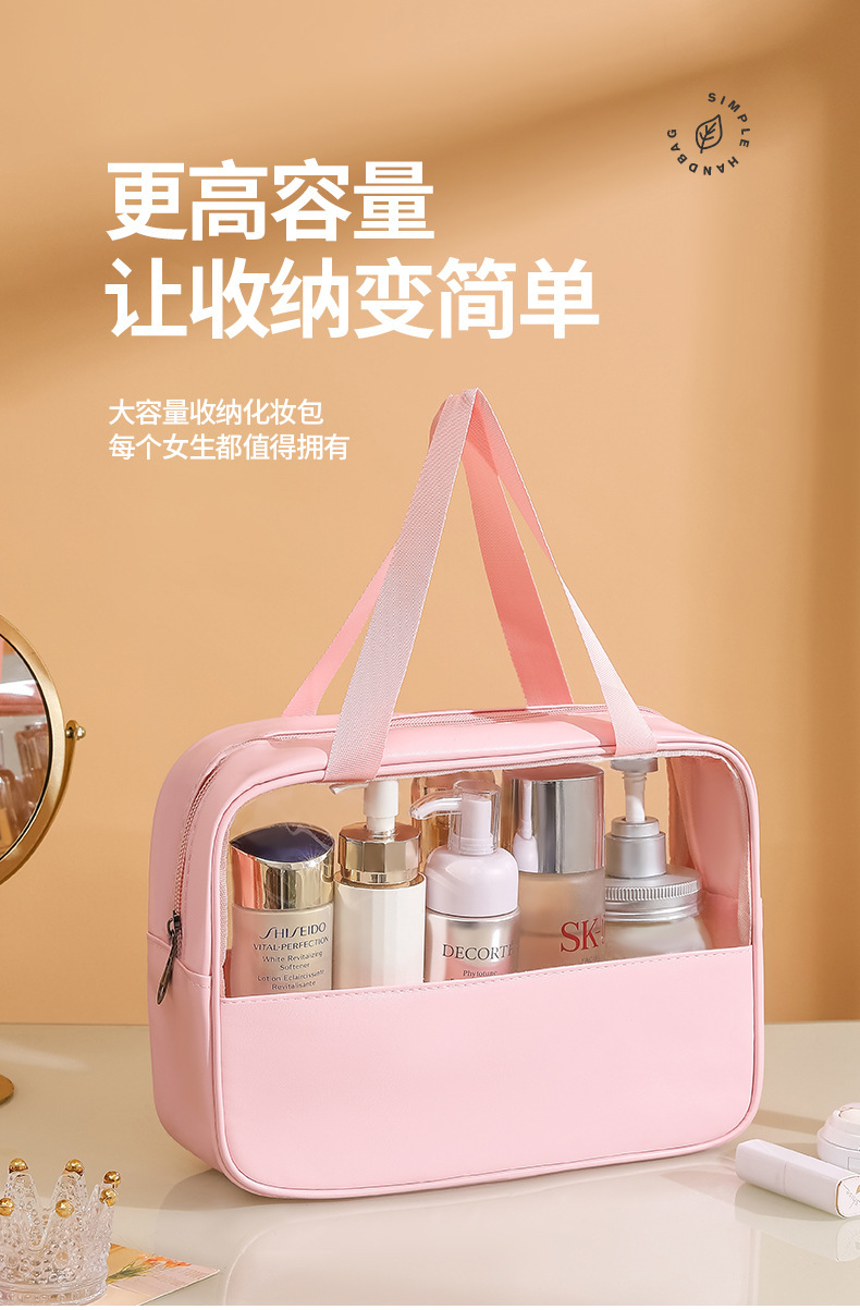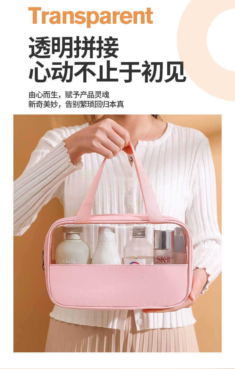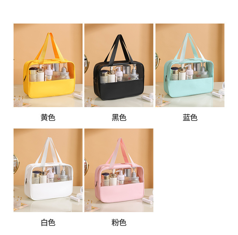 现货PVC半透明拼接化妆包 大容量洗浴包PU防水手提便携旅行收纳袋