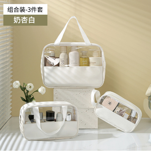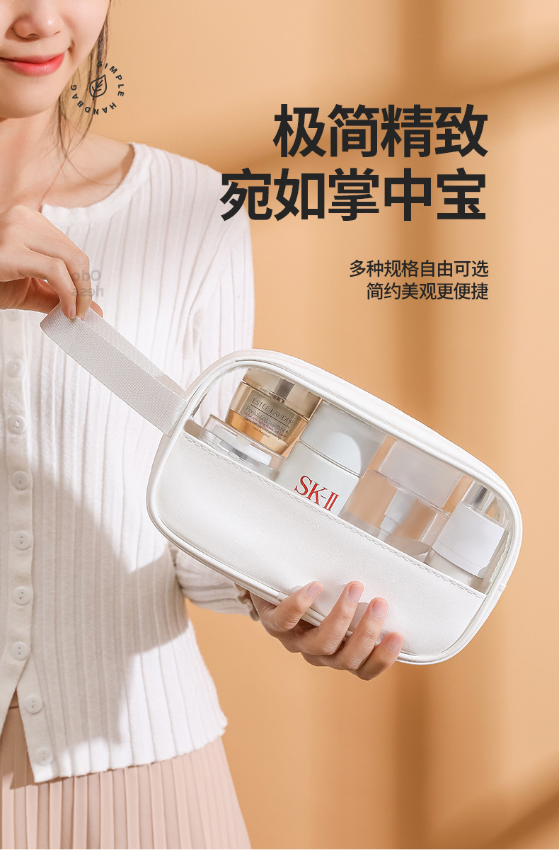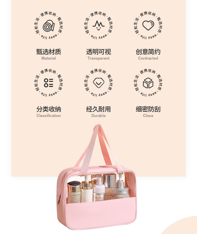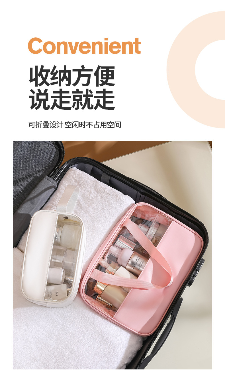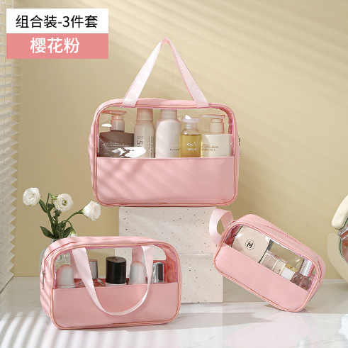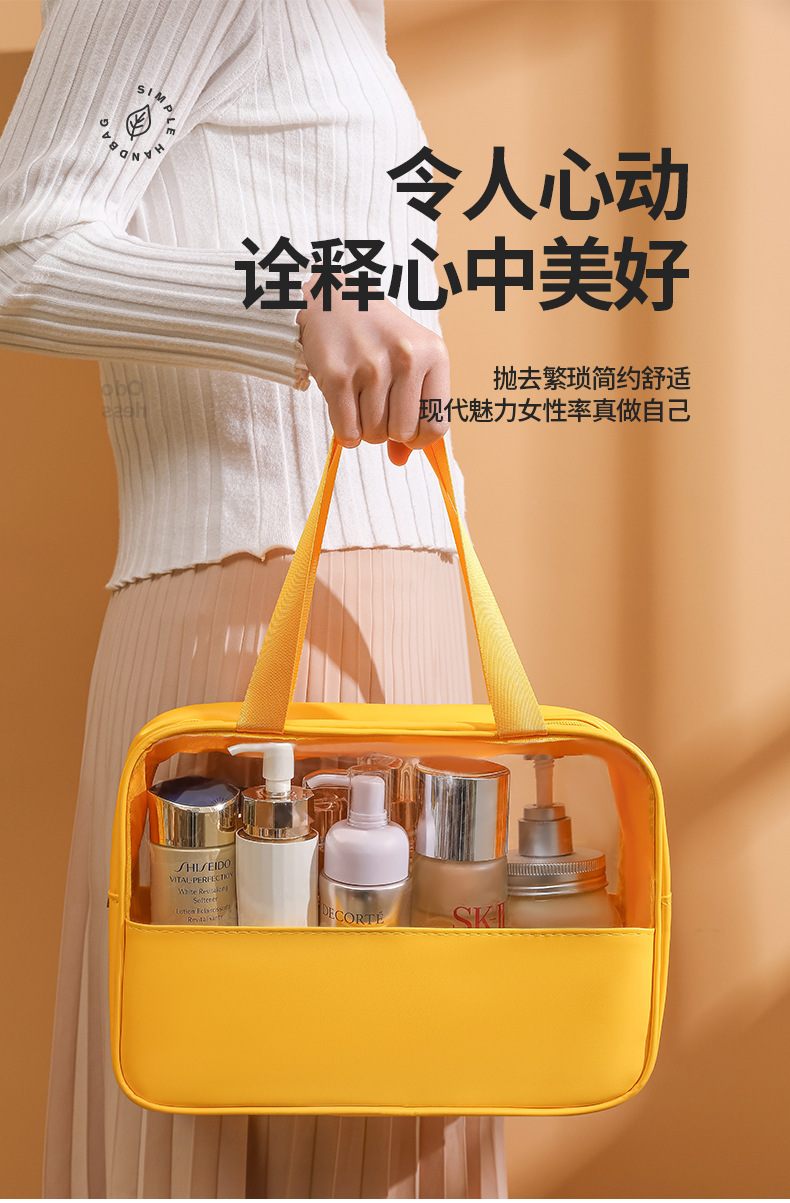 现货PVC半透明拼接化妆包 大容量洗浴包PU防水手提便携旅行收纳袋