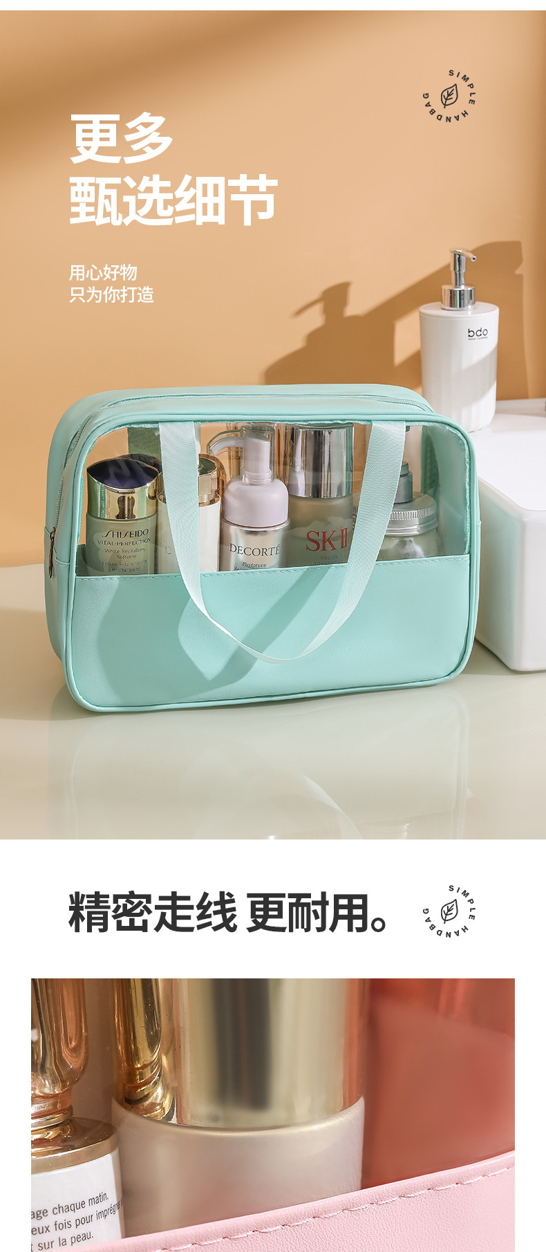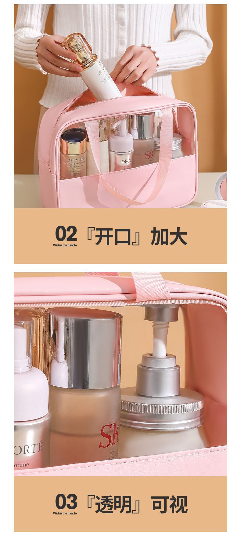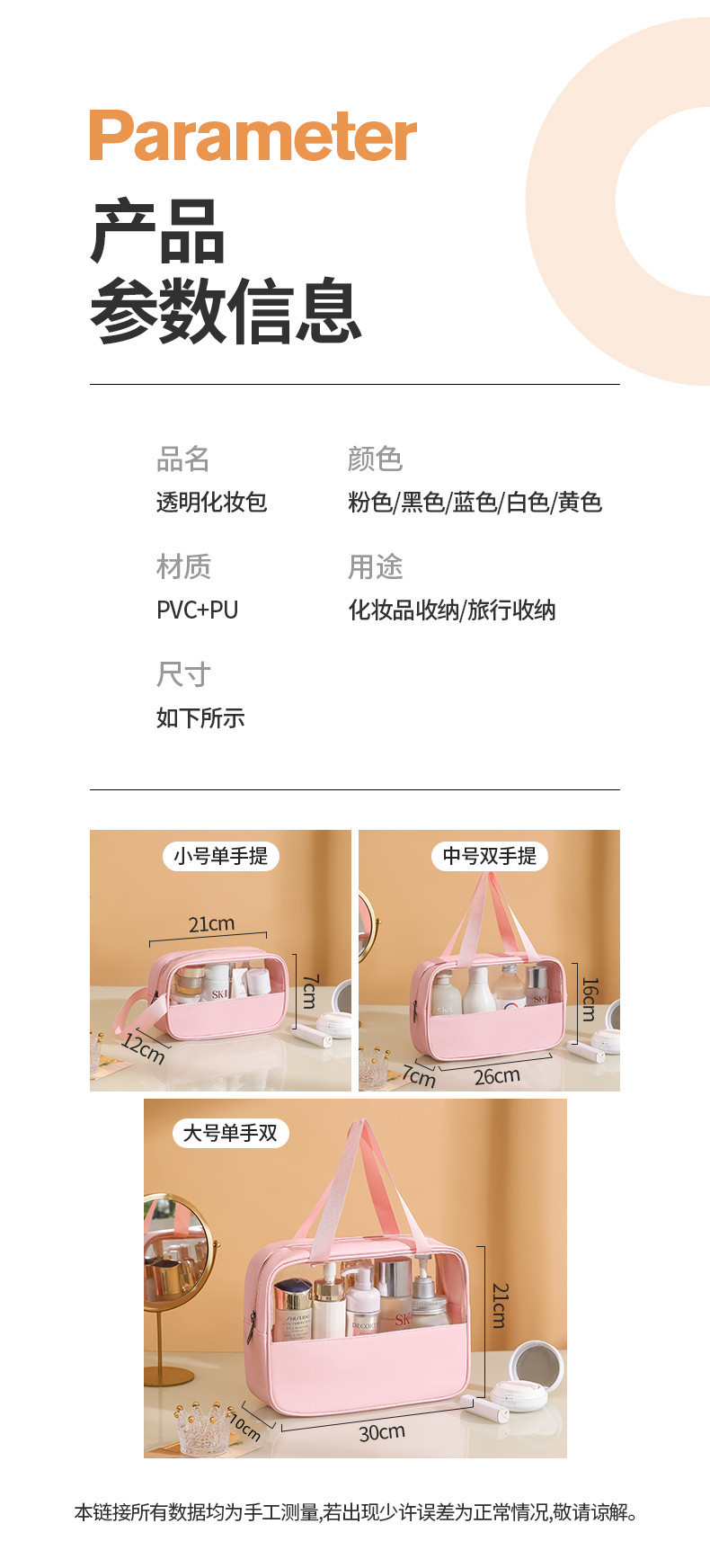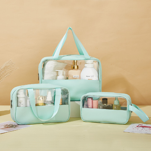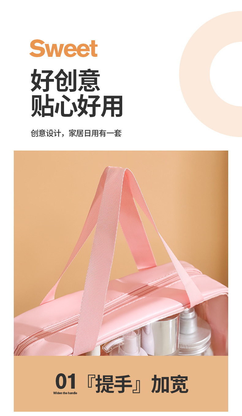 现货PVC半透明拼接化妆包 大容量洗浴包PU防水手提便携旅行收纳袋