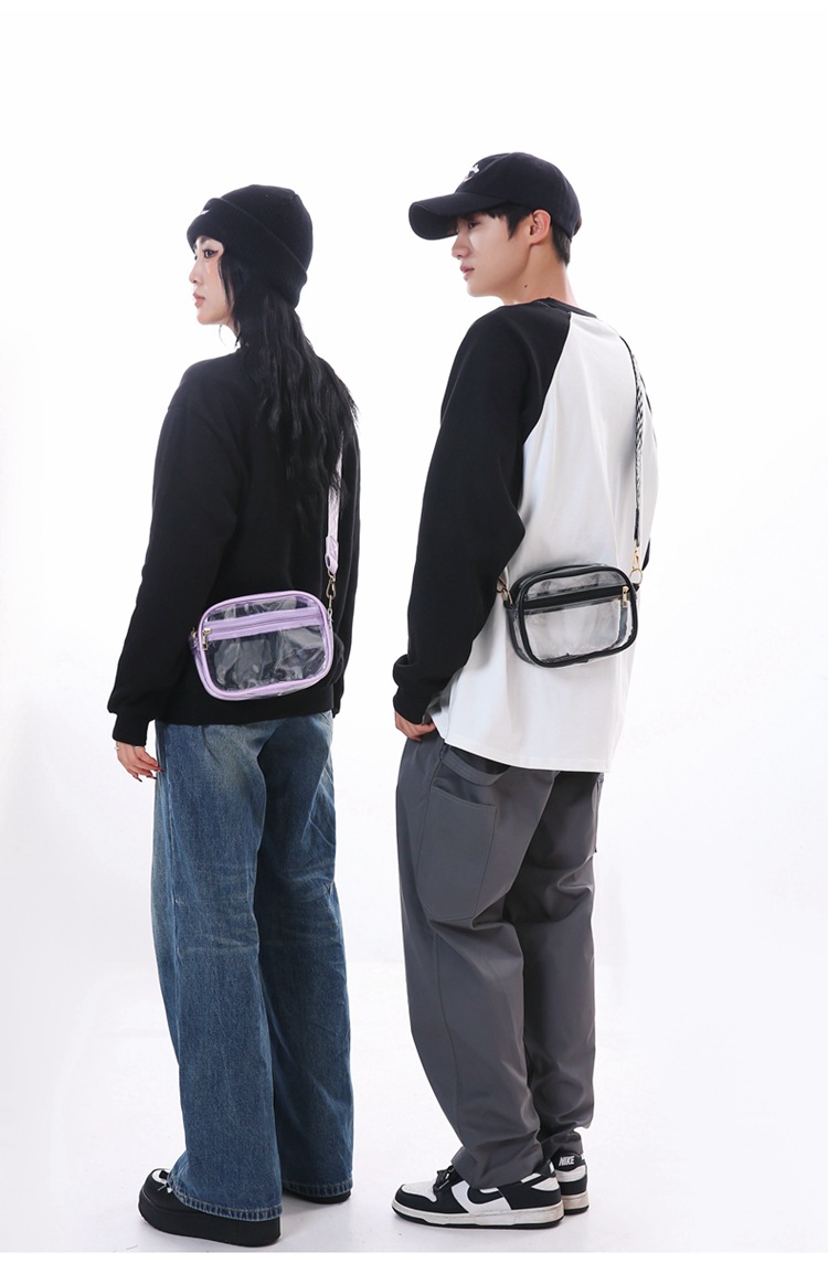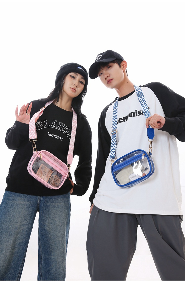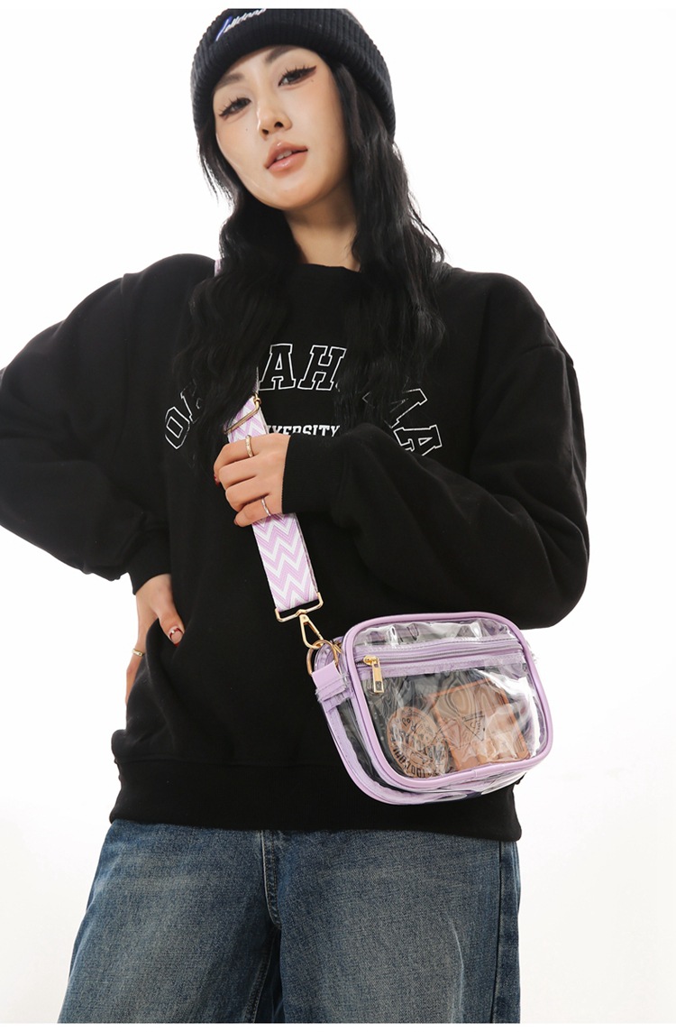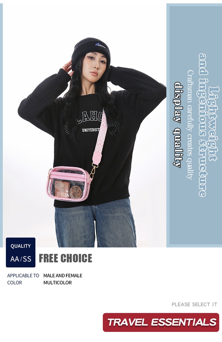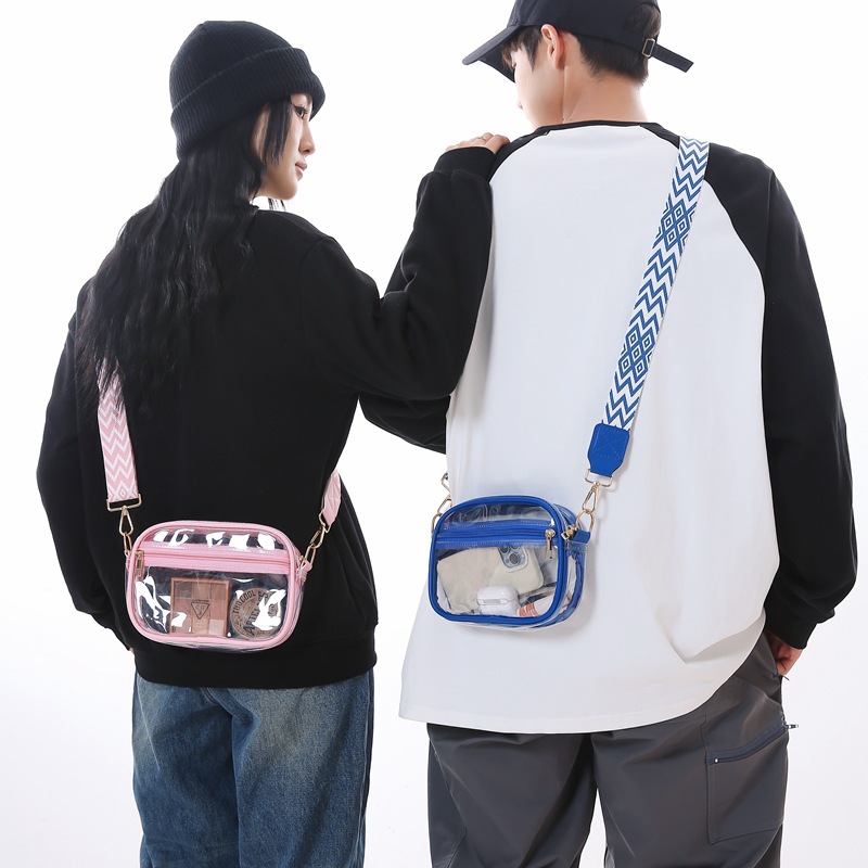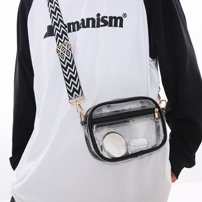 跨境亚马逊潮流港风透明PVC斜挎小包PVC透明单肩沙滩包透明斜挎包