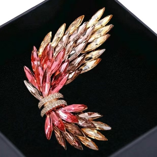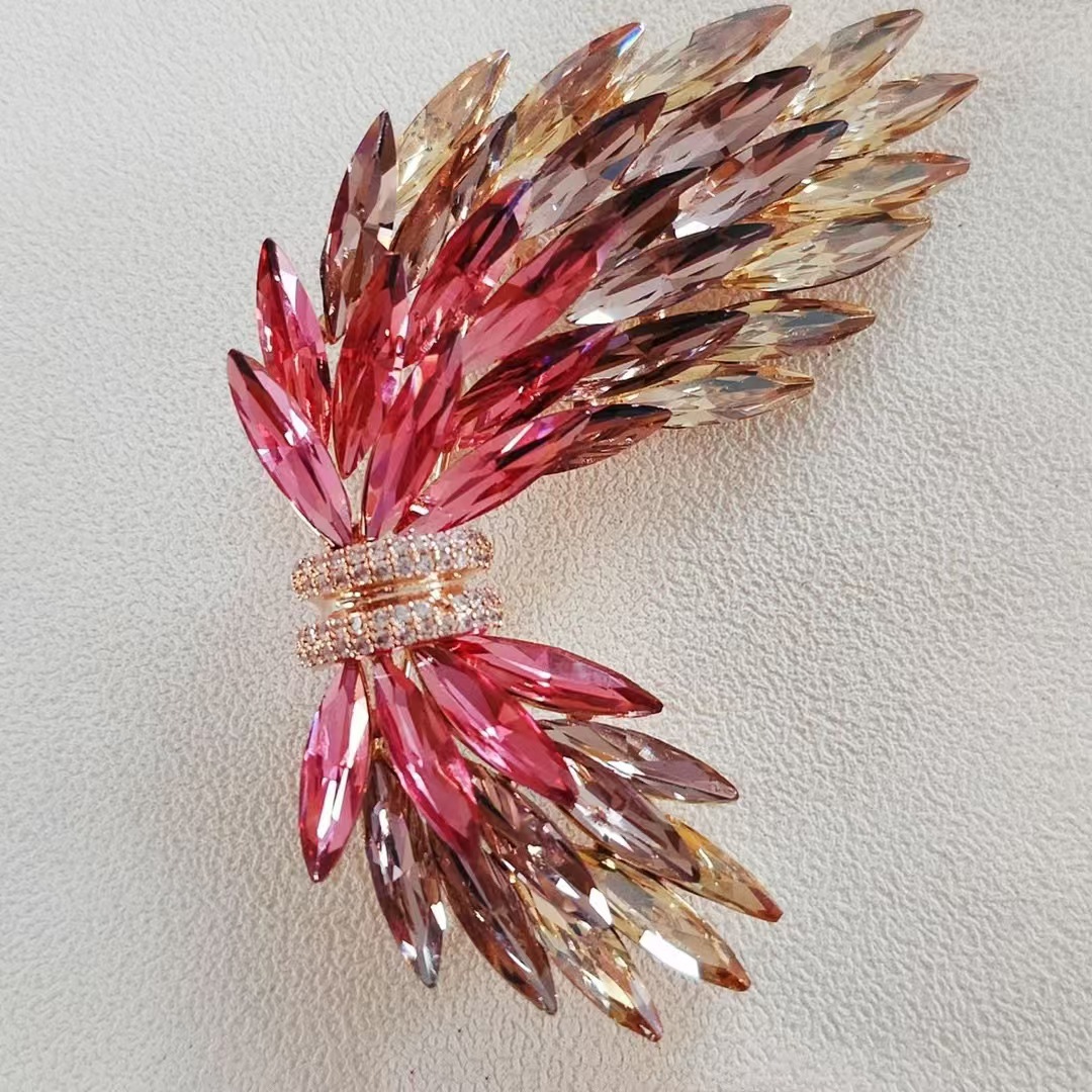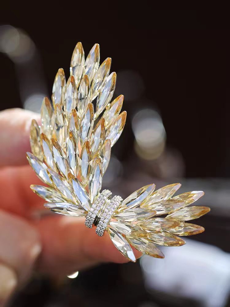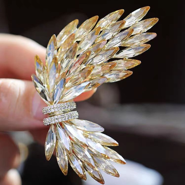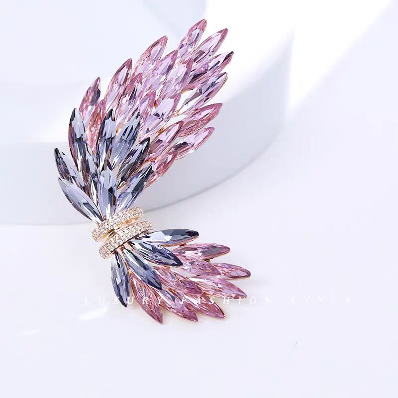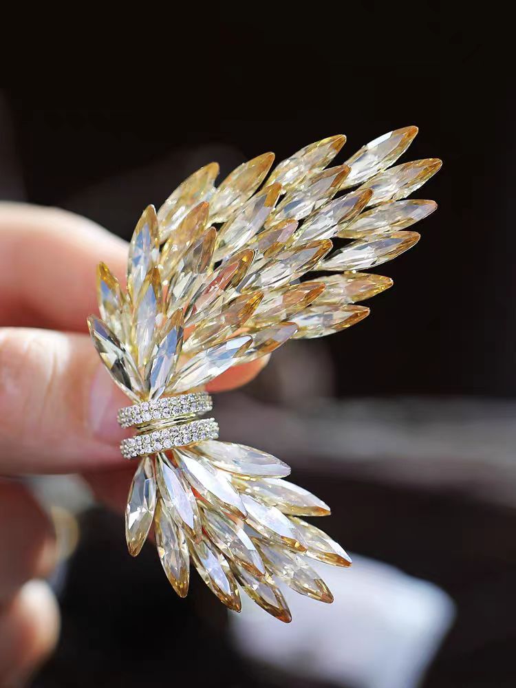 小众设计天使羽翼胸针 高颜值水晶防走光胸花 奢华气质服饰领针