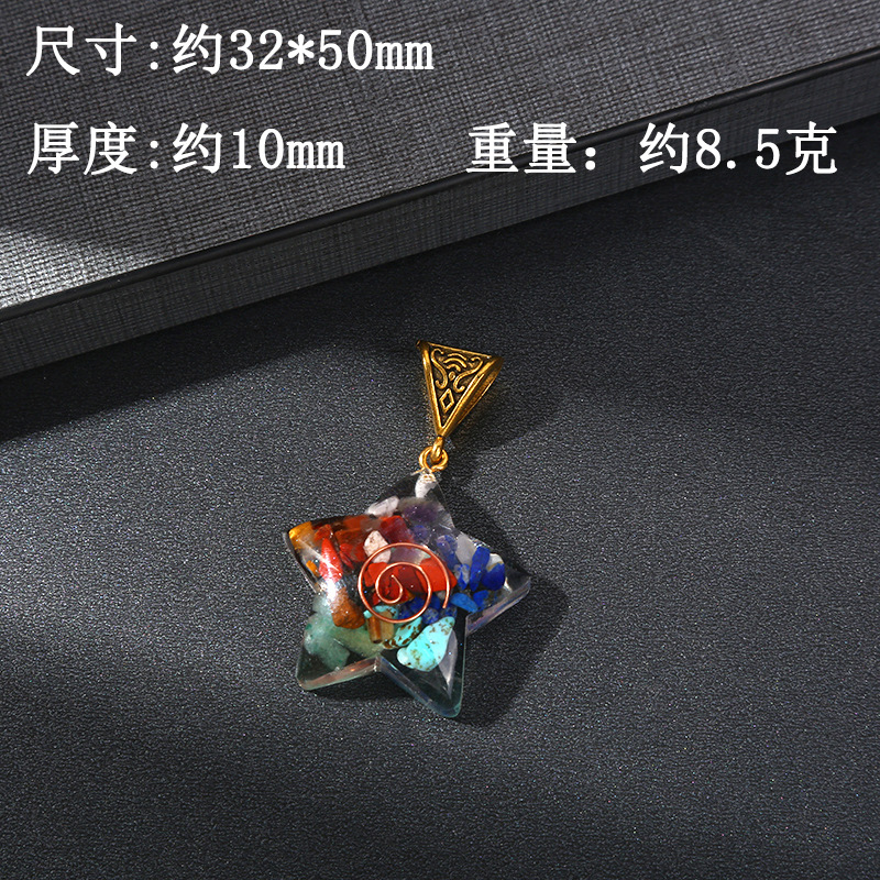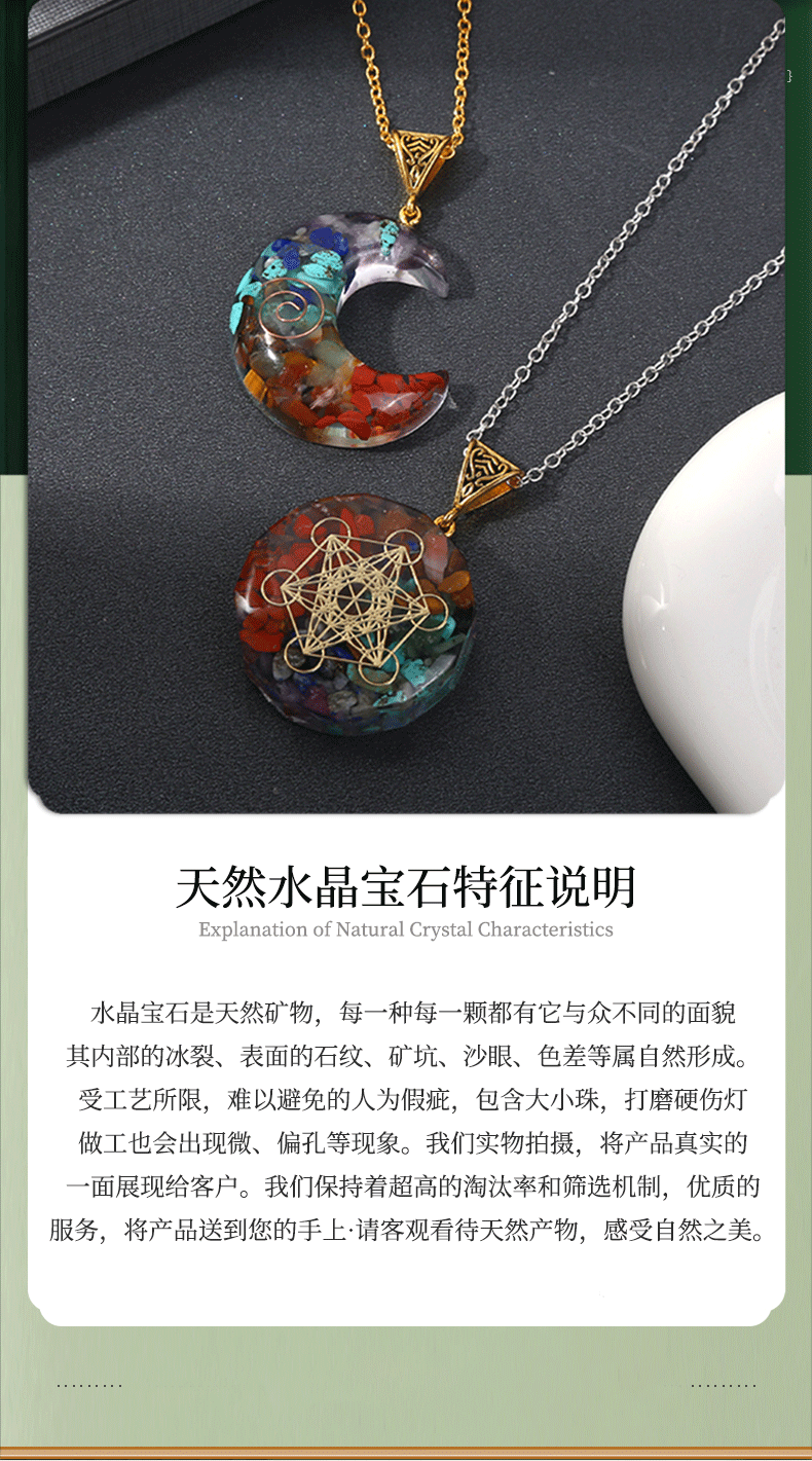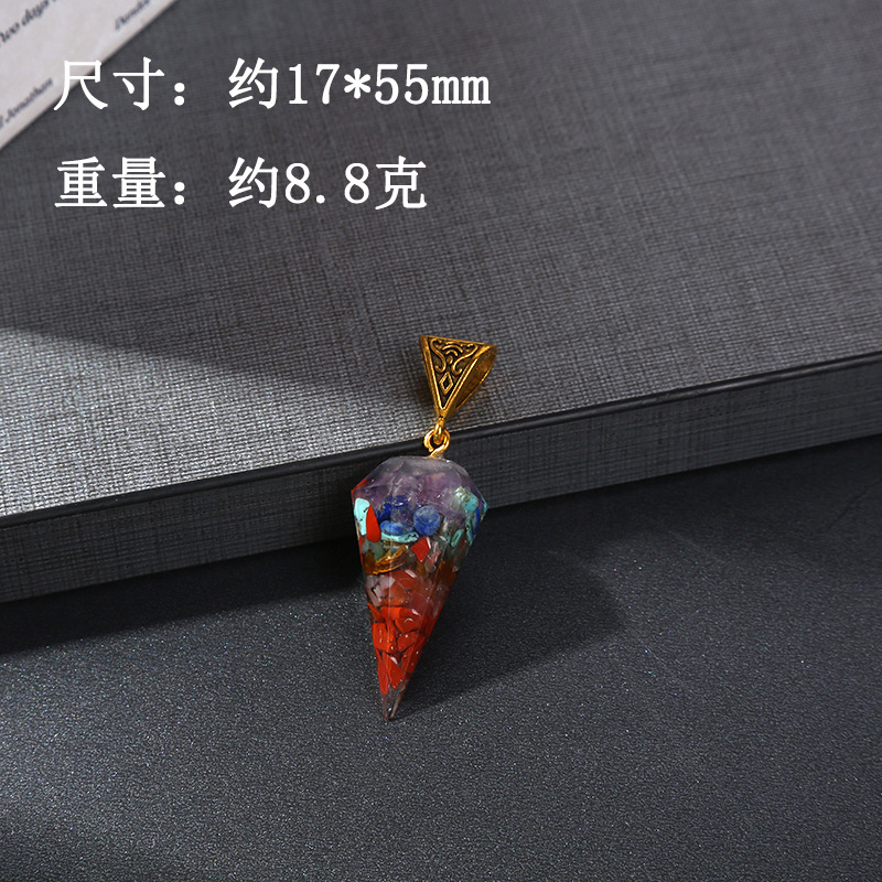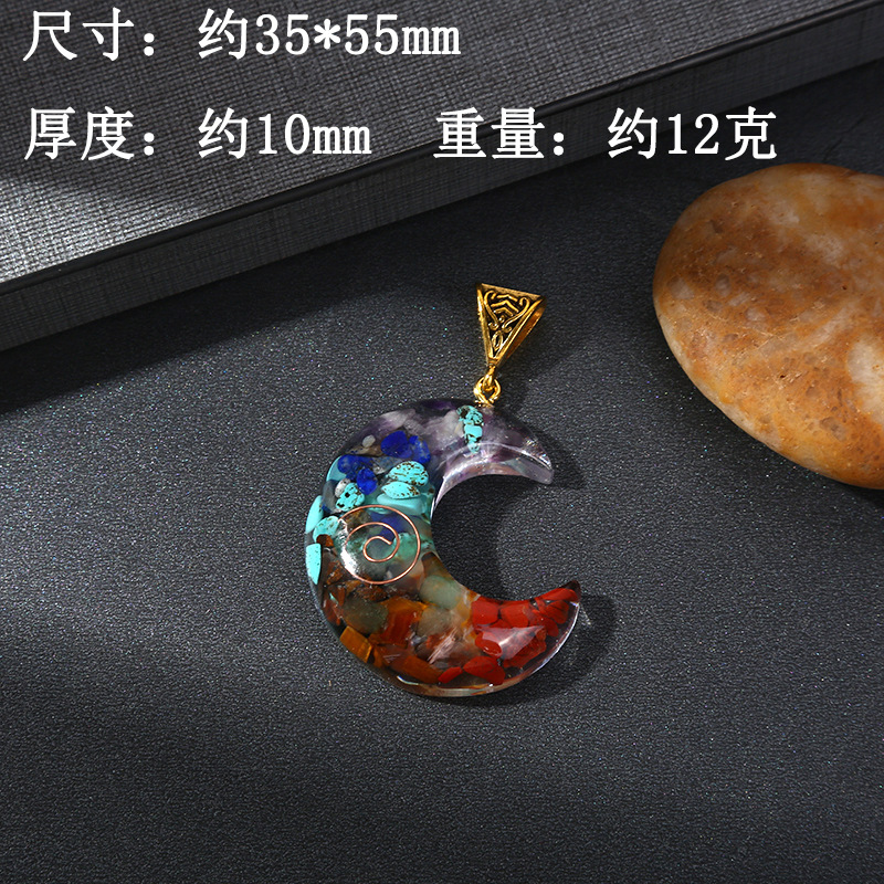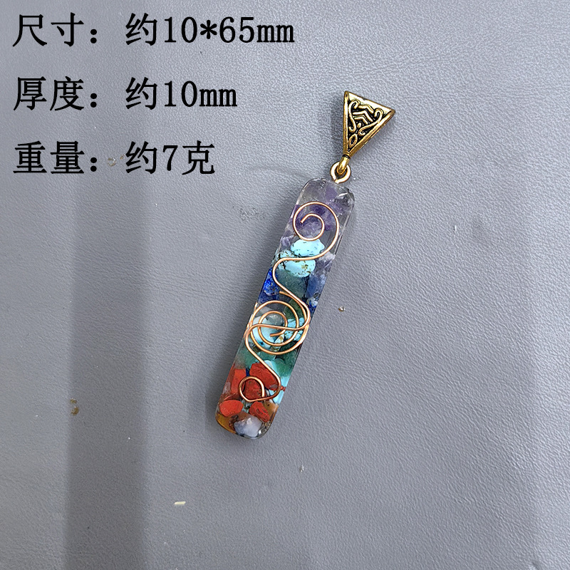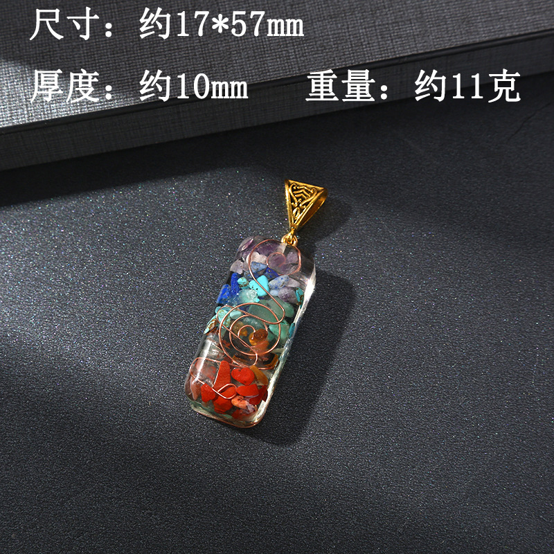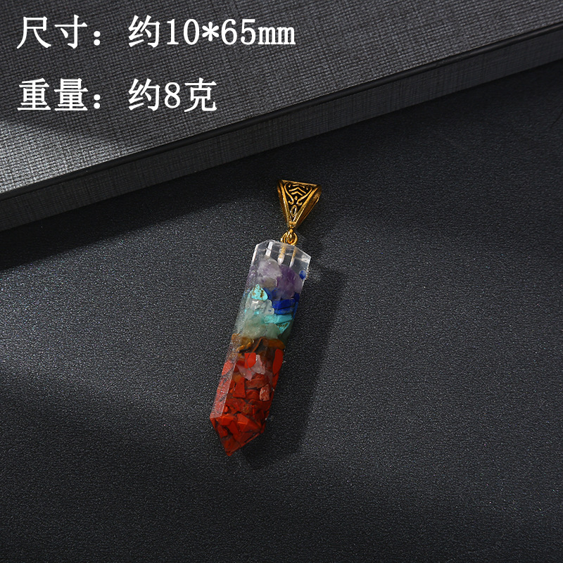 跨境热销天然七彩水晶碎石吊坠六角柱月亮长方体包裹项链饰品批发
