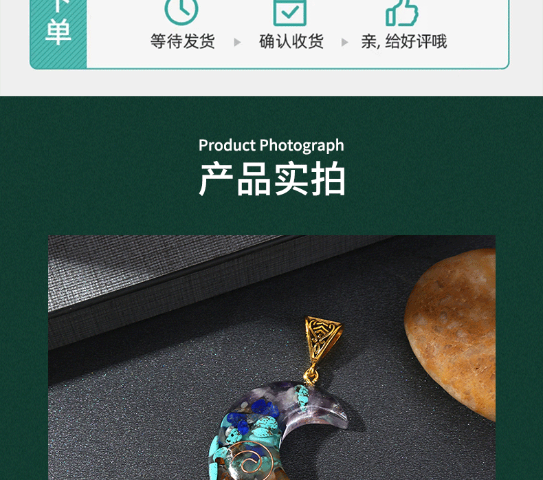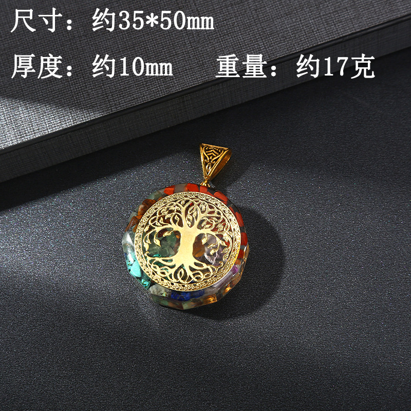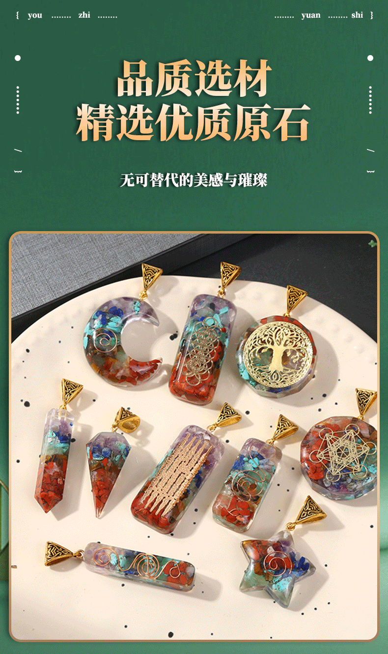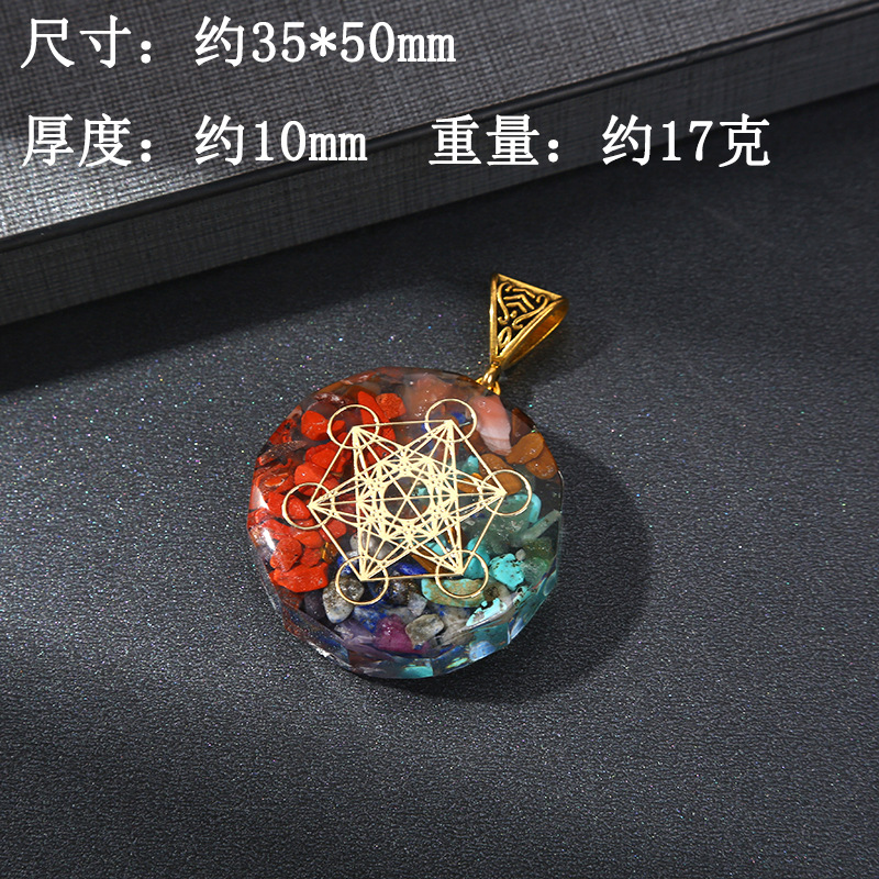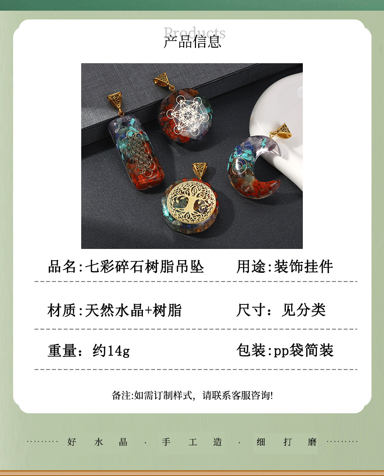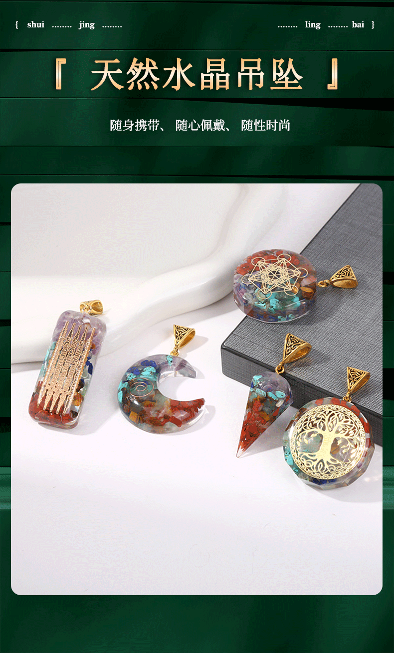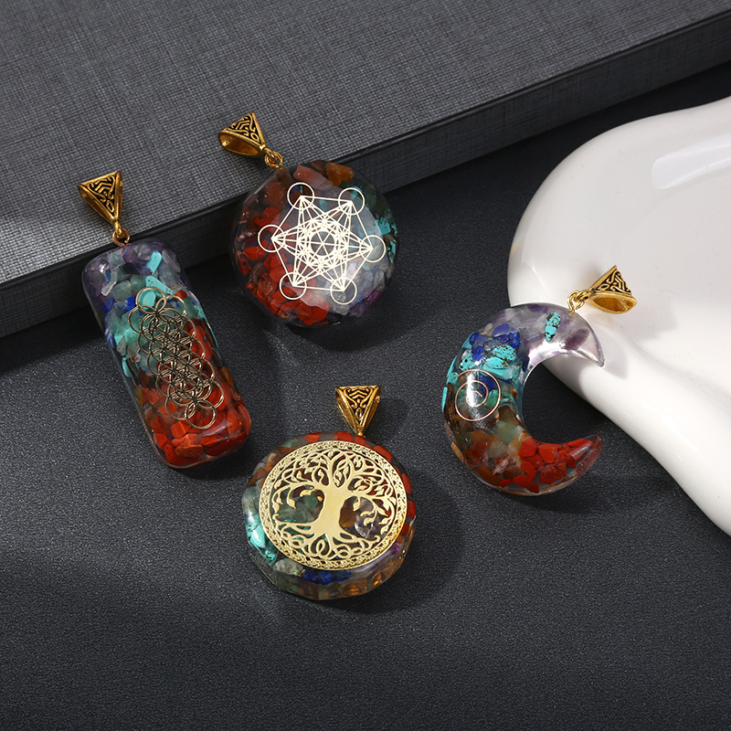 跨境热销天然七彩水晶碎石吊坠六角柱月亮长方体包裹项链饰品批发