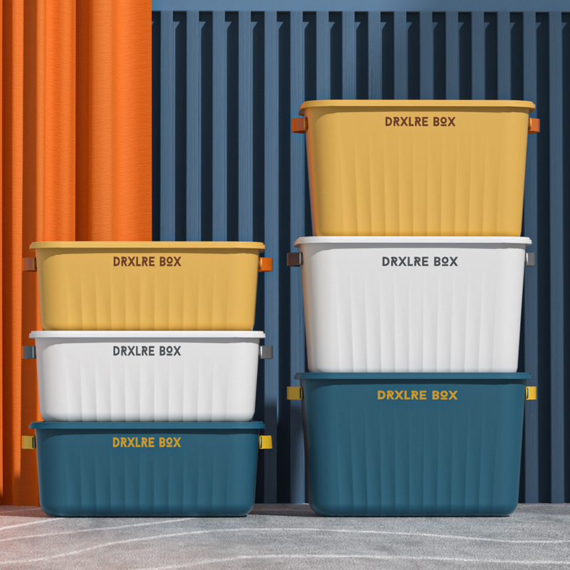 收纳盒桌面首饰化妆品塑料杂物收纳筐带盖盒子水果玩具调料储物盒