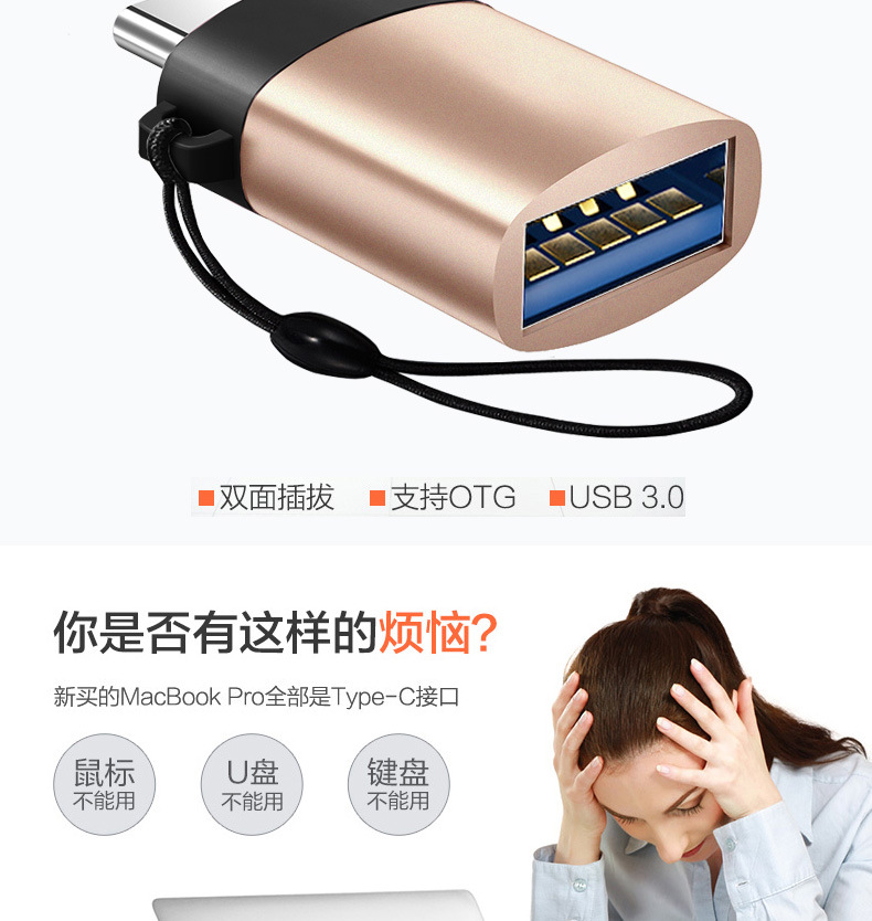 通用otg转接头u盘转换器转接线安卓typec转USB键盘手机下载歌曲器