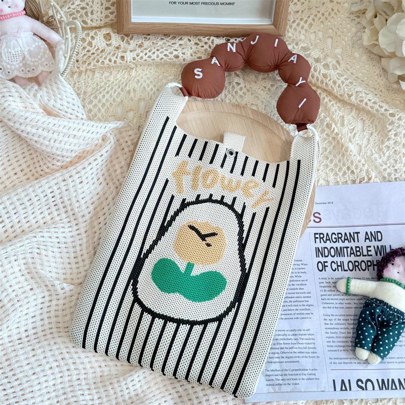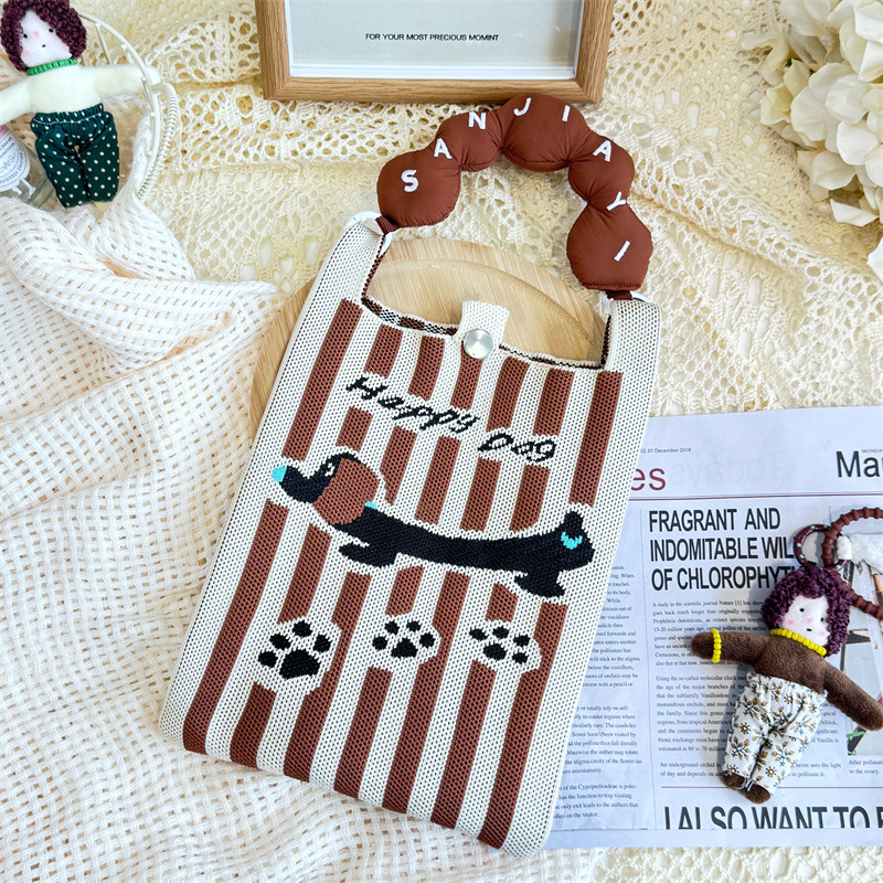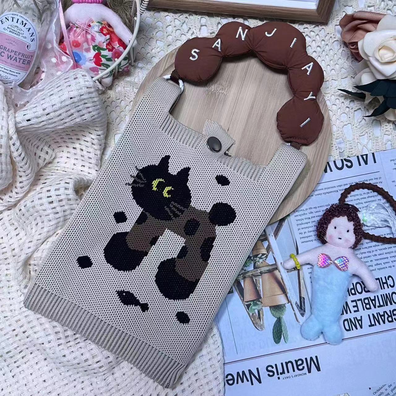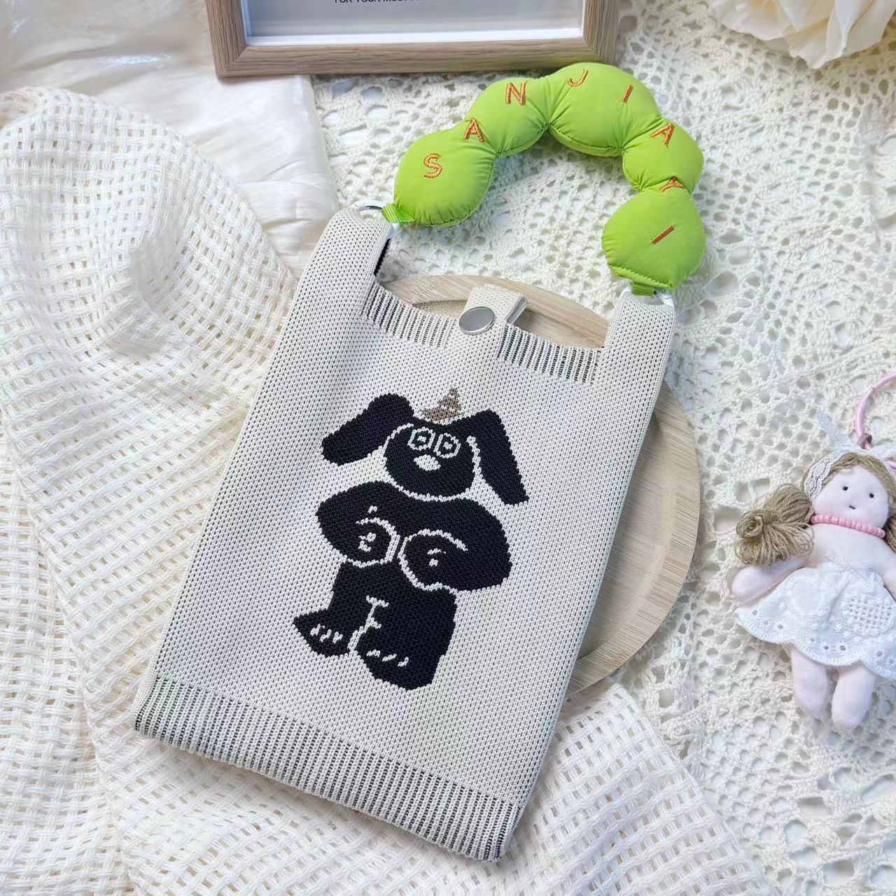 韩国ins原创针织手提手机包新款便捷收纳学生可爱卡通时尚斜挎包