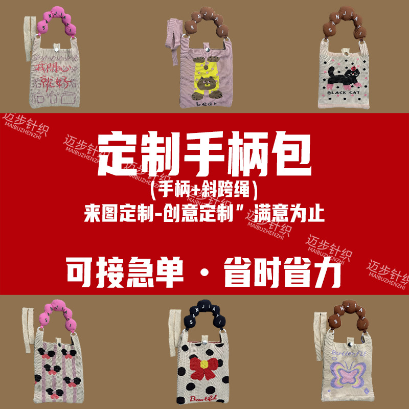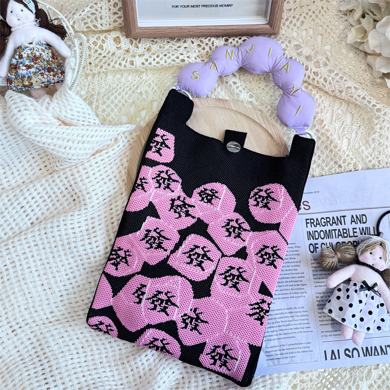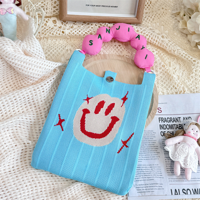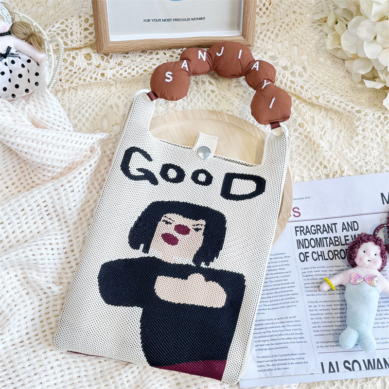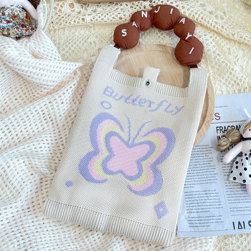 韩国ins原创针织手提手机包新款便捷收纳学生可爱卡通时尚斜挎包