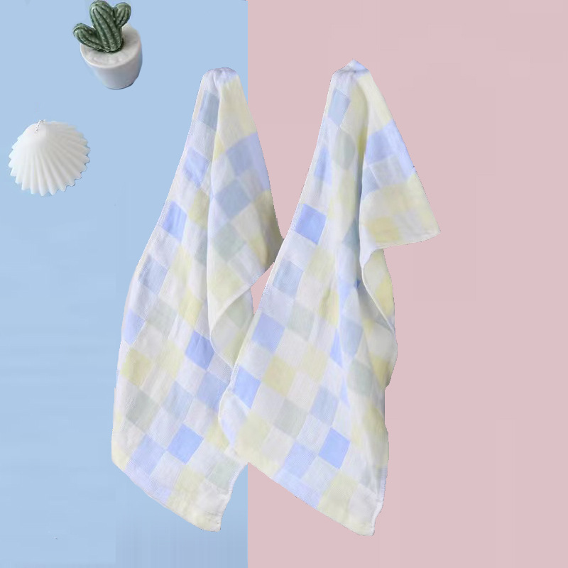 双层纱布童巾薄款格子可挂纯棉宝宝口水巾婴幼儿儿童柔软小毛巾
