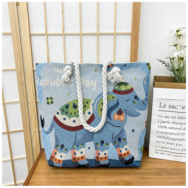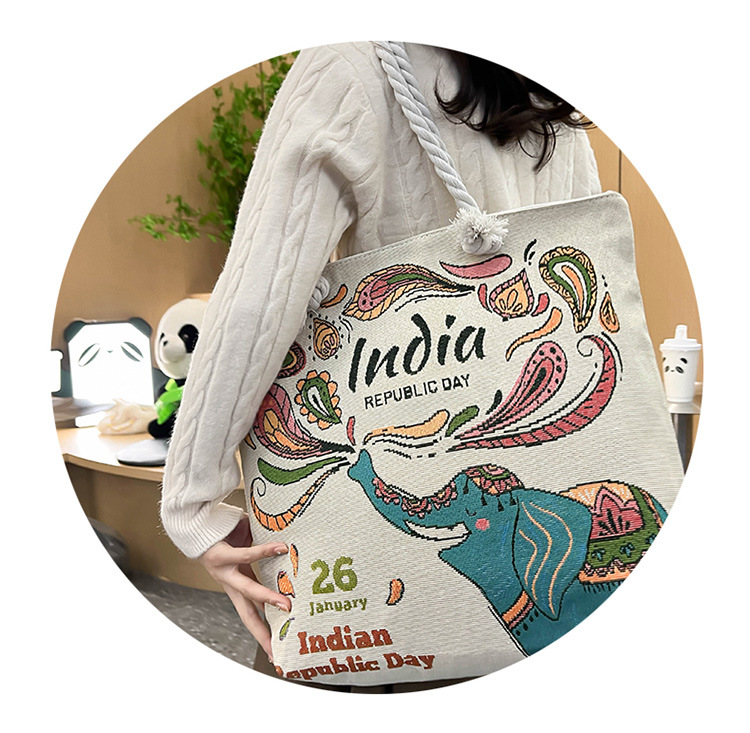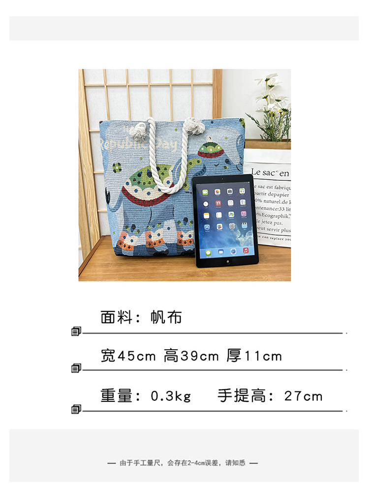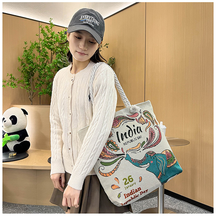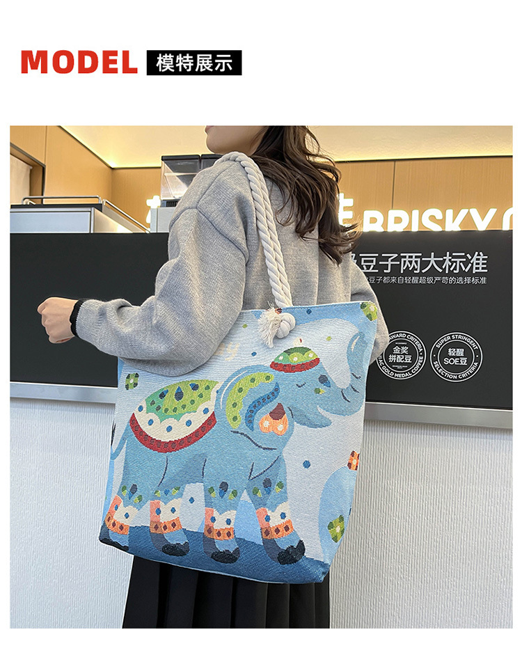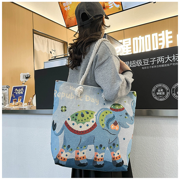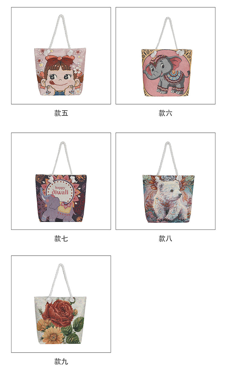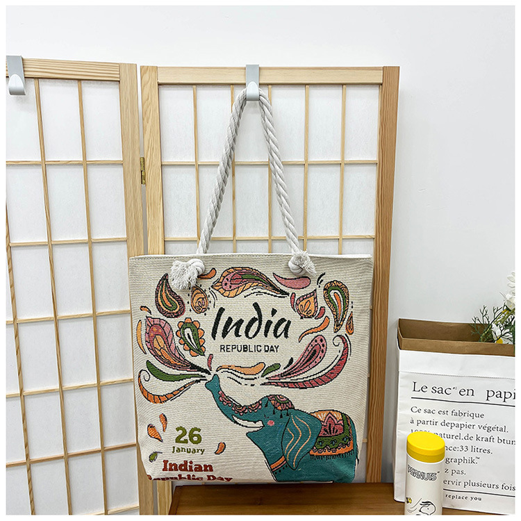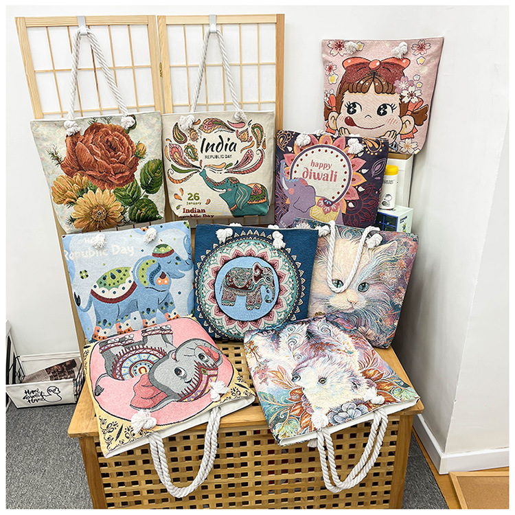 时尚民族风绣花托特包女粗麻绳单肩包亚麻刺绣帆布包大容量妈咪包