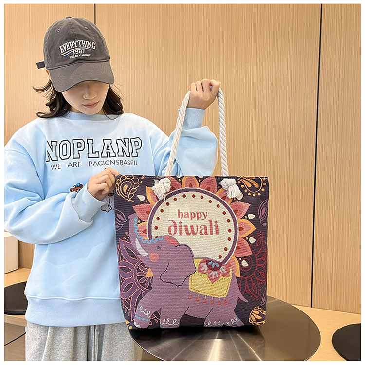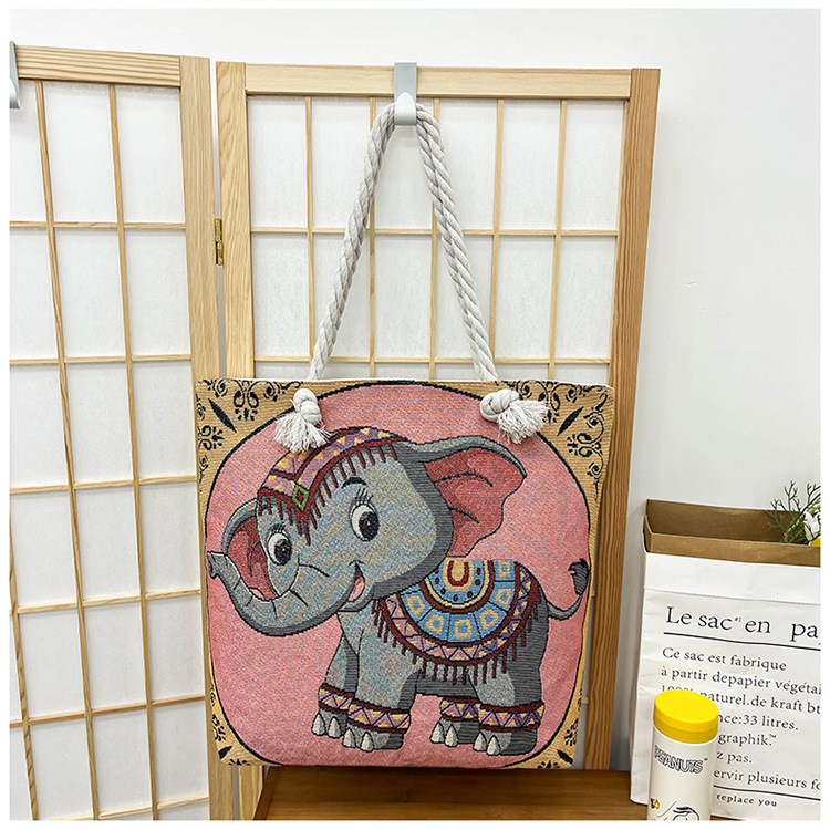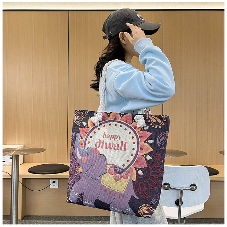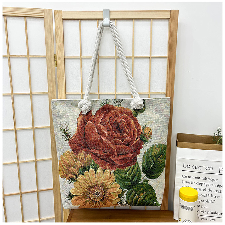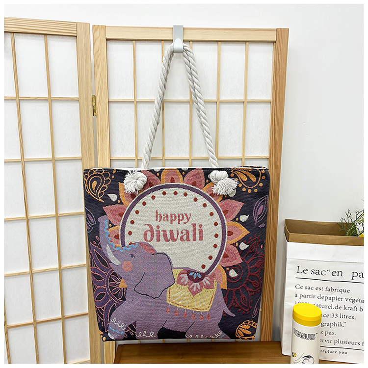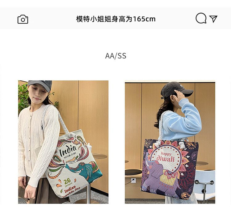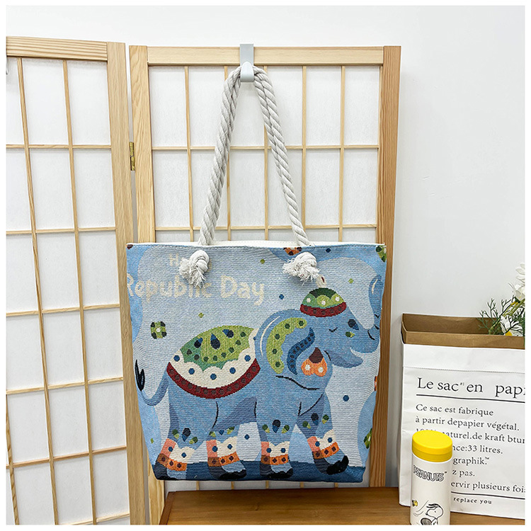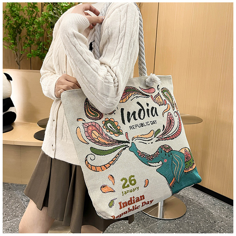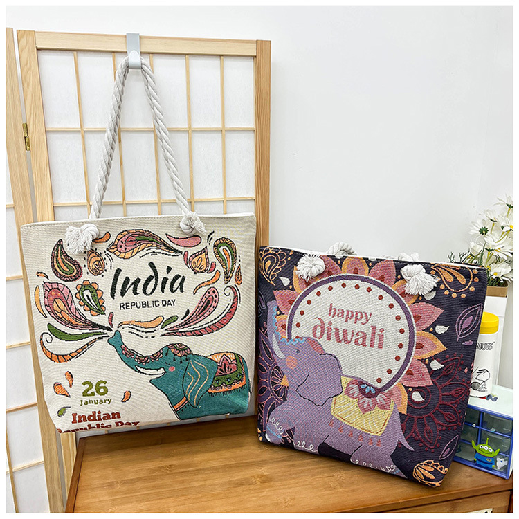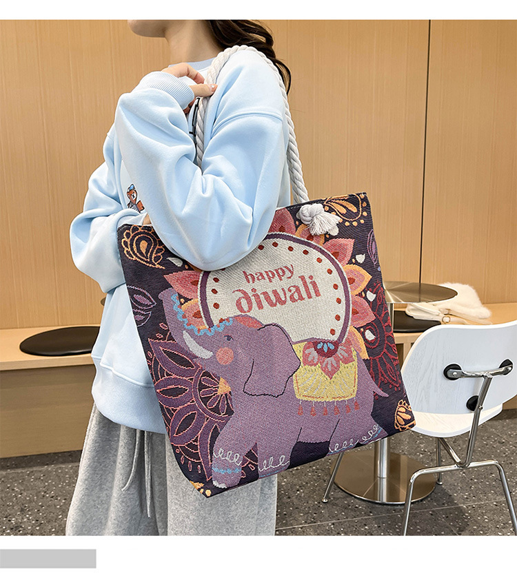 时尚民族风绣花托特包女粗麻绳单肩包亚麻刺绣帆布包大容量妈咪包