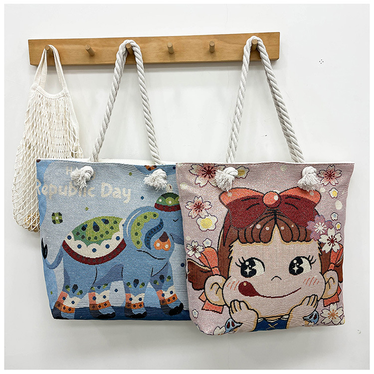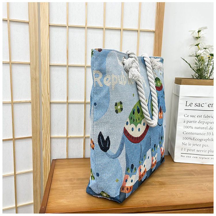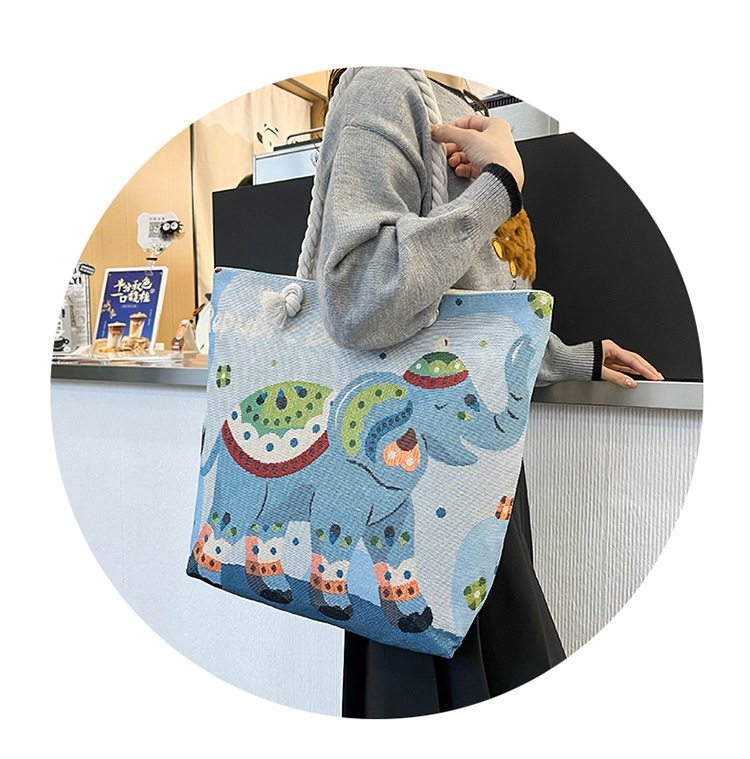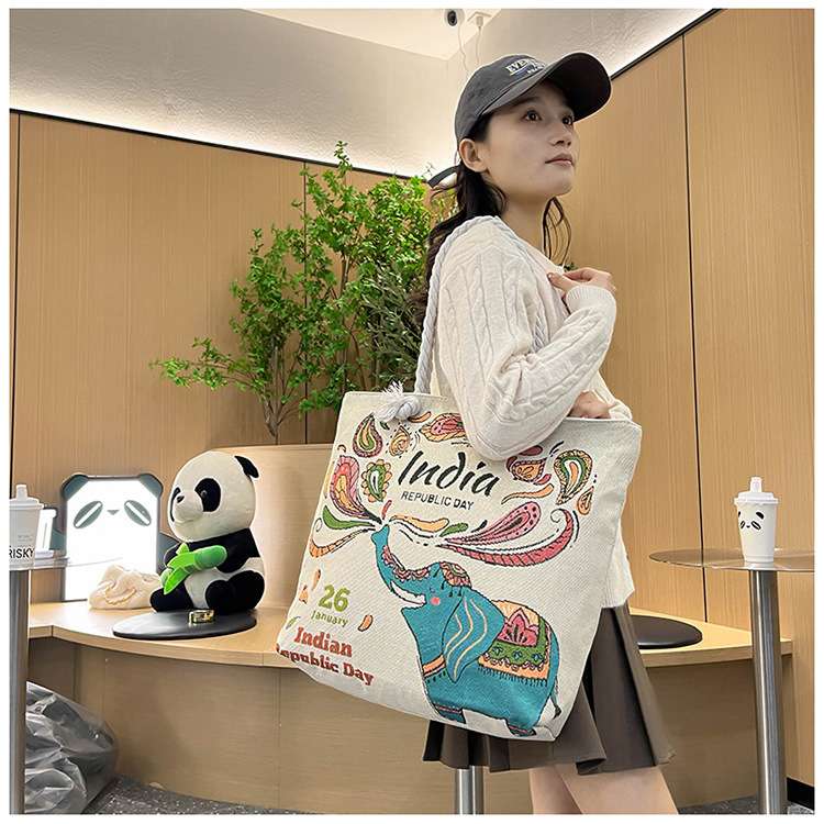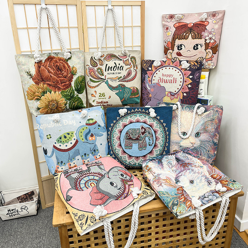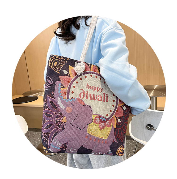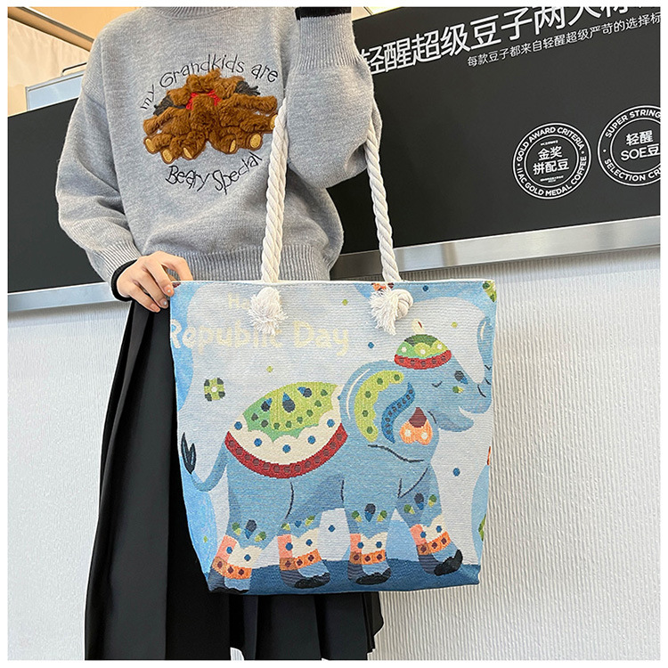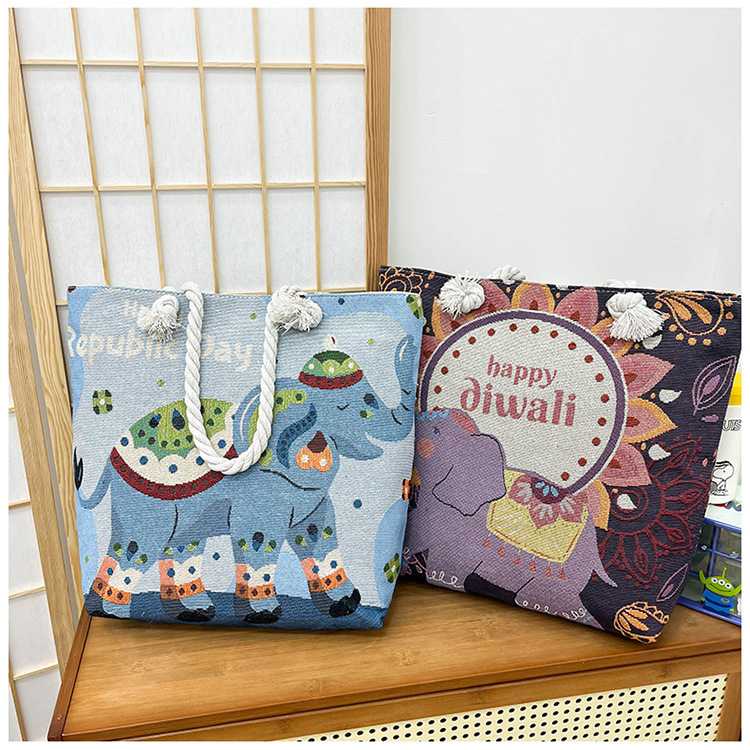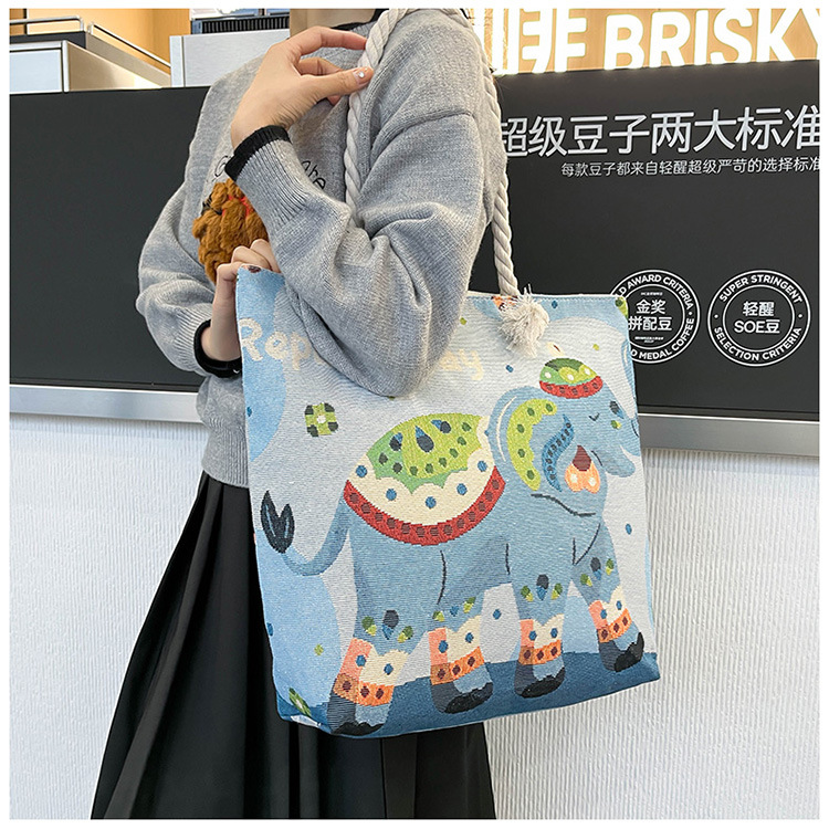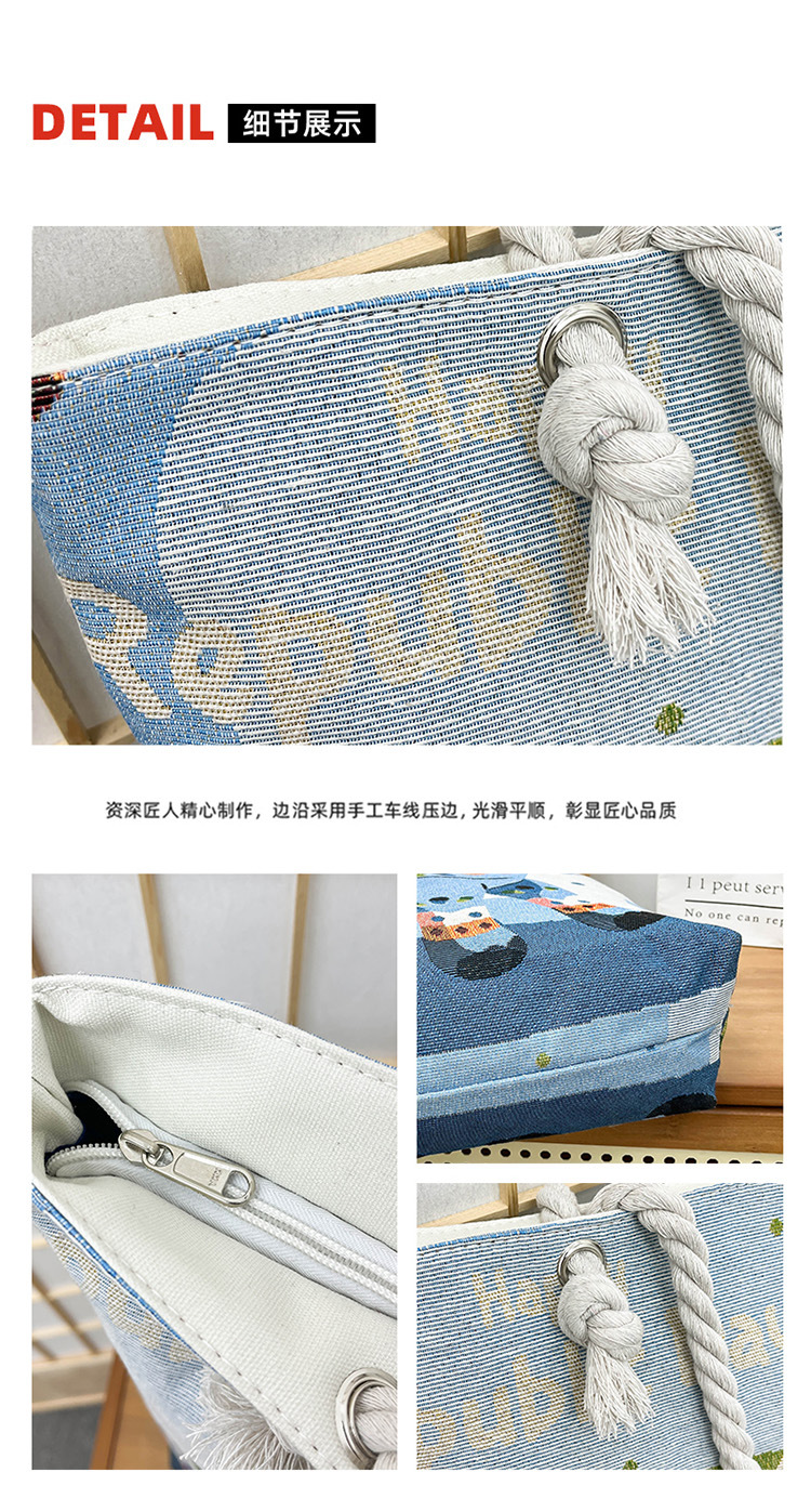 时尚民族风绣花托特包女粗麻绳单肩包亚麻刺绣帆布包大容量妈咪包