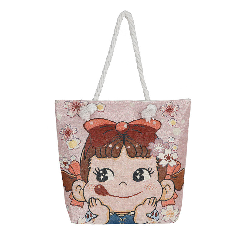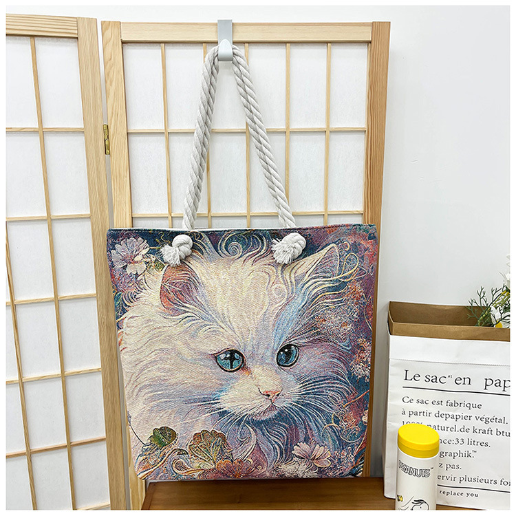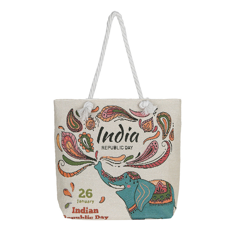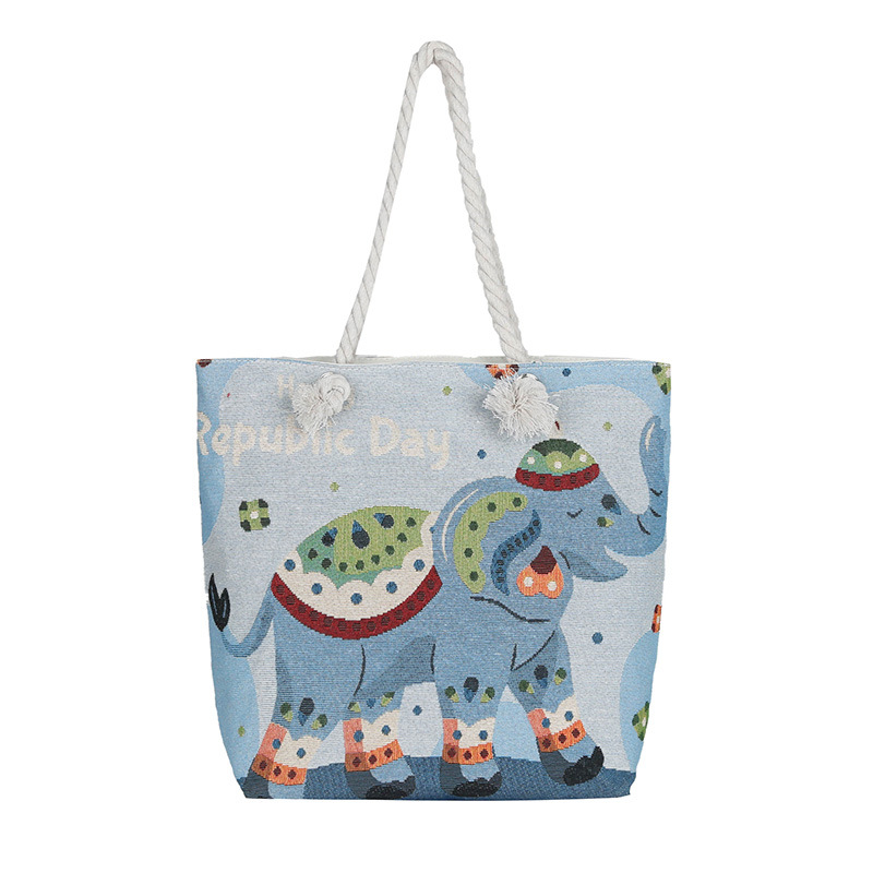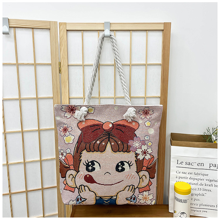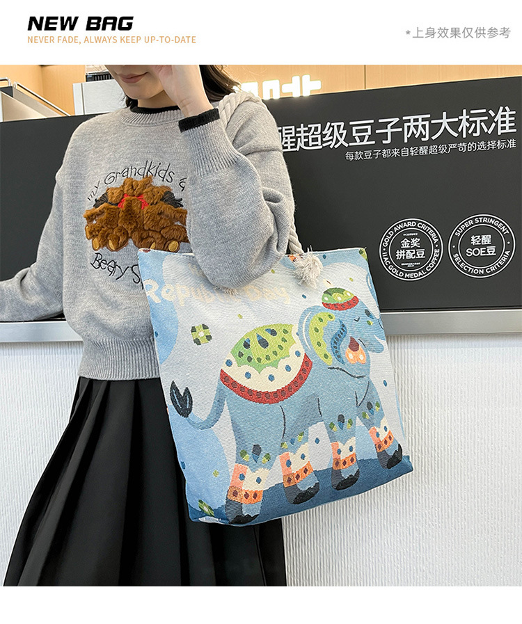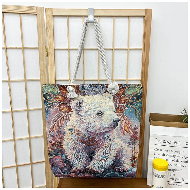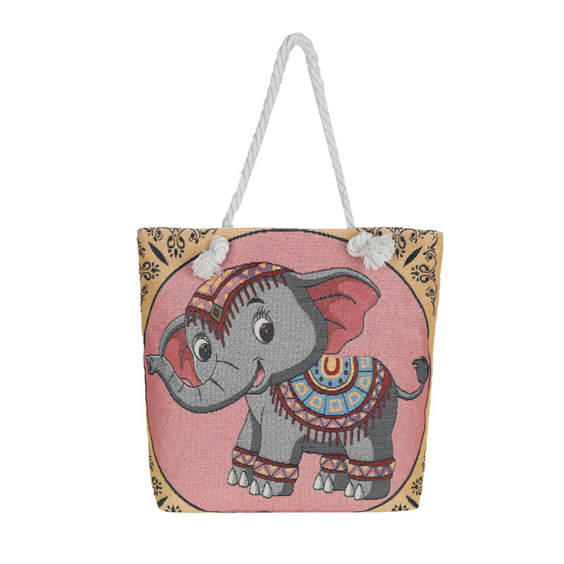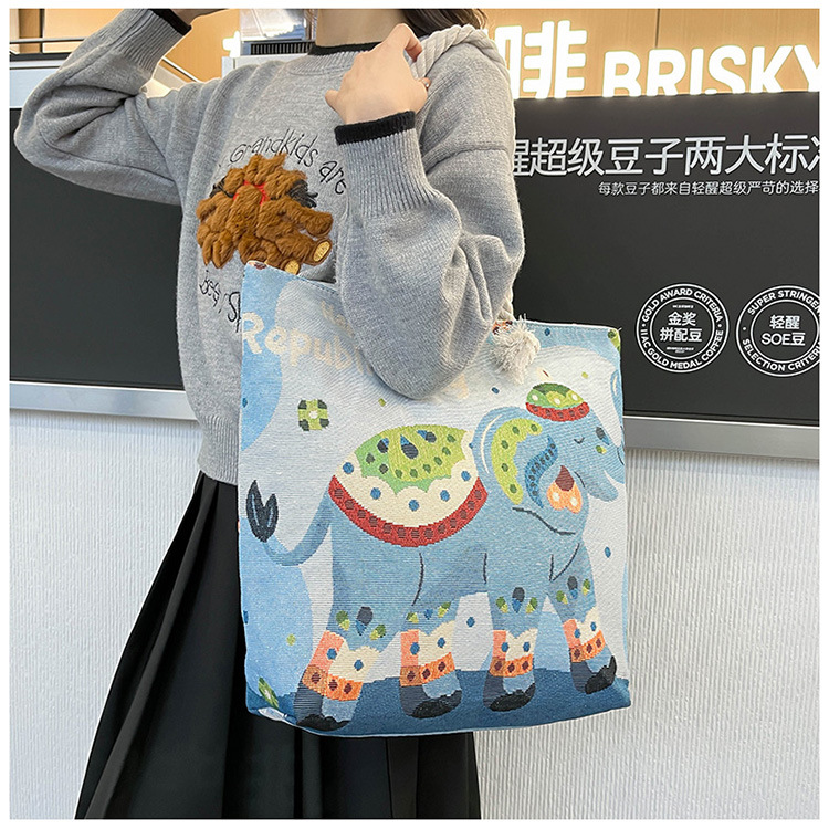时尚民族风绣花托特包女粗麻绳单肩包亚麻刺绣帆布包大容量妈咪包