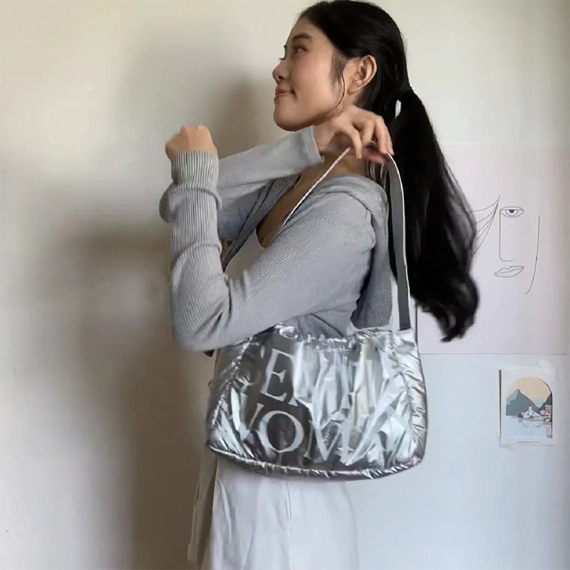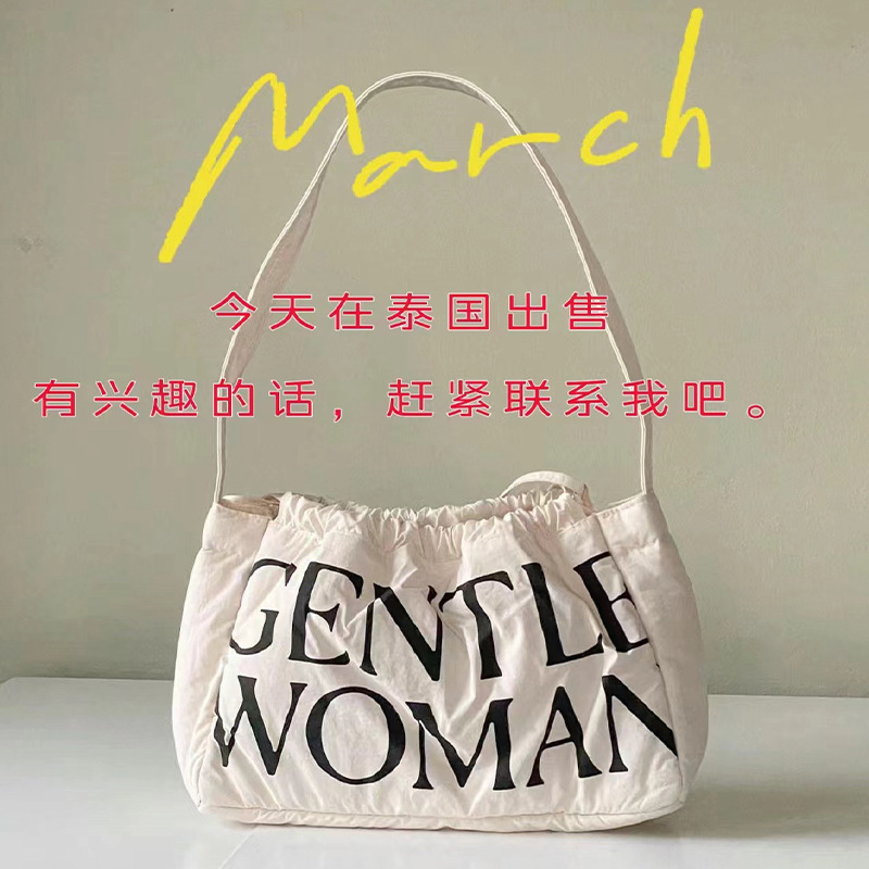 跨境单肩包gentlewoman夹棉羽绒蓬蓬饺子包包女时尚手提斜挎女包