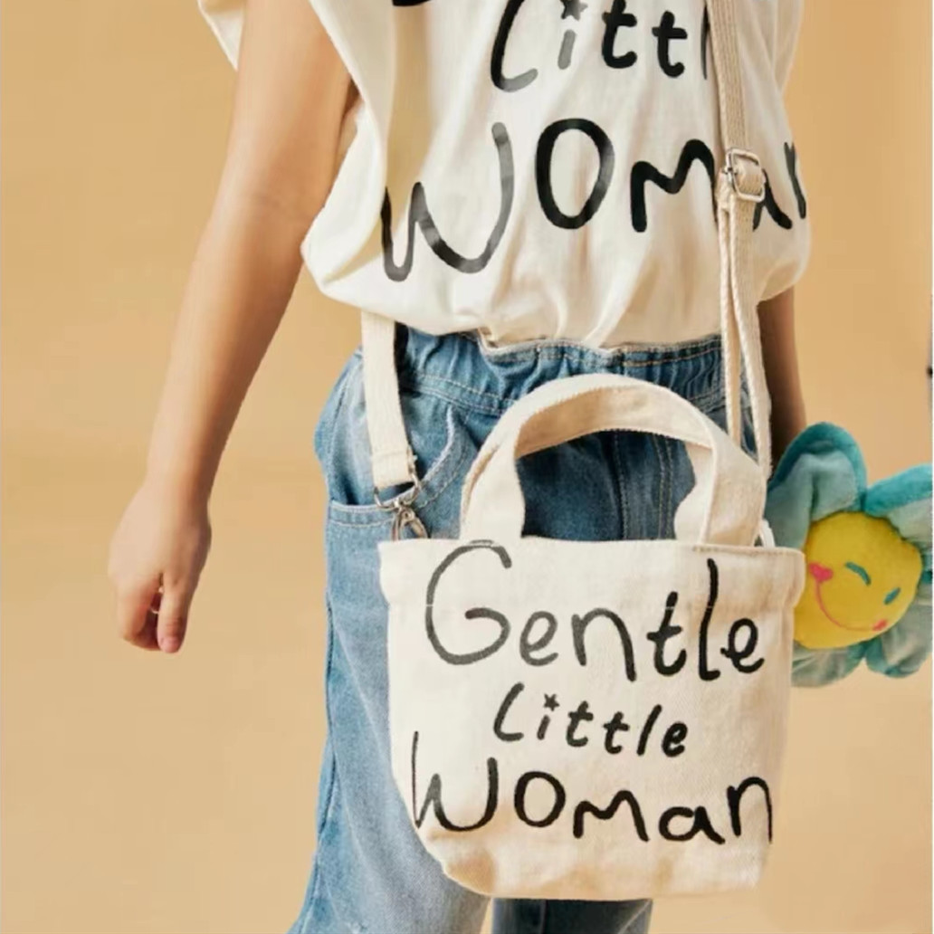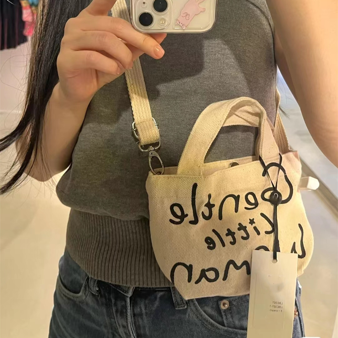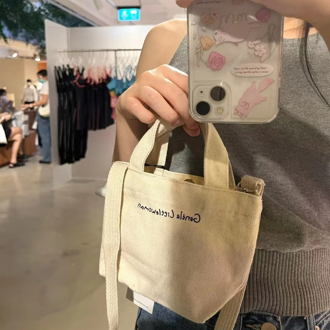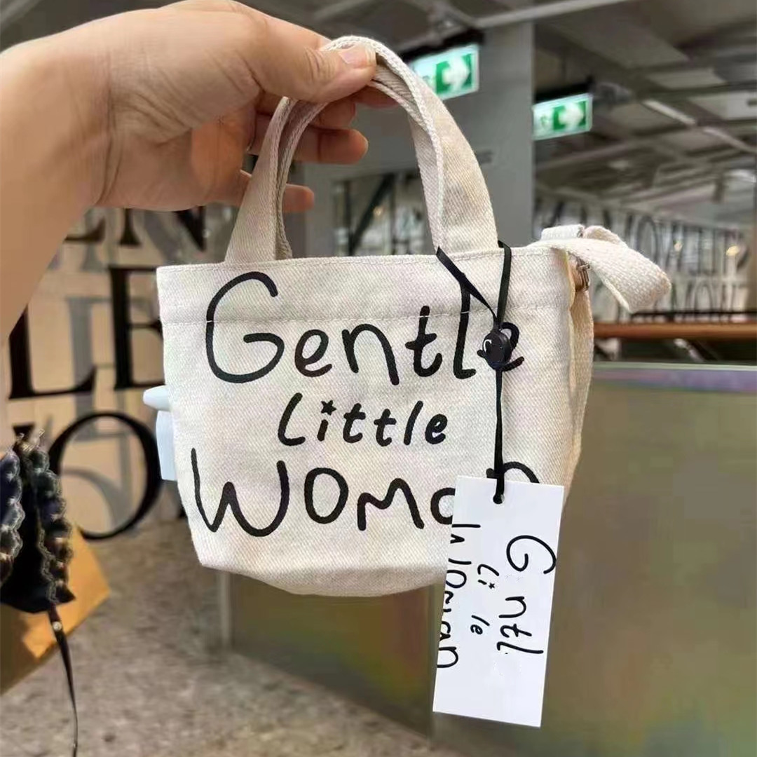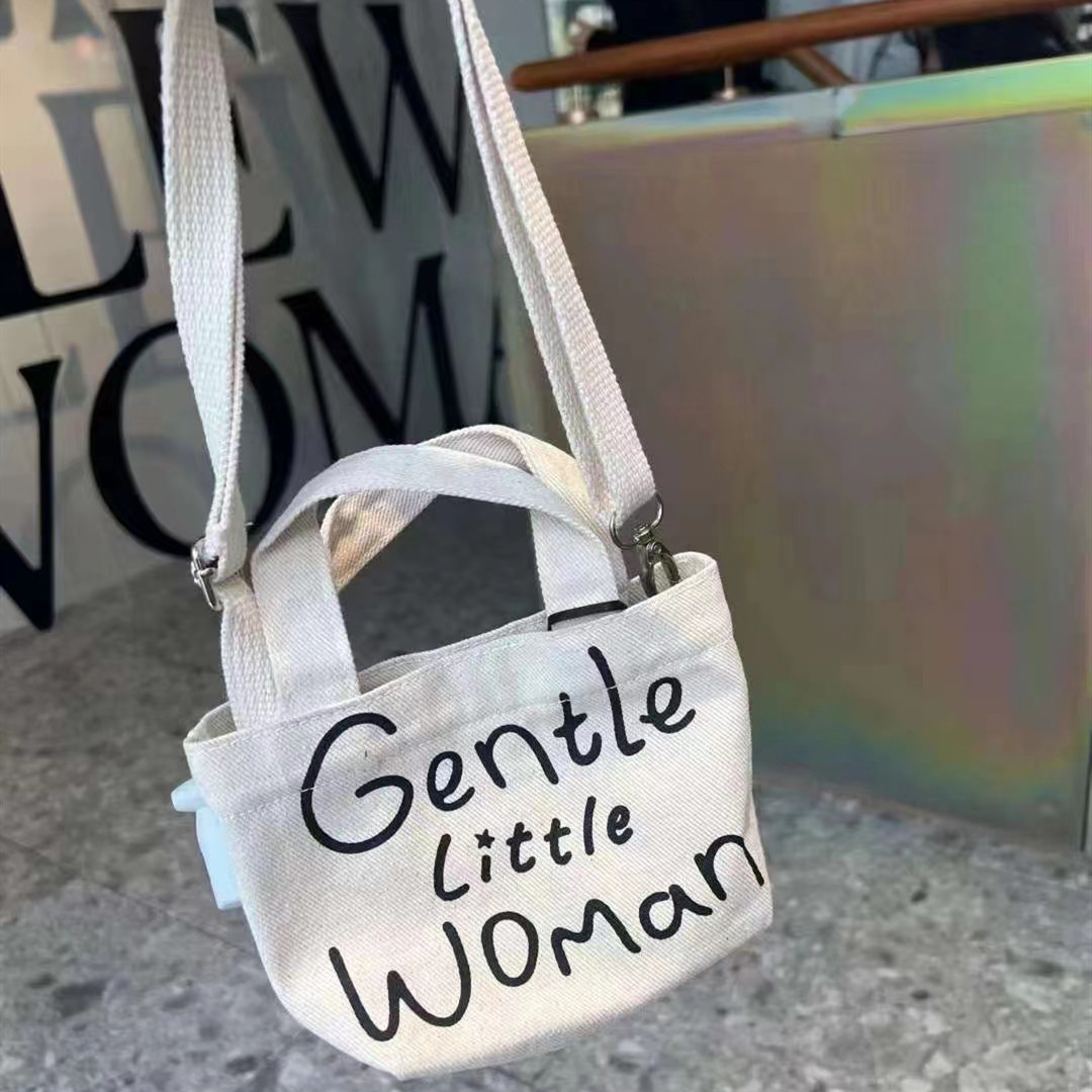 2024新款简约帆布水桶包字母纯色休闲洋气mini托特时尚单肩斜挎包