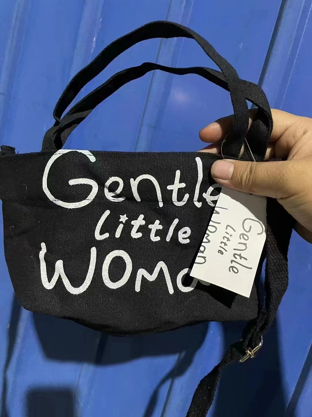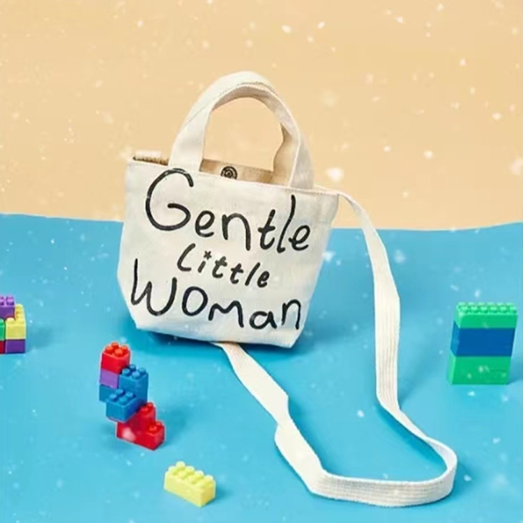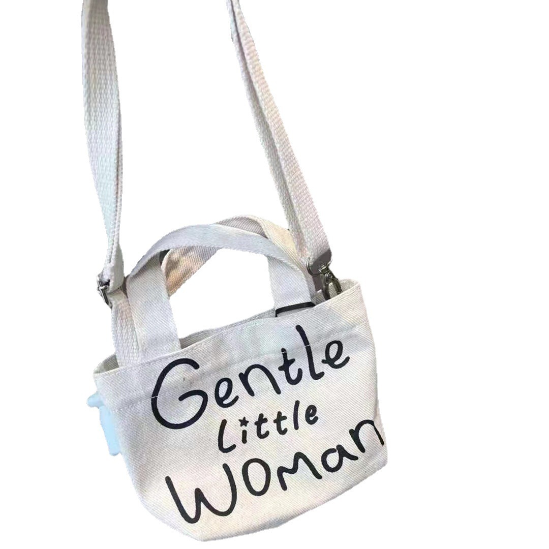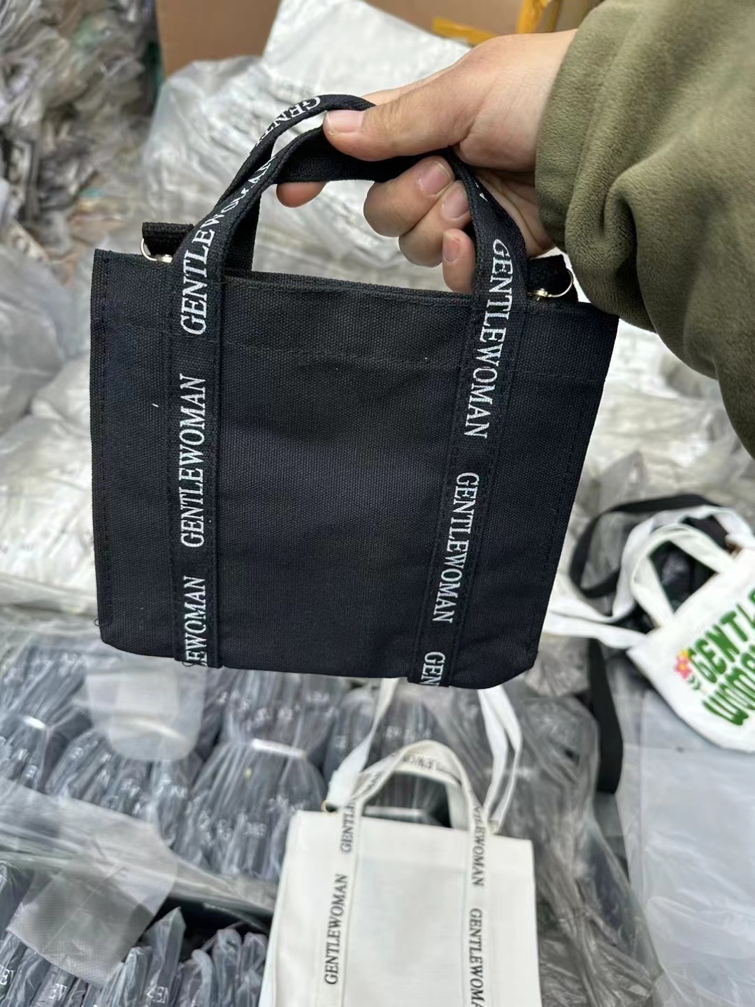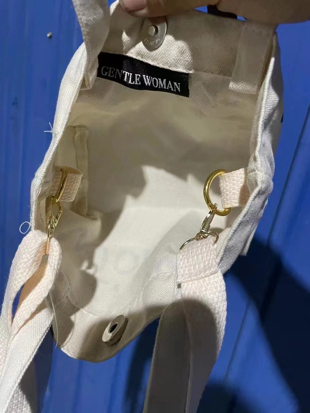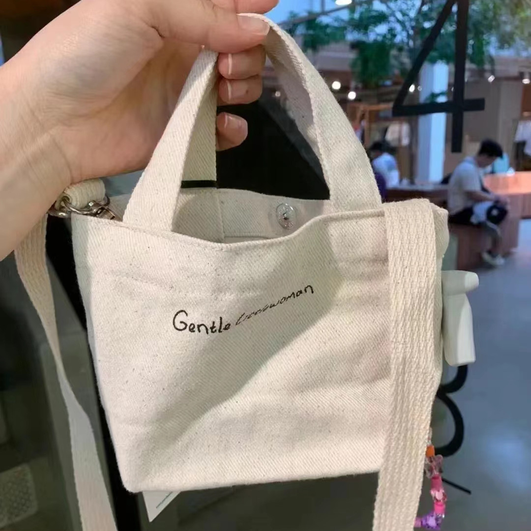 2024新款简约帆布水桶包字母纯色休闲洋气mini托特时尚单肩斜挎包