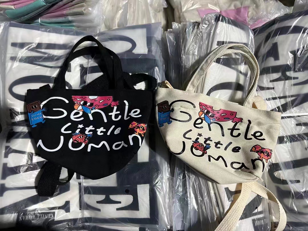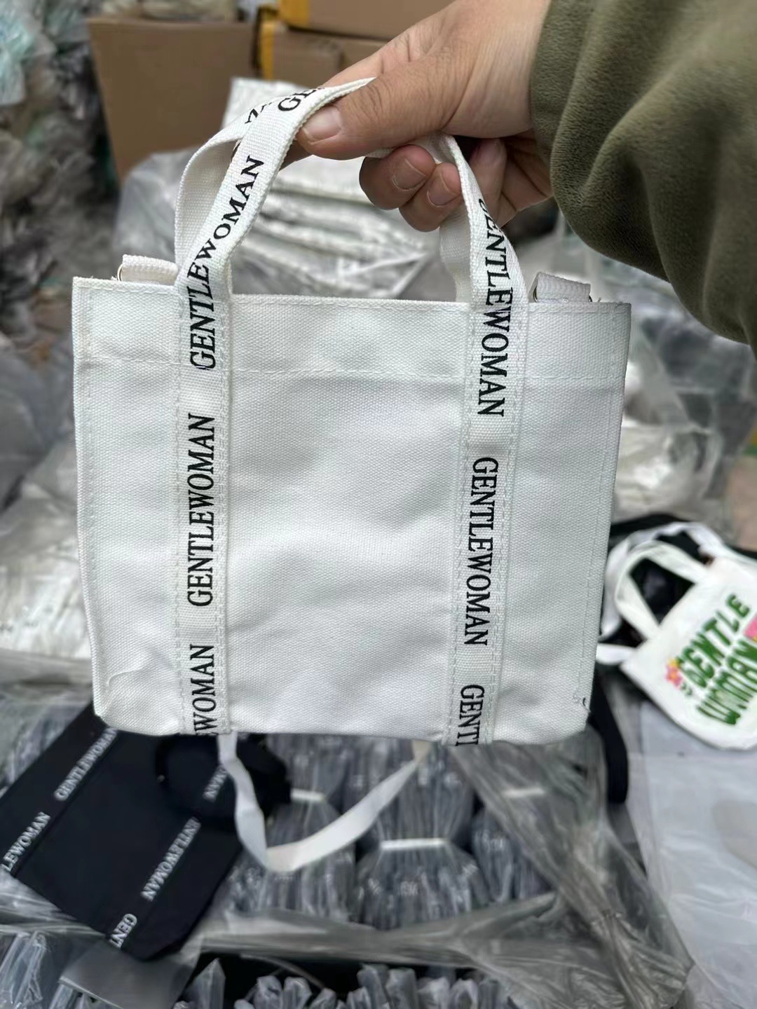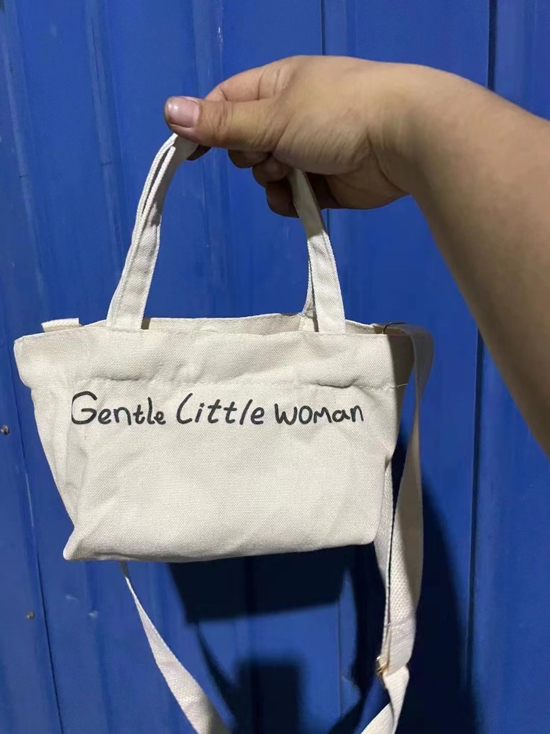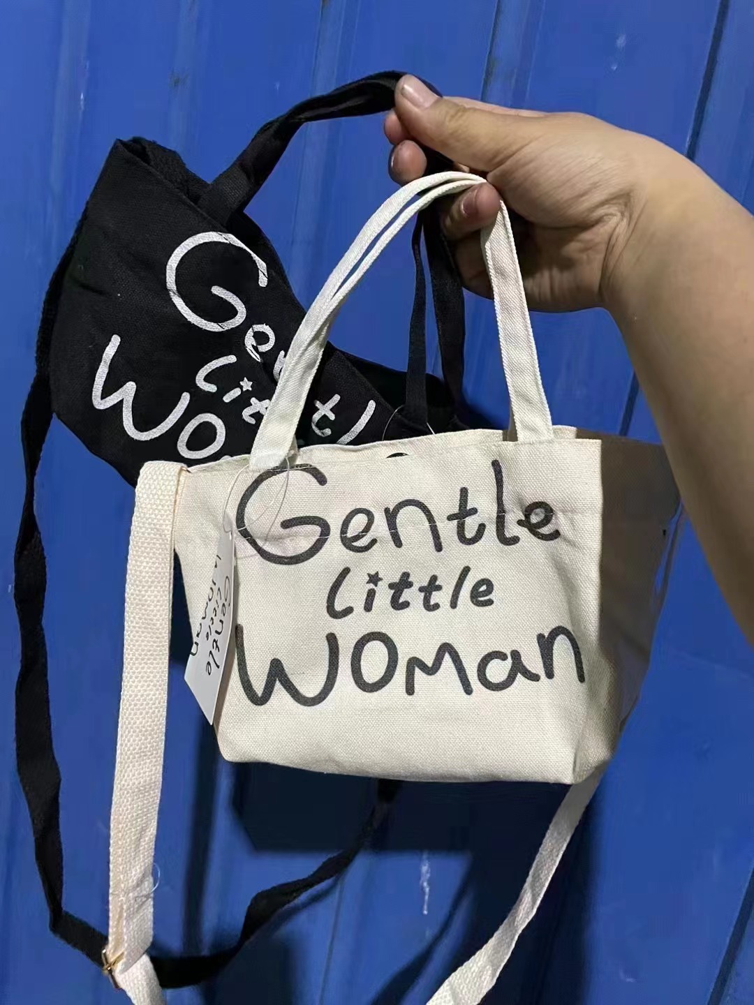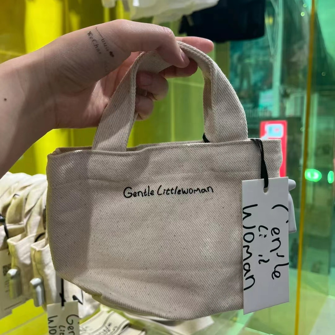 2024新款简约帆布水桶包字母纯色休闲洋气mini托特时尚单肩斜挎包