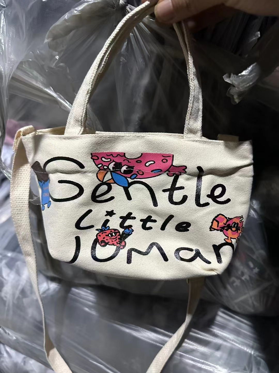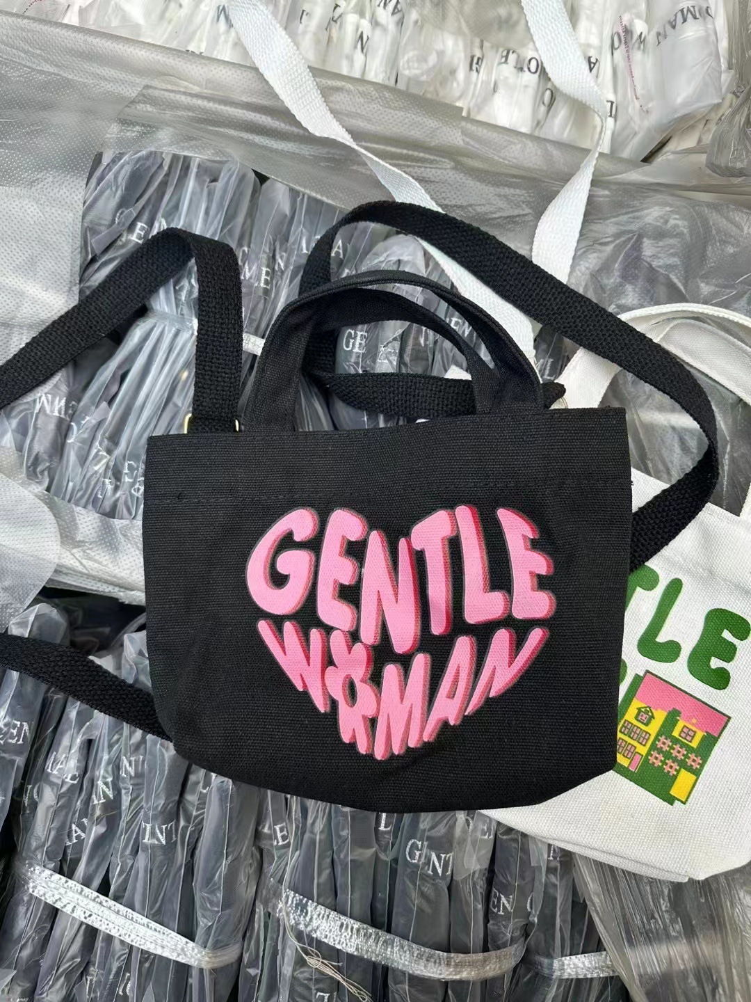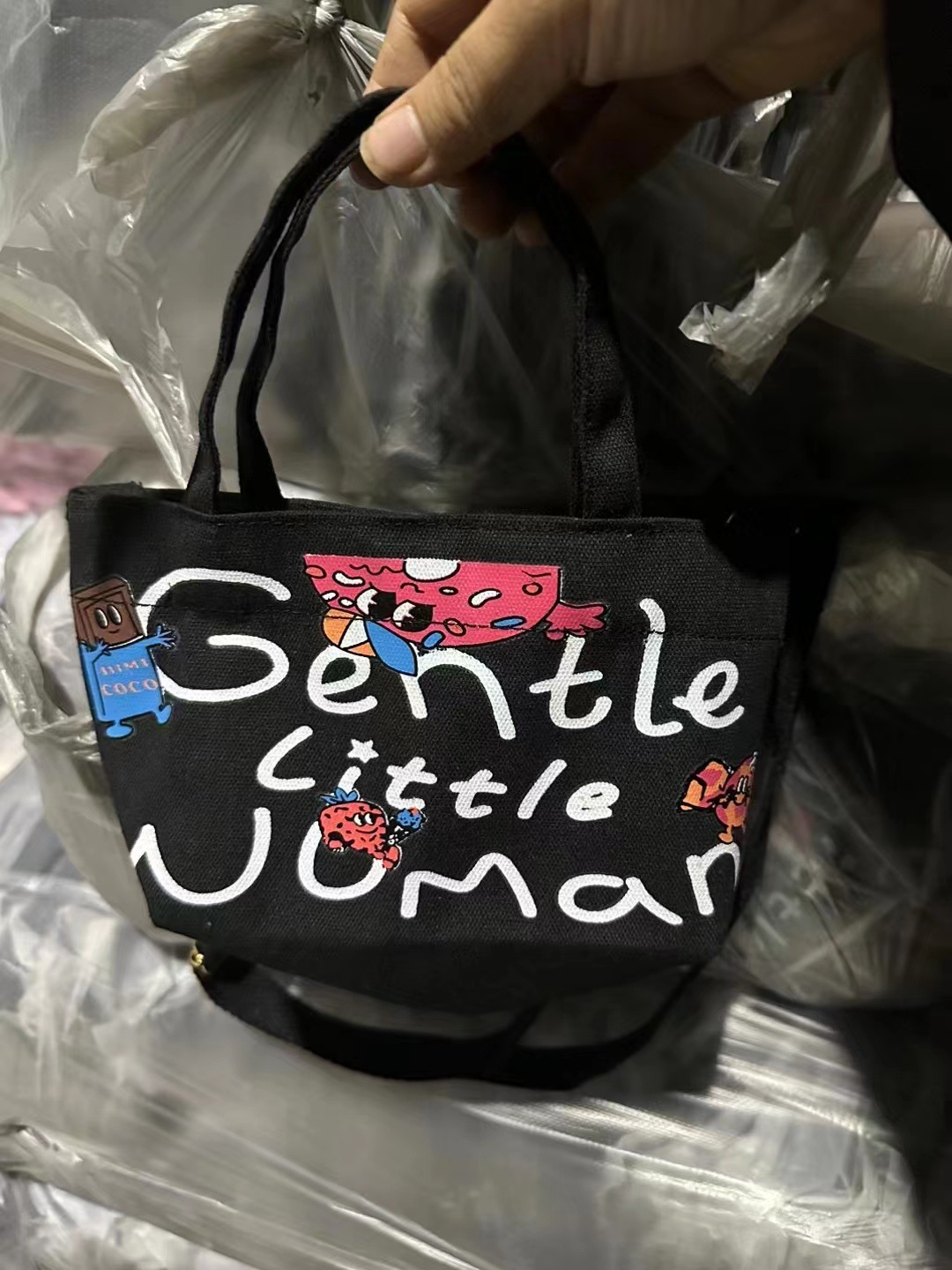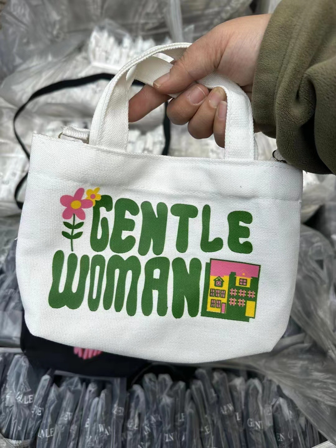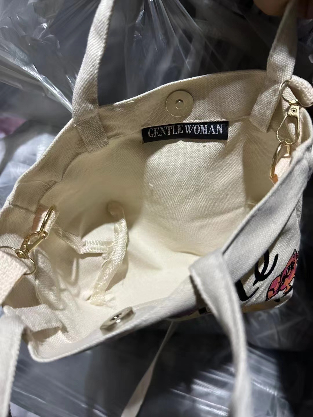 2024新款简约帆布水桶包字母纯色休闲洋气mini托特时尚单肩斜挎包