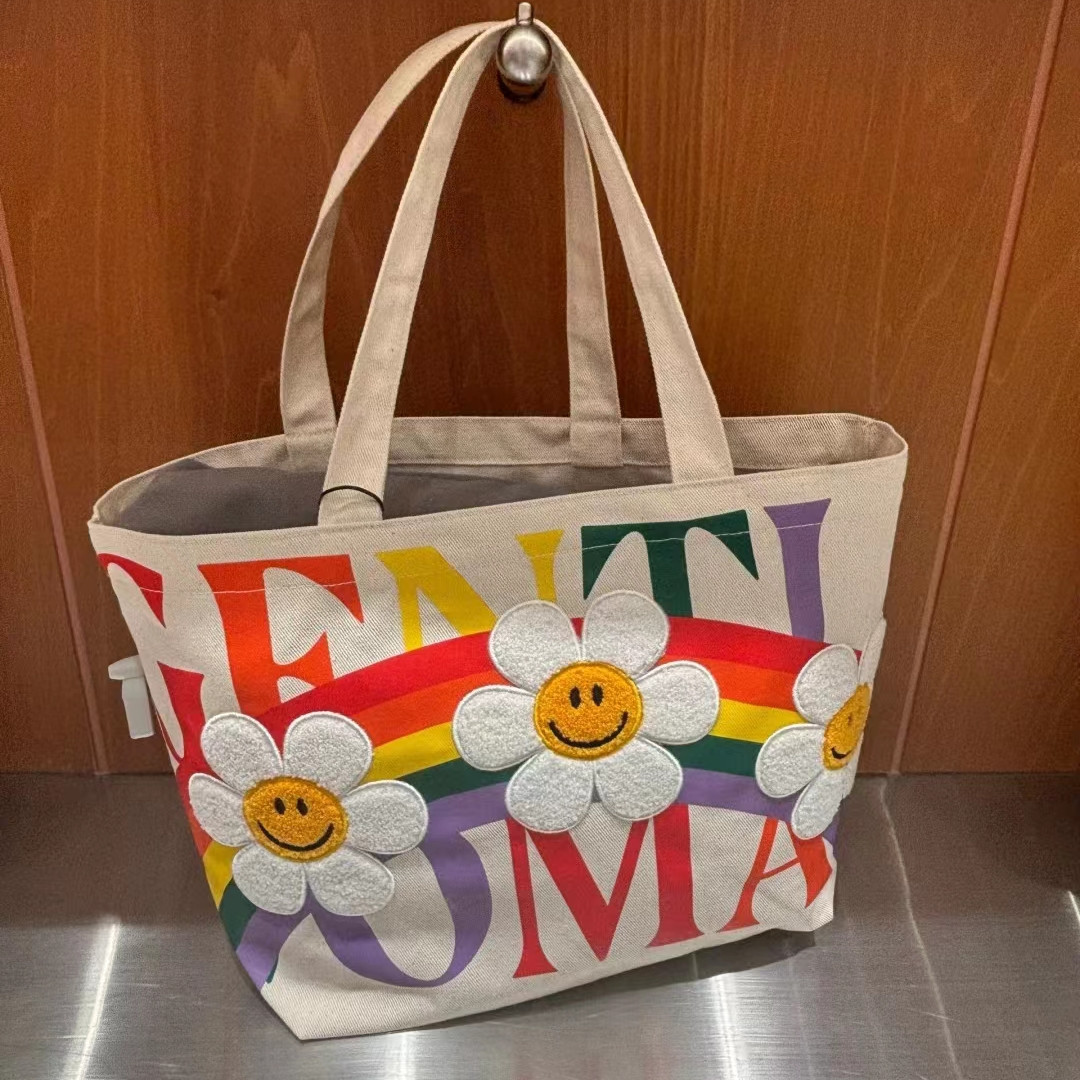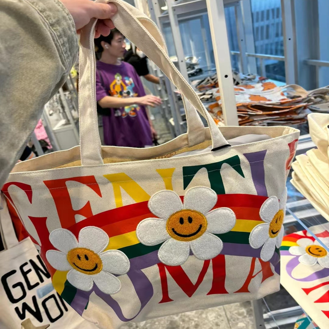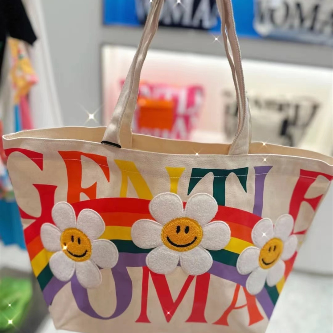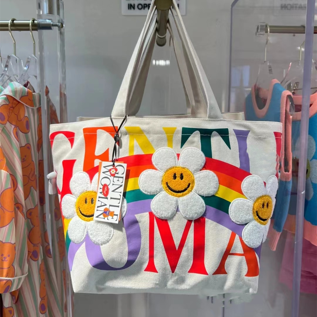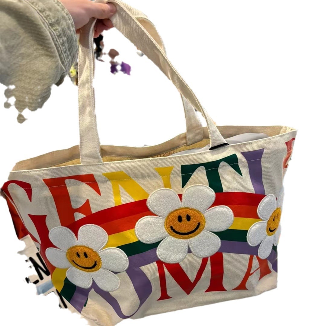 新款帆布包简约大容量托特包彩虹太阳花女包时尚百搭手提单肩包
