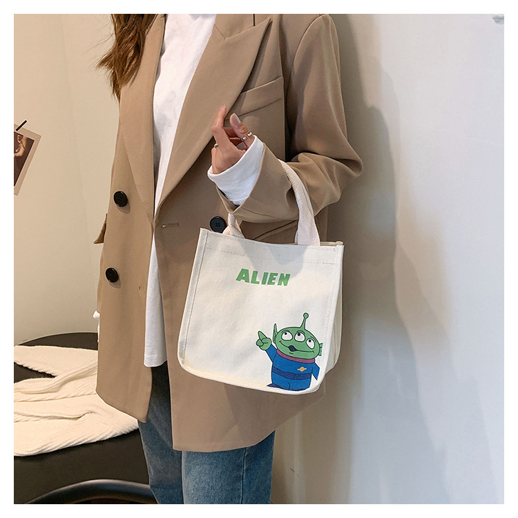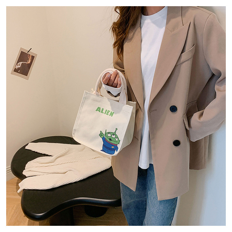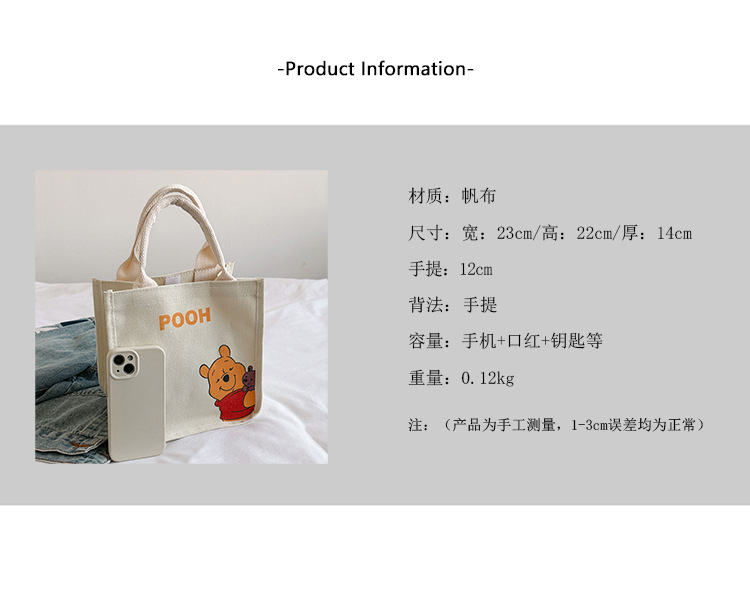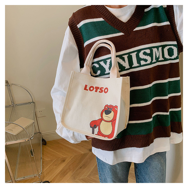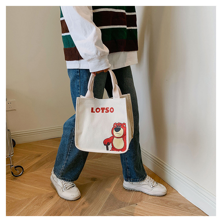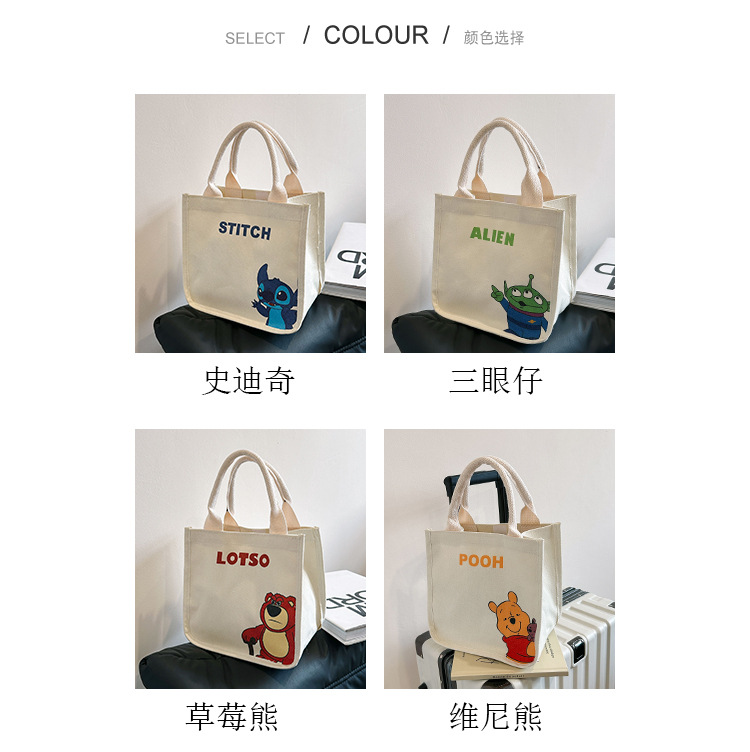手提帆布2023新款可爱卡通大容量出行潮轻便小方包时尚休闲手挎包