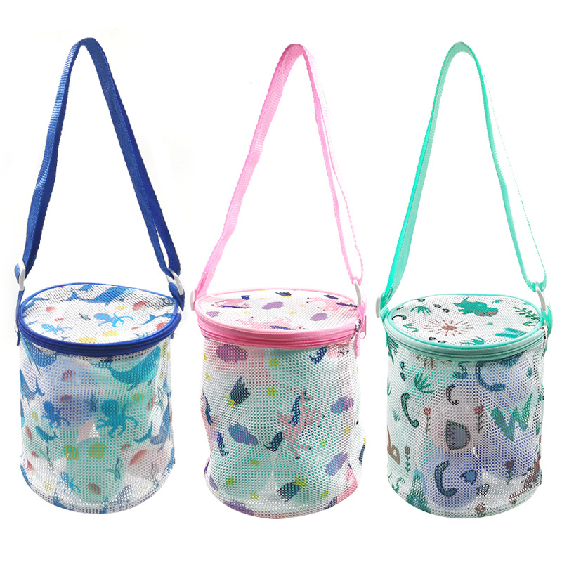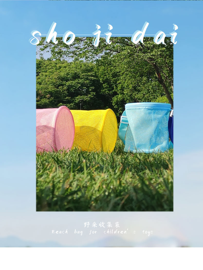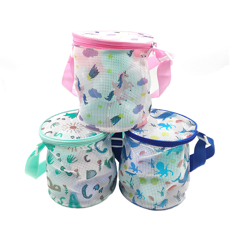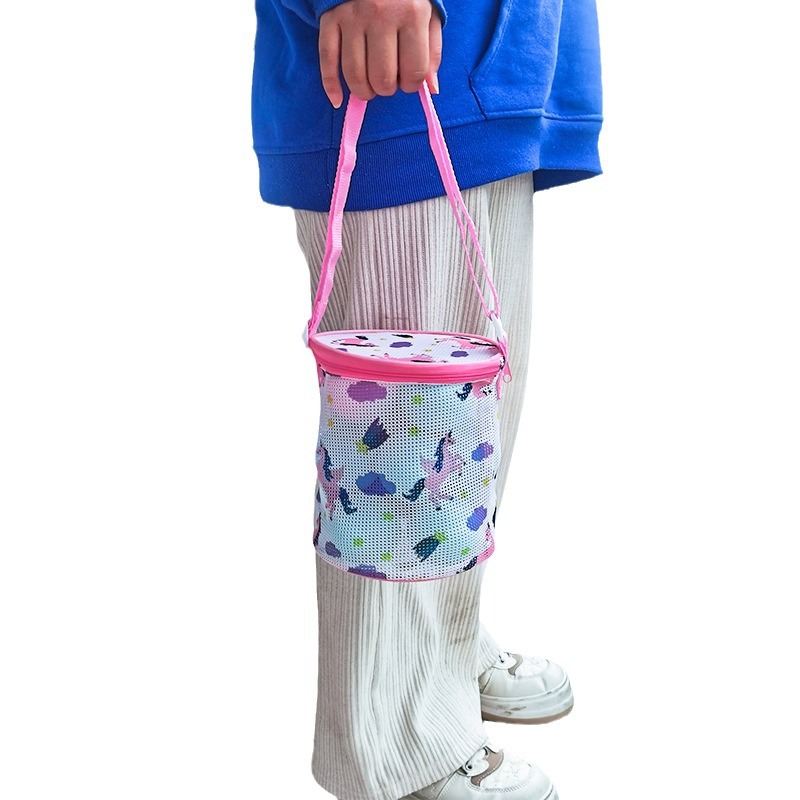 定制儿童户外野采包立体圆筒杂物收纳袋夏季龙虾网兜沙滩袋印logo