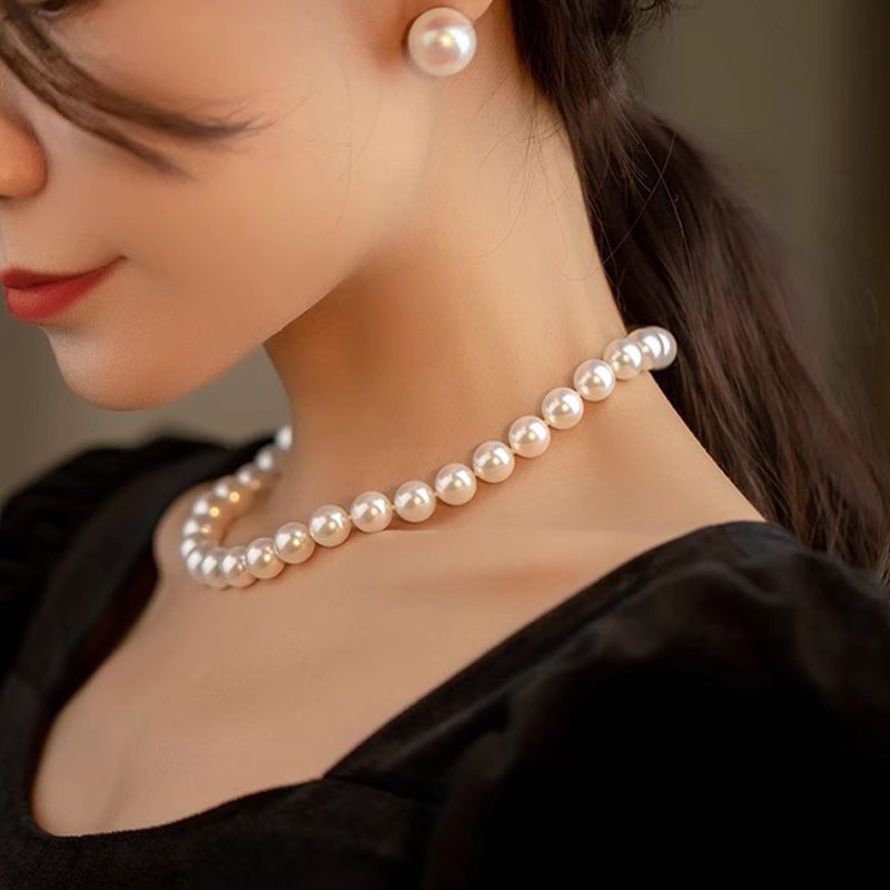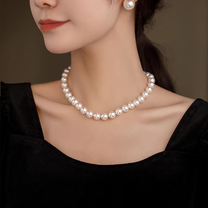 贝壳珍珠项链女款正圆时尚旗袍毛衣项链气质百搭锁骨链送妈妈礼物