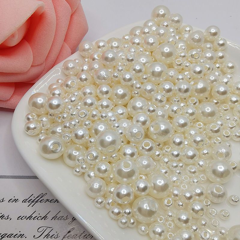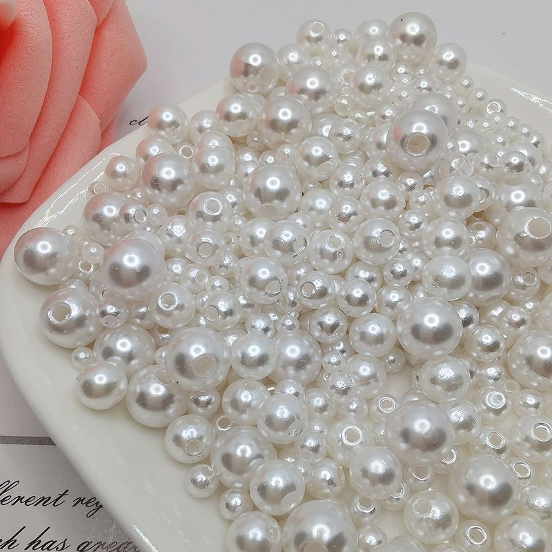 ABS有孔混装彩色仿珍珠散珠手工串珠DIY材料鞋服衣帽手链饰品配件