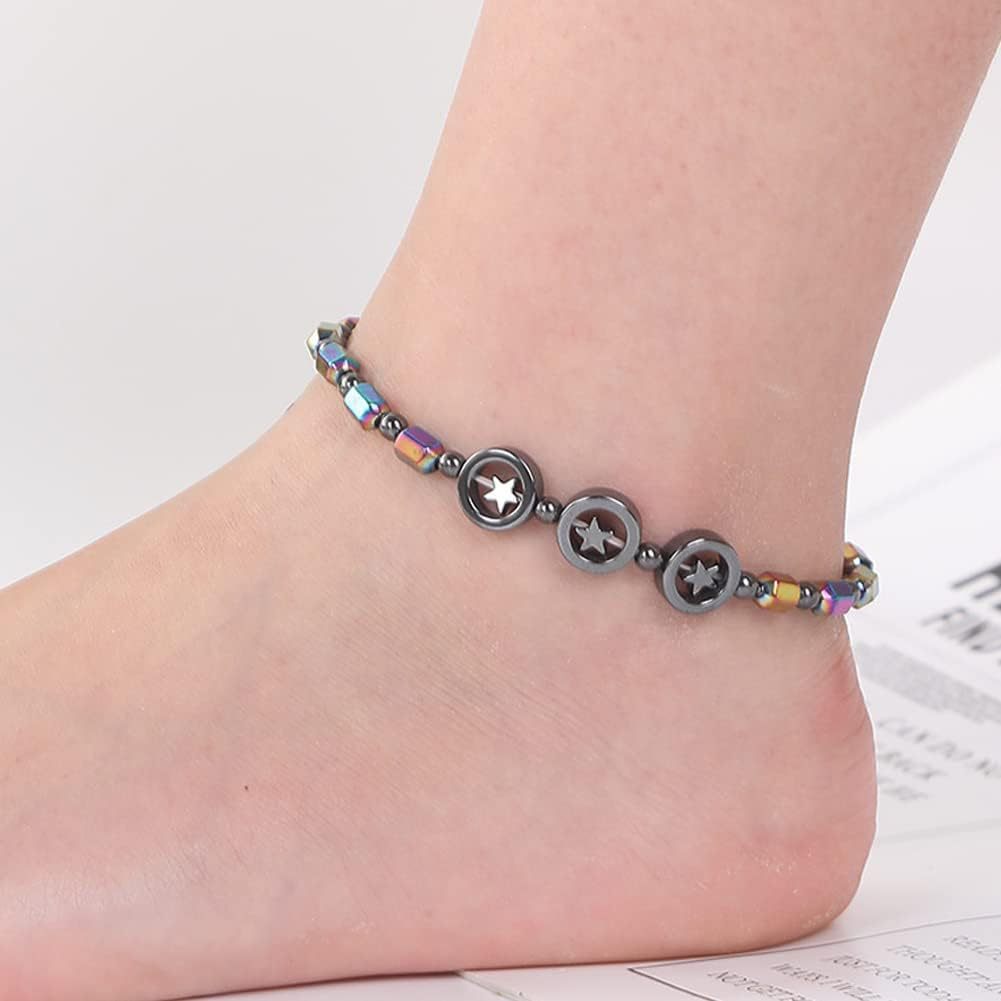 跨境磁石脚链黑胆石星星情侣彩色亚克力圆珠编织脚饰批发高级感