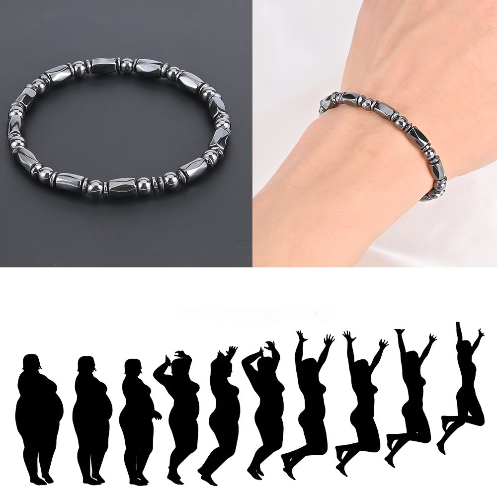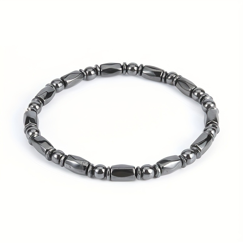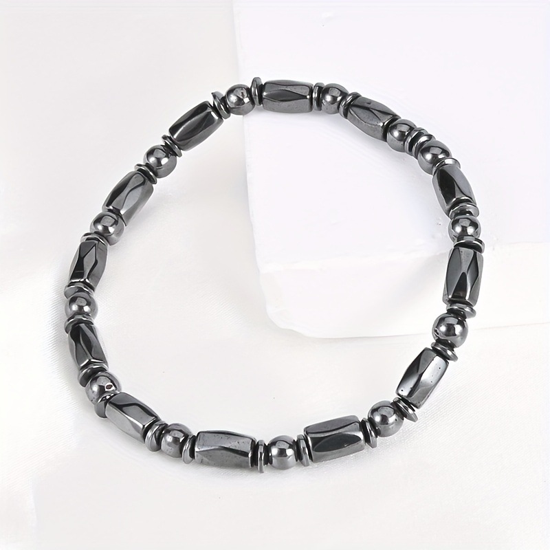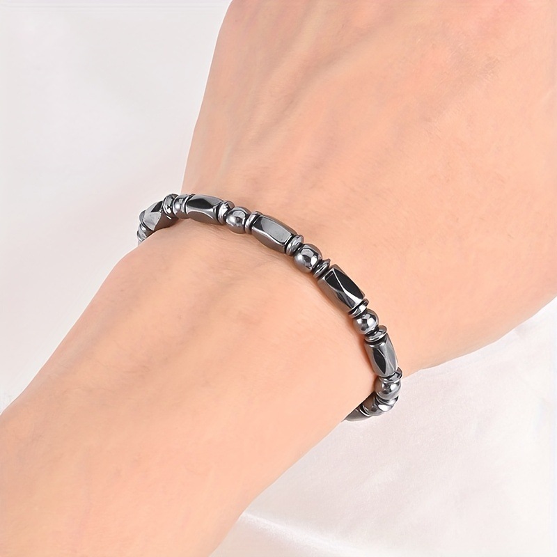 跨境简约不规则黑色圆珠磁性磁石男手链黑胆石弹性手串厂家现货