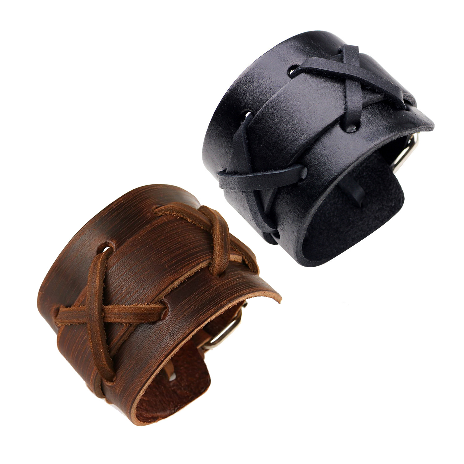 跨境新款 欧美男士复古牛皮手链个性机车骑行手环皮革手镯厂家