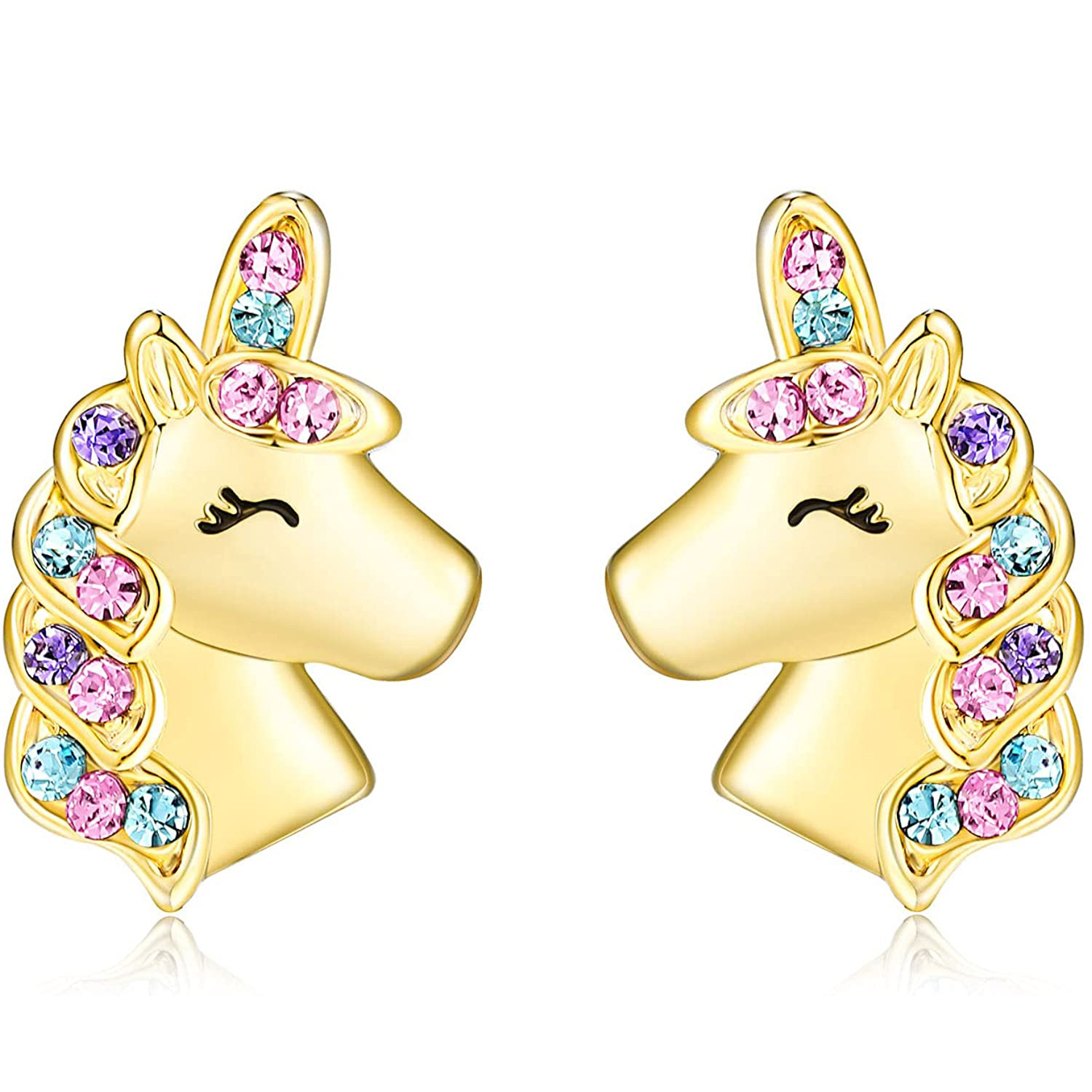 欧美跨境新品新款创意可爱耳钉独角兽复古泰银耳饰品批发