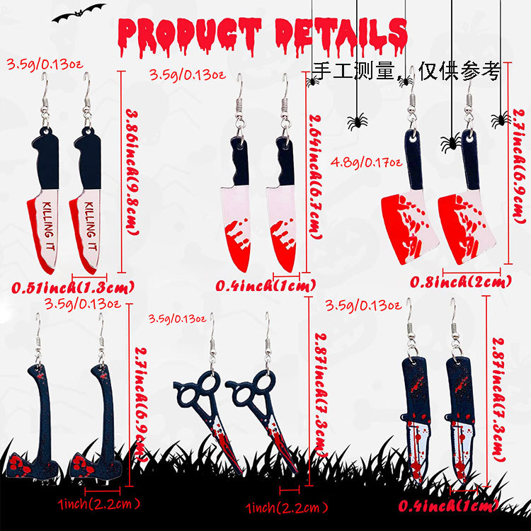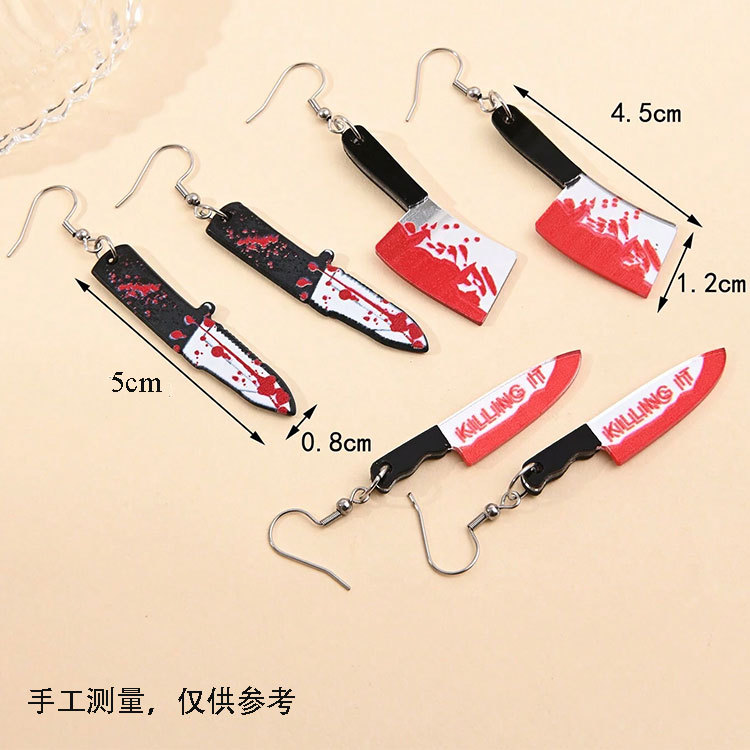 稀奇古怪耳环欧美炫酷朋克杀手尖刀菜刀耳环万圣节搞怪亚克力耳饰