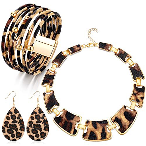 跨境速卖通时尚复古豹纹项链磁吸合金夸张耳环项链手镯套装配饰女