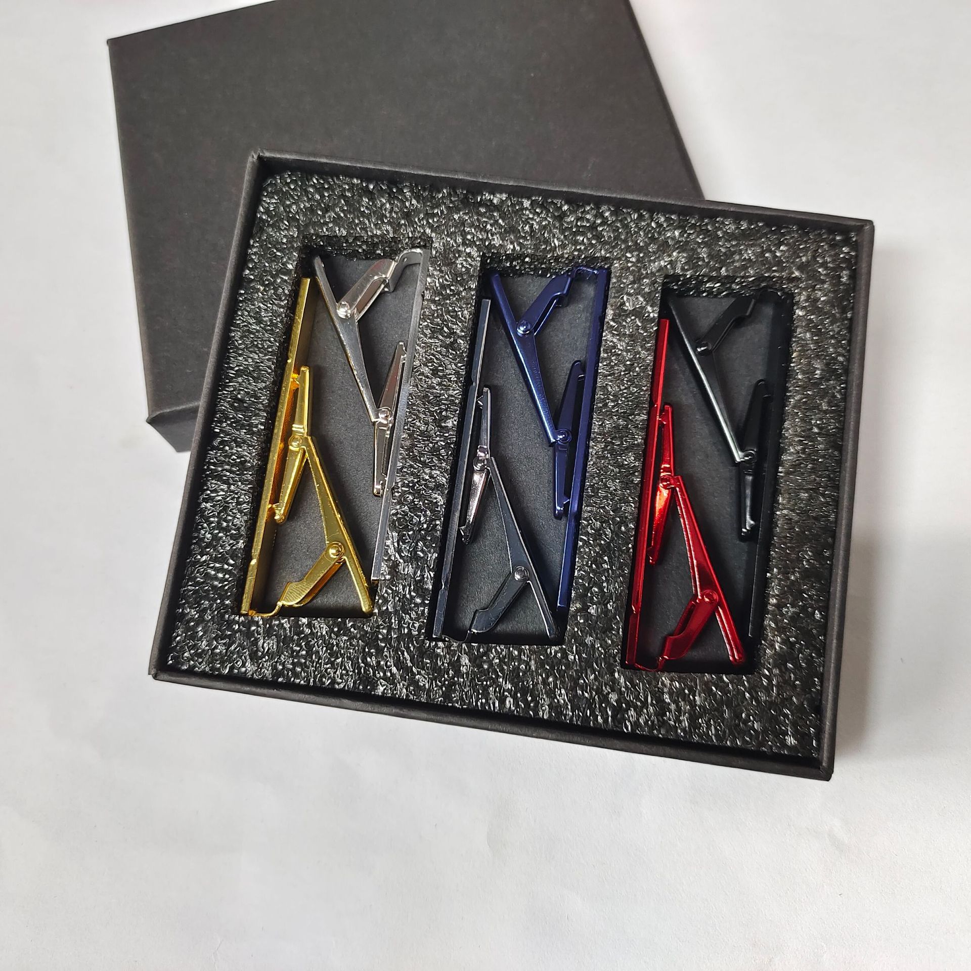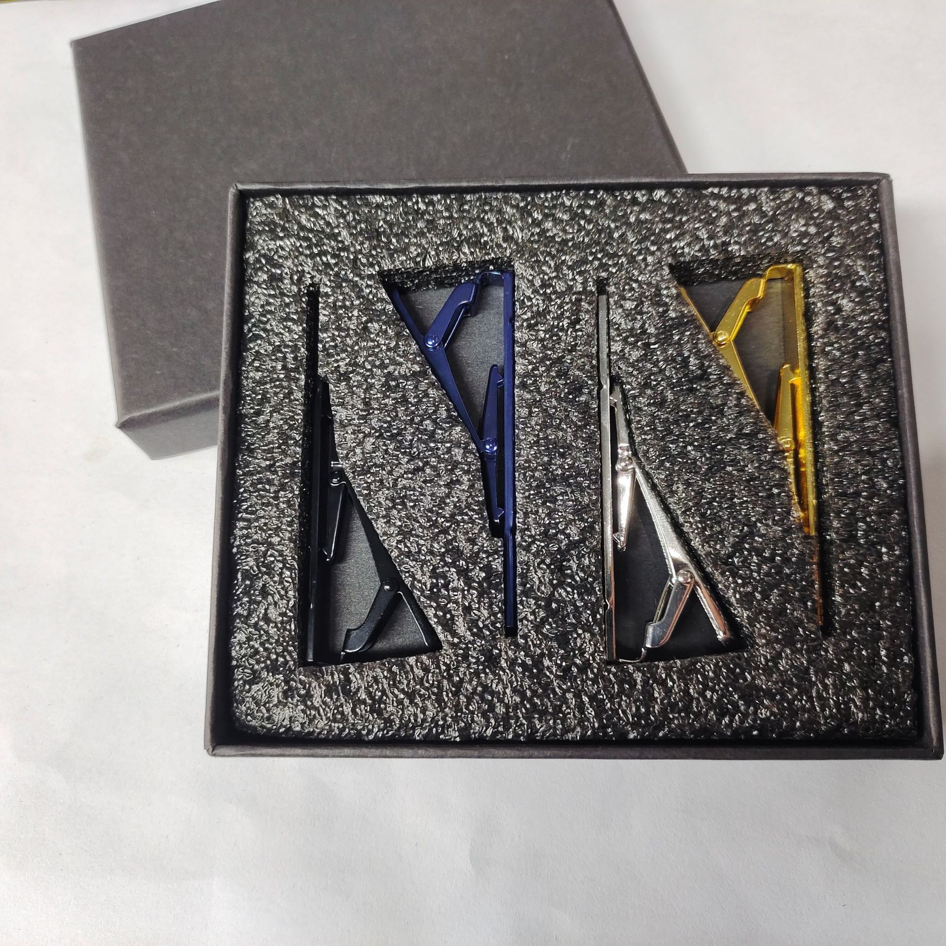 跨境光面斜纹领带夹男 铜领带夹高档时尚商务领带夹子盒子套装