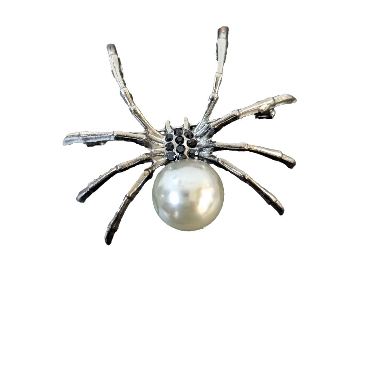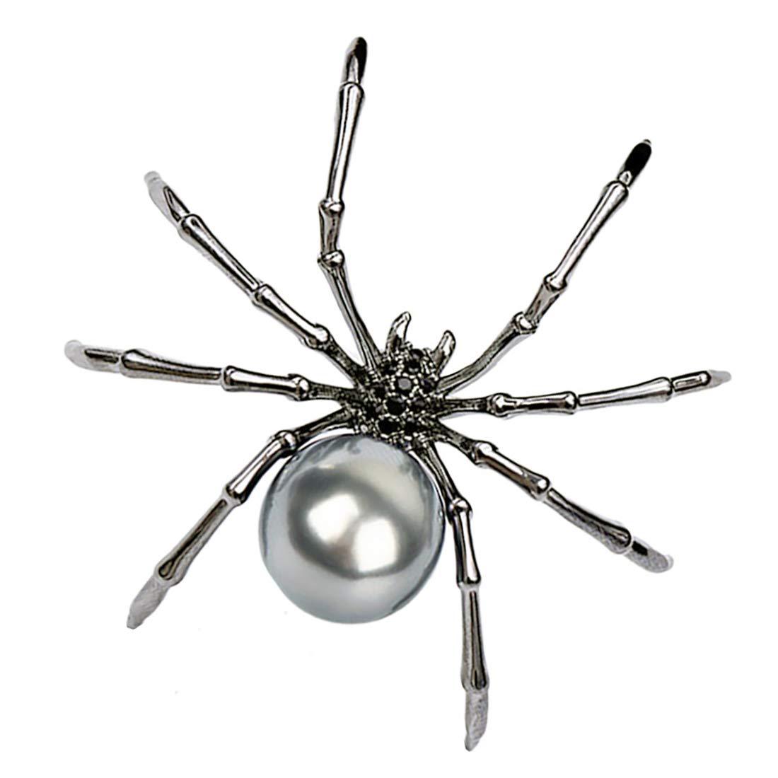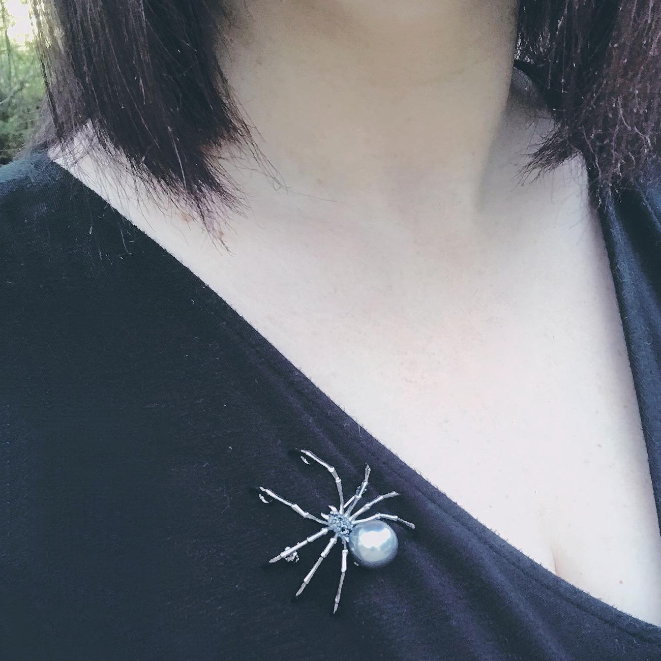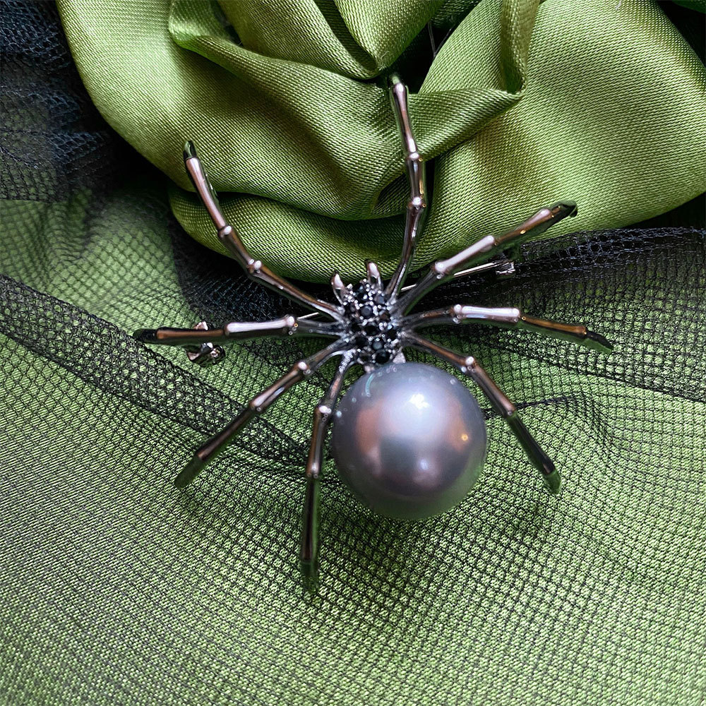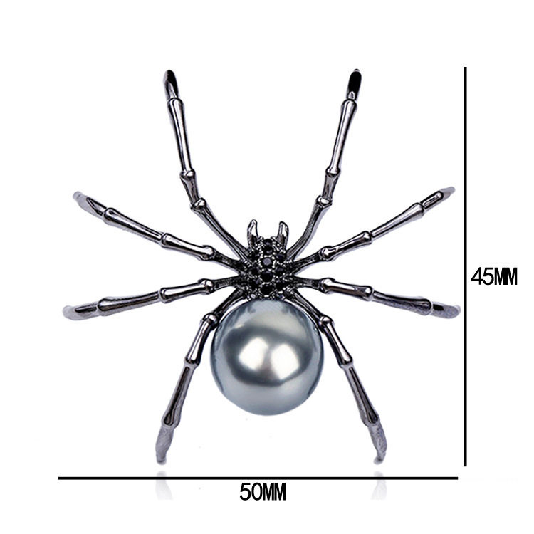 跨境个性黑蜘蛛水钻胸针欧美高档珍珠大胸针扣防走光卡通胸花批发