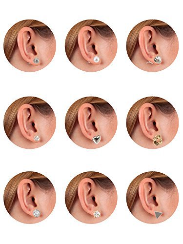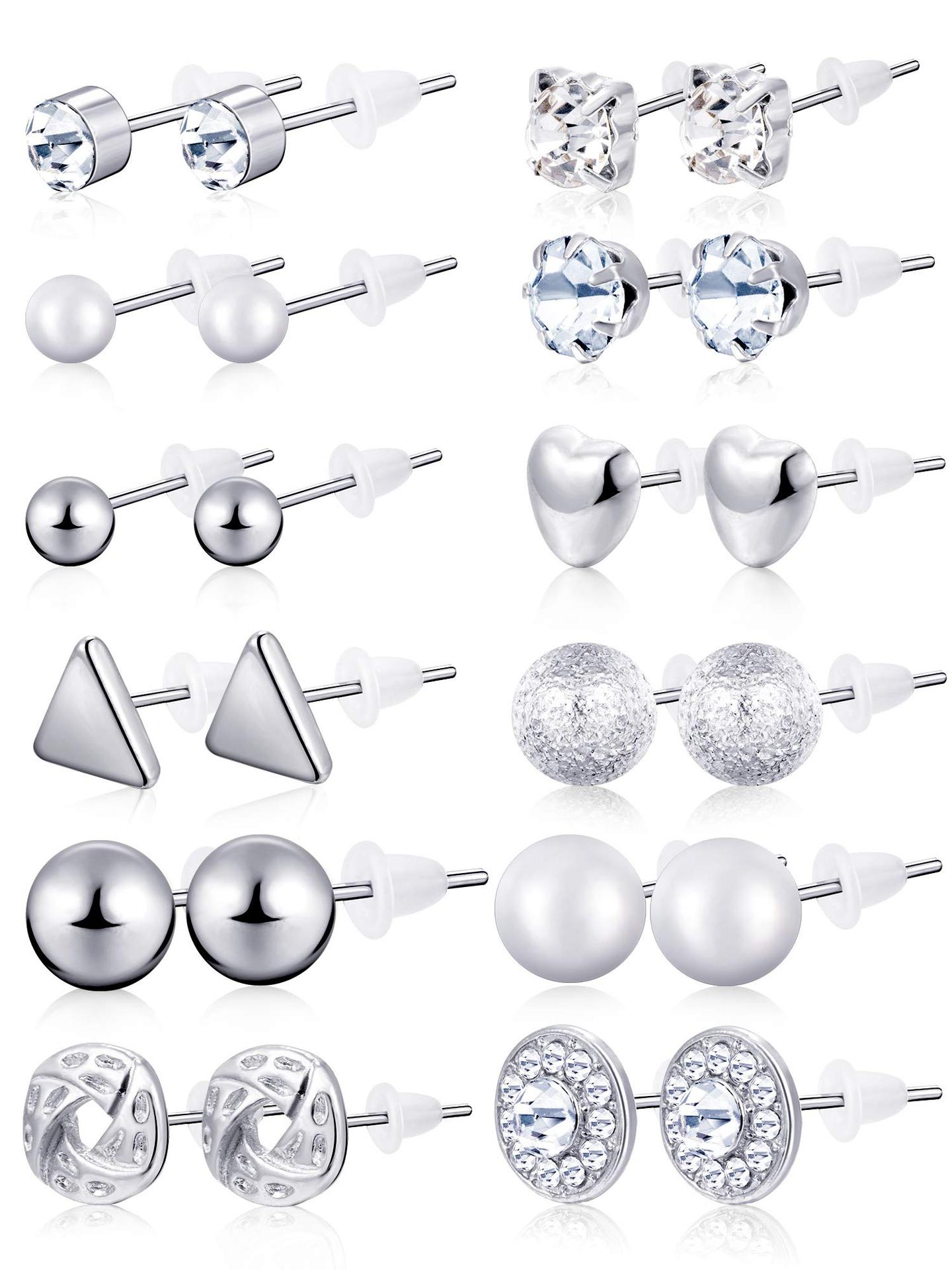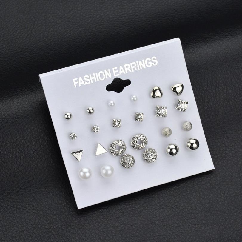 韩版12对卡装方形锆石耳钉 桃心镶钻耳环套装跨境热卖耳饰批发