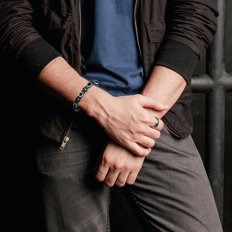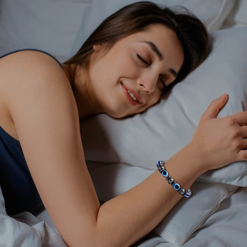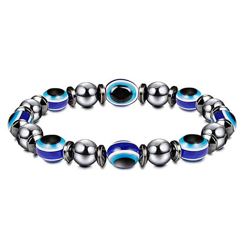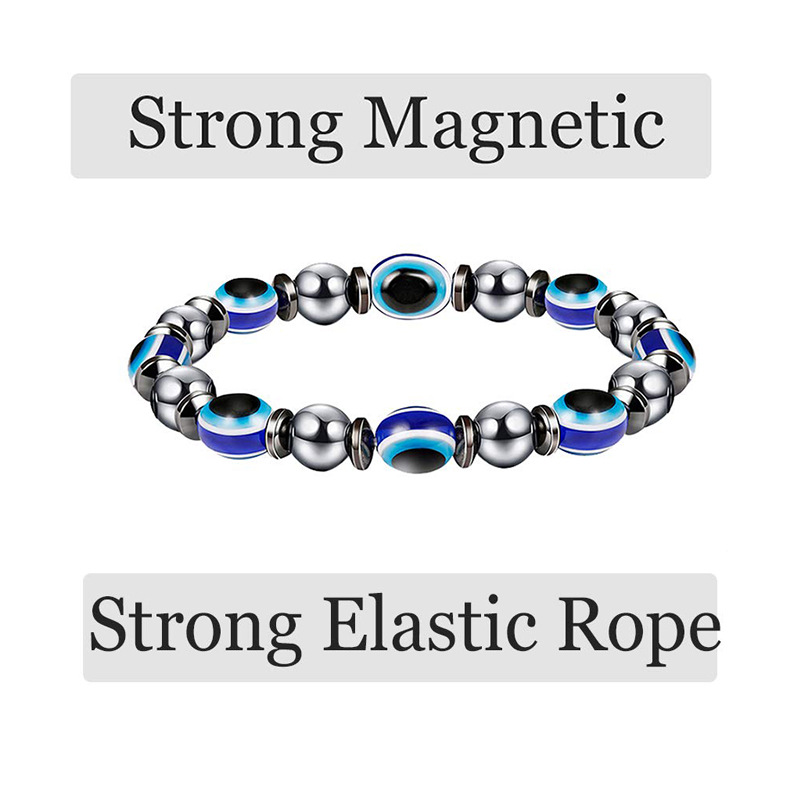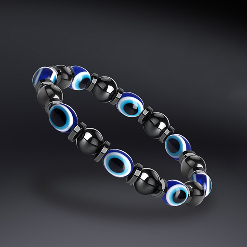 跨境创意新款磁性黑胆石扁珠配饰蓝色恶魔之眼时尚手链厂家批发