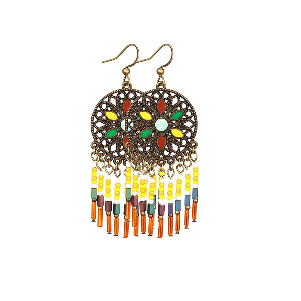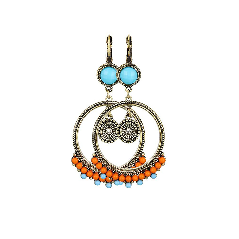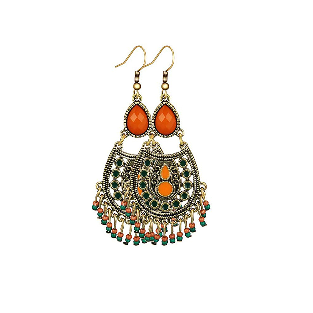 跨境几何叶子米珠耳环复古宫廷风串珠配饰欧美时尚耳饰品批发