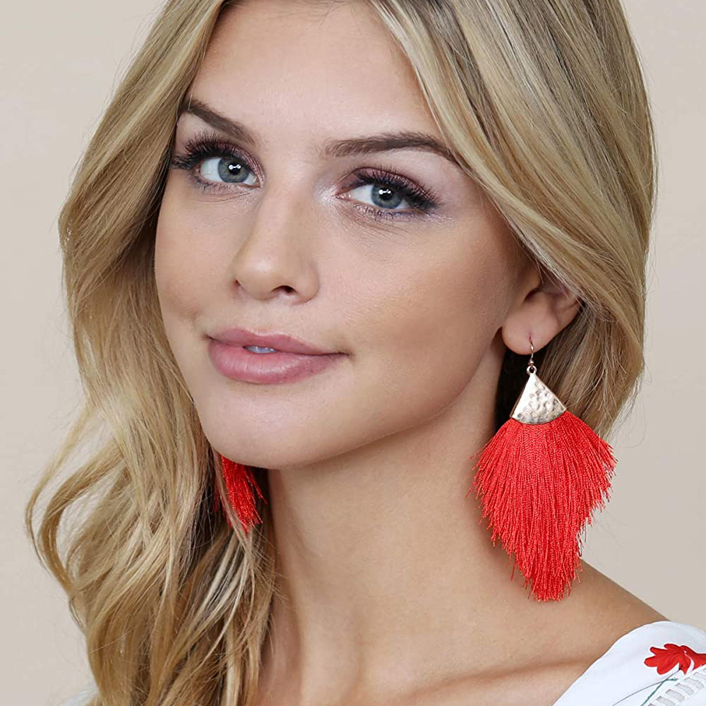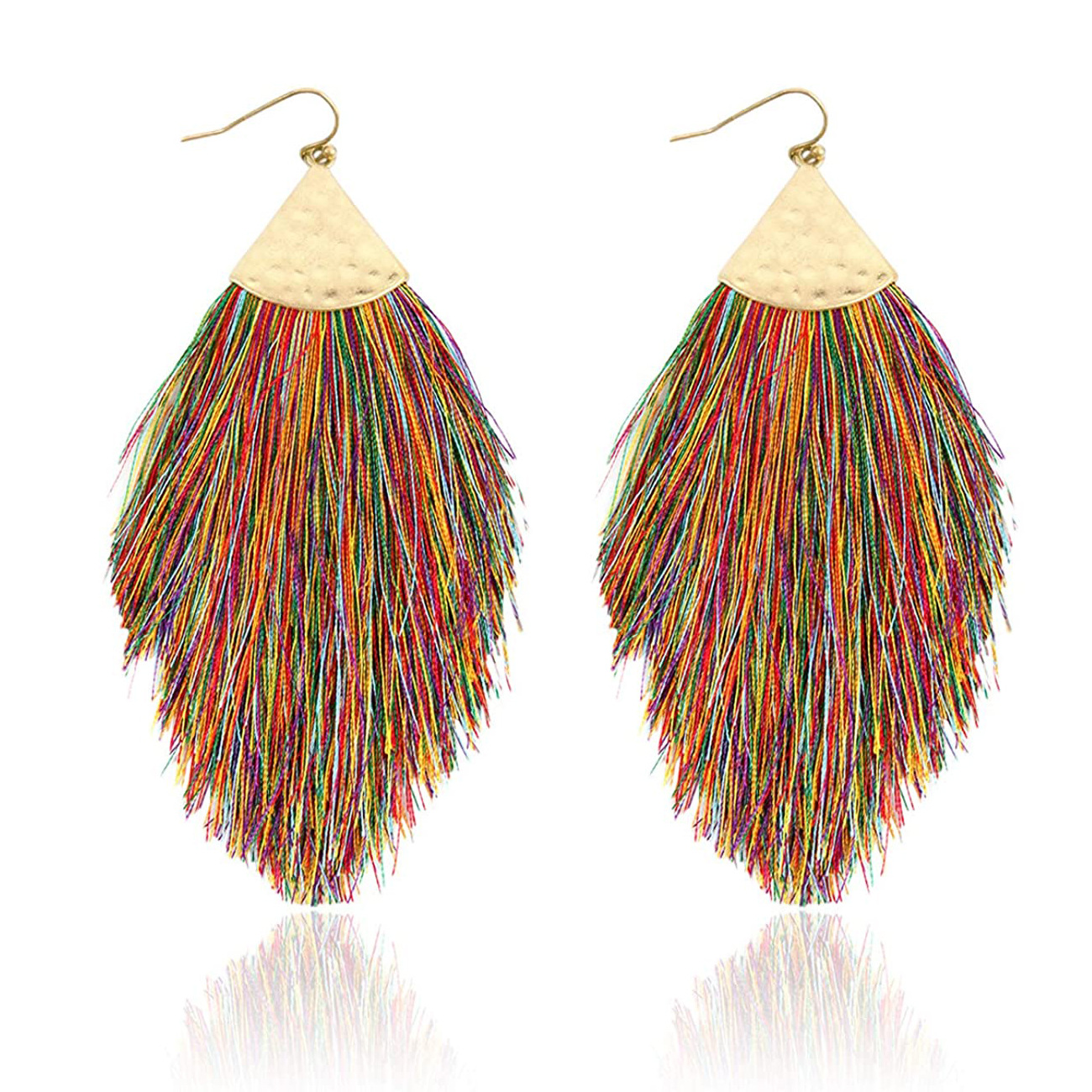 跨境棉线箭头流苏春天彩色女款耳坠欧美流行时尚夸张耳饰品批发