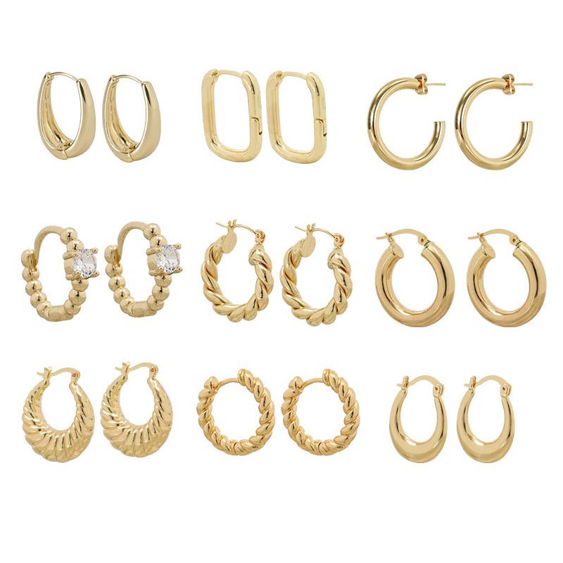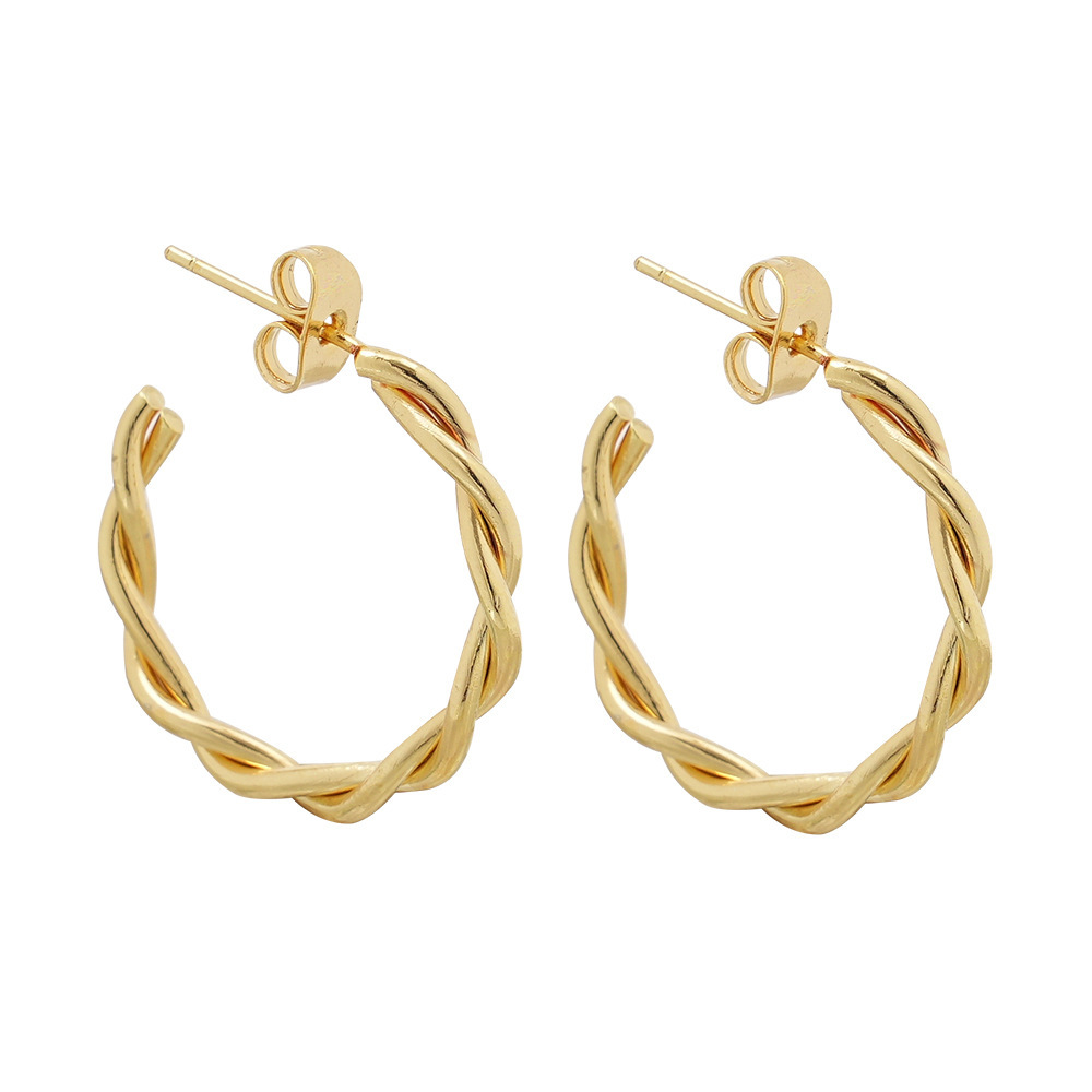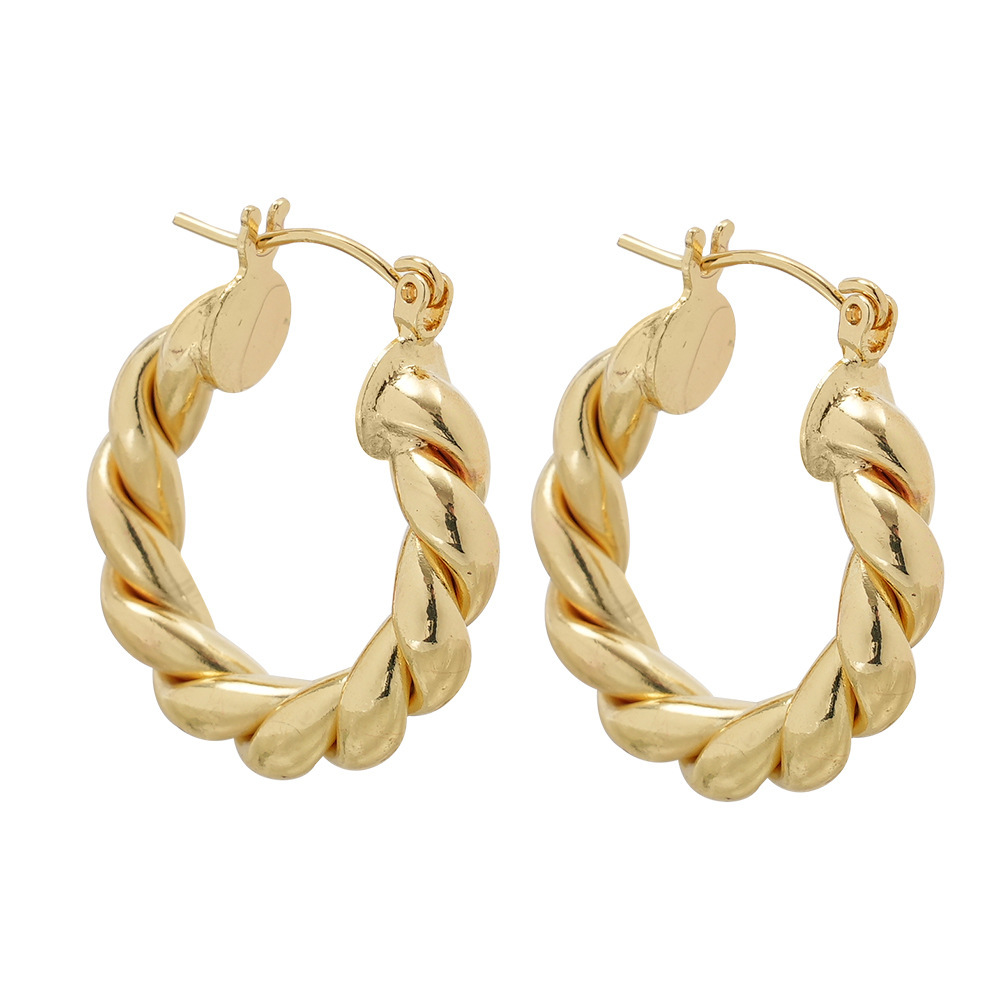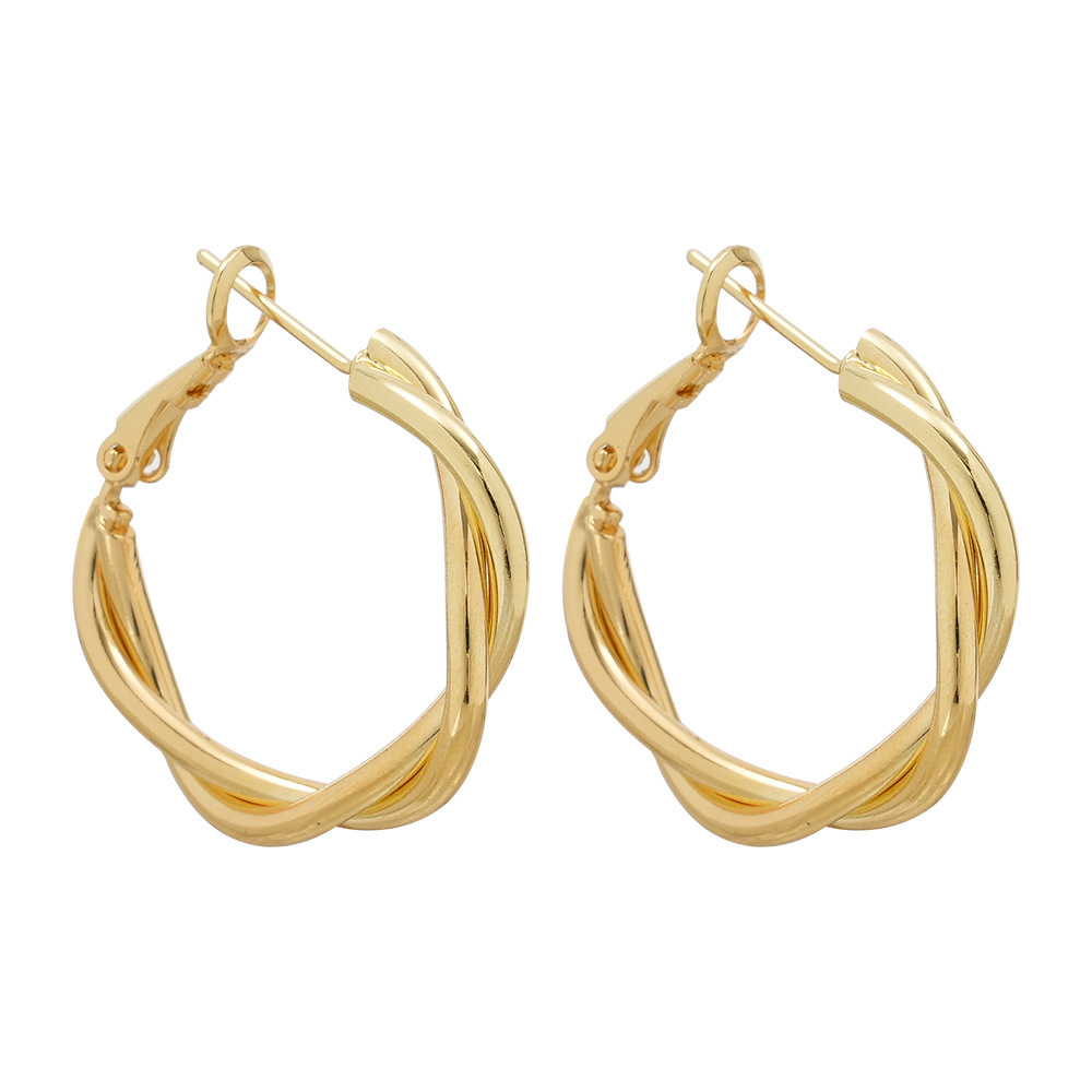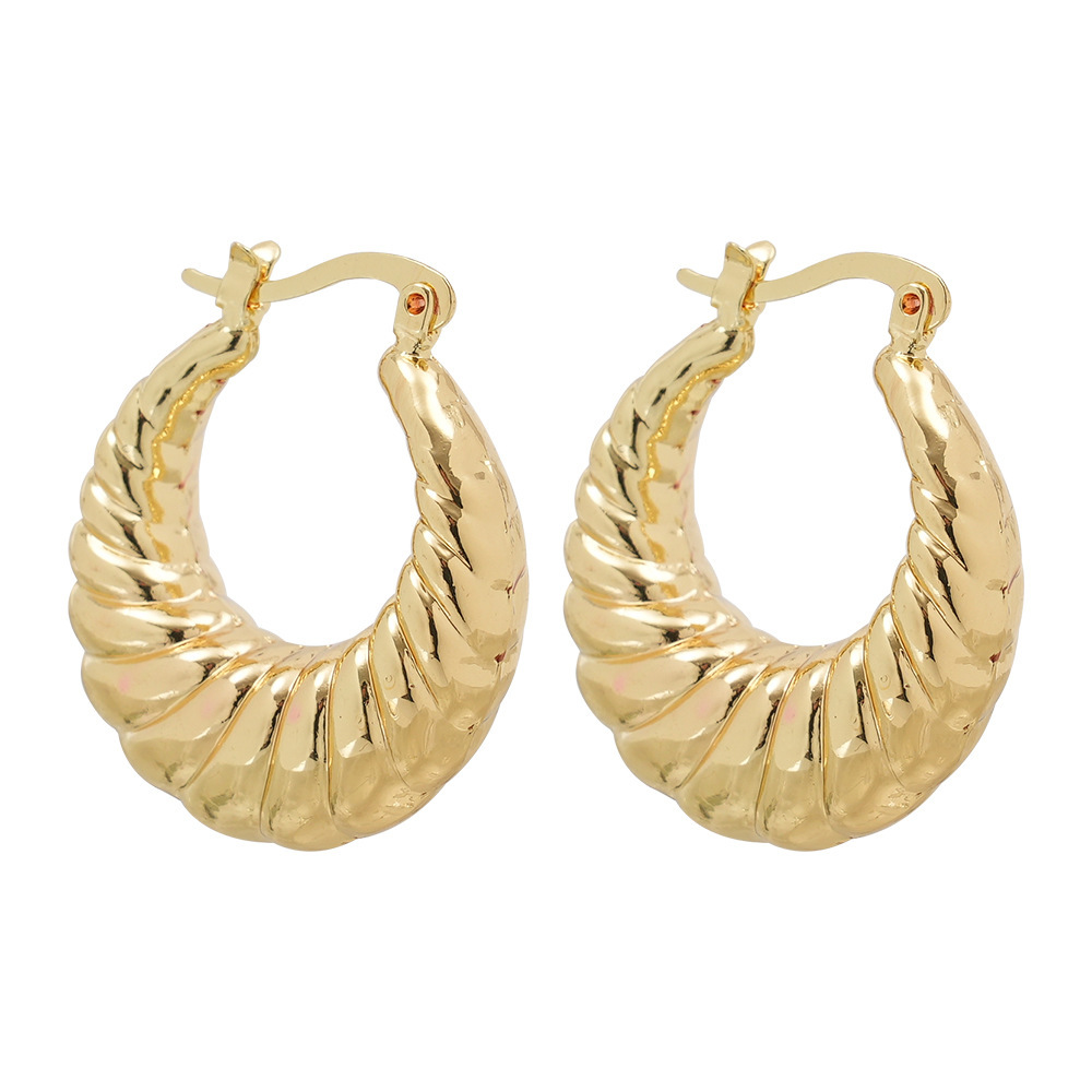 铜材 欧美空心光面新品朋克风耳环跨境亚马逊热销麻花金属配饰