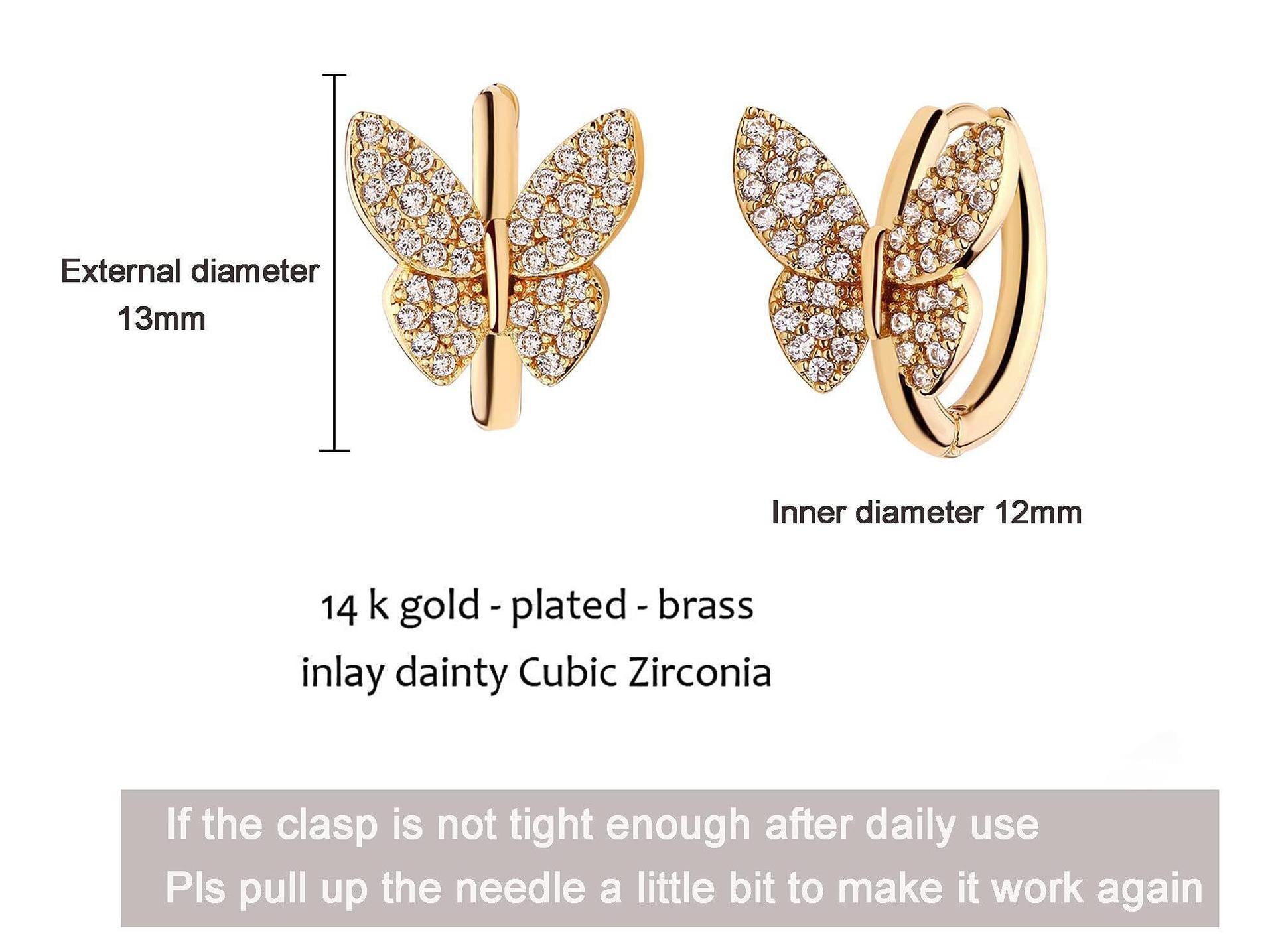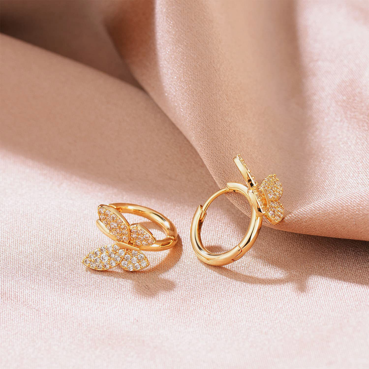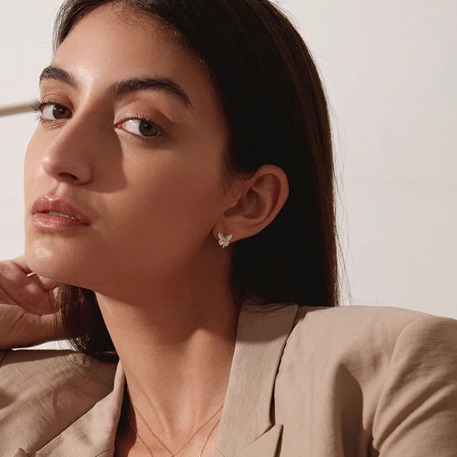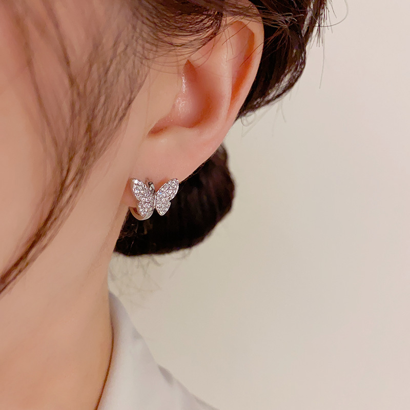 跨境亚马逊热卖时尚气质高级感微镶蝴蝶耳扣百搭通勤耳环蝴蝶耳环
