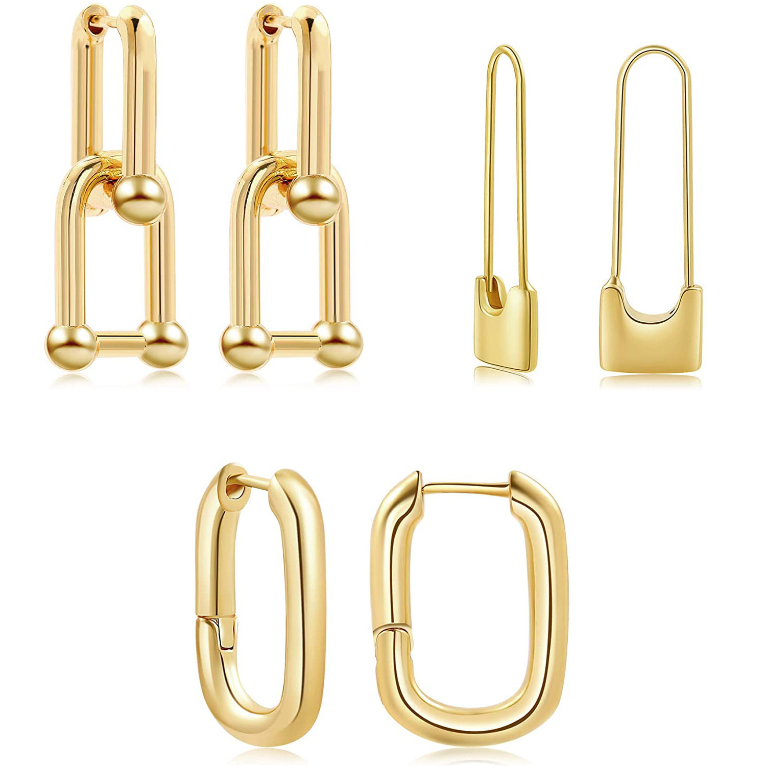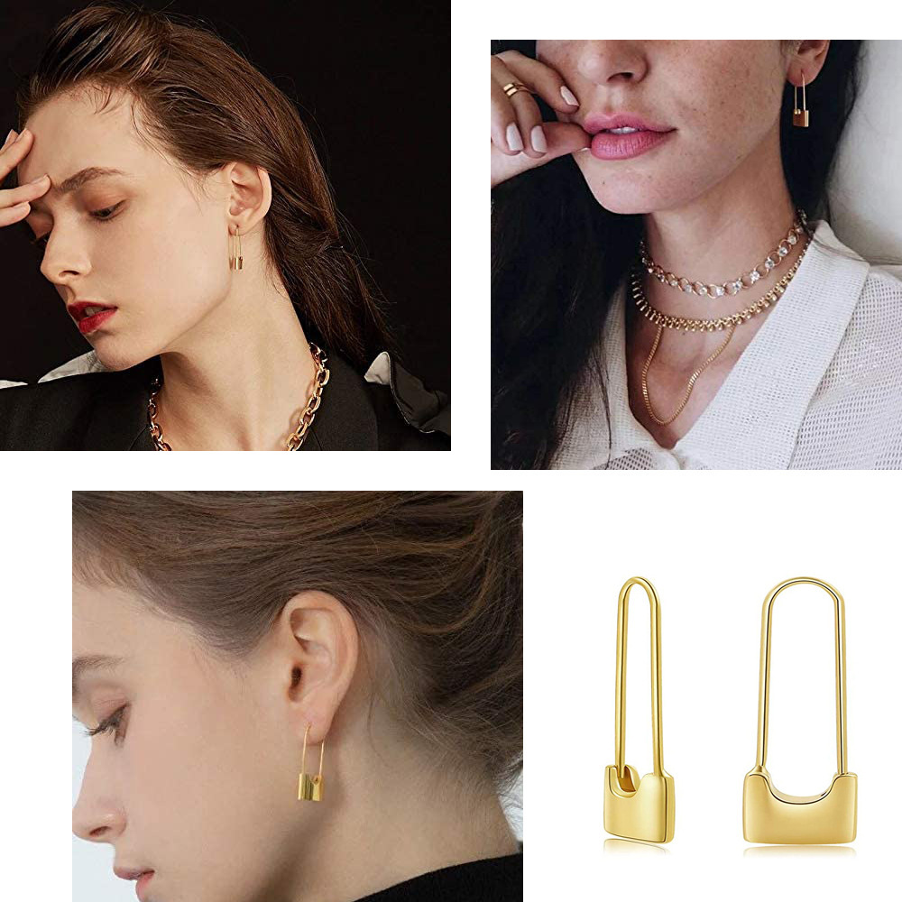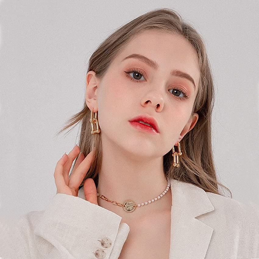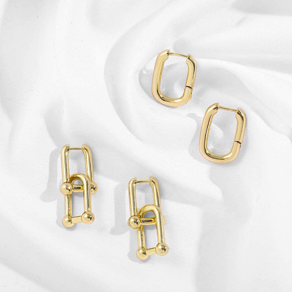 跨境热销U形圆球相扣耳环耳坠个性简约别针耳环ins小众潮流耳饰品
