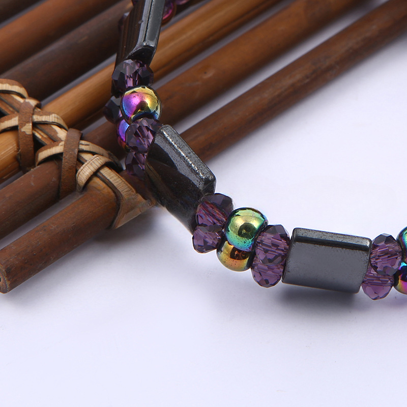 跨境亚马逊爆款双层彩色磁石手链 赤铁矿宝石手链 手工编织手串