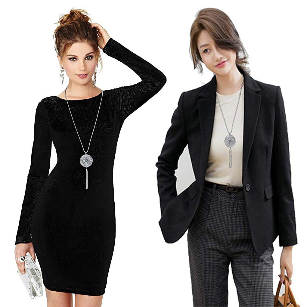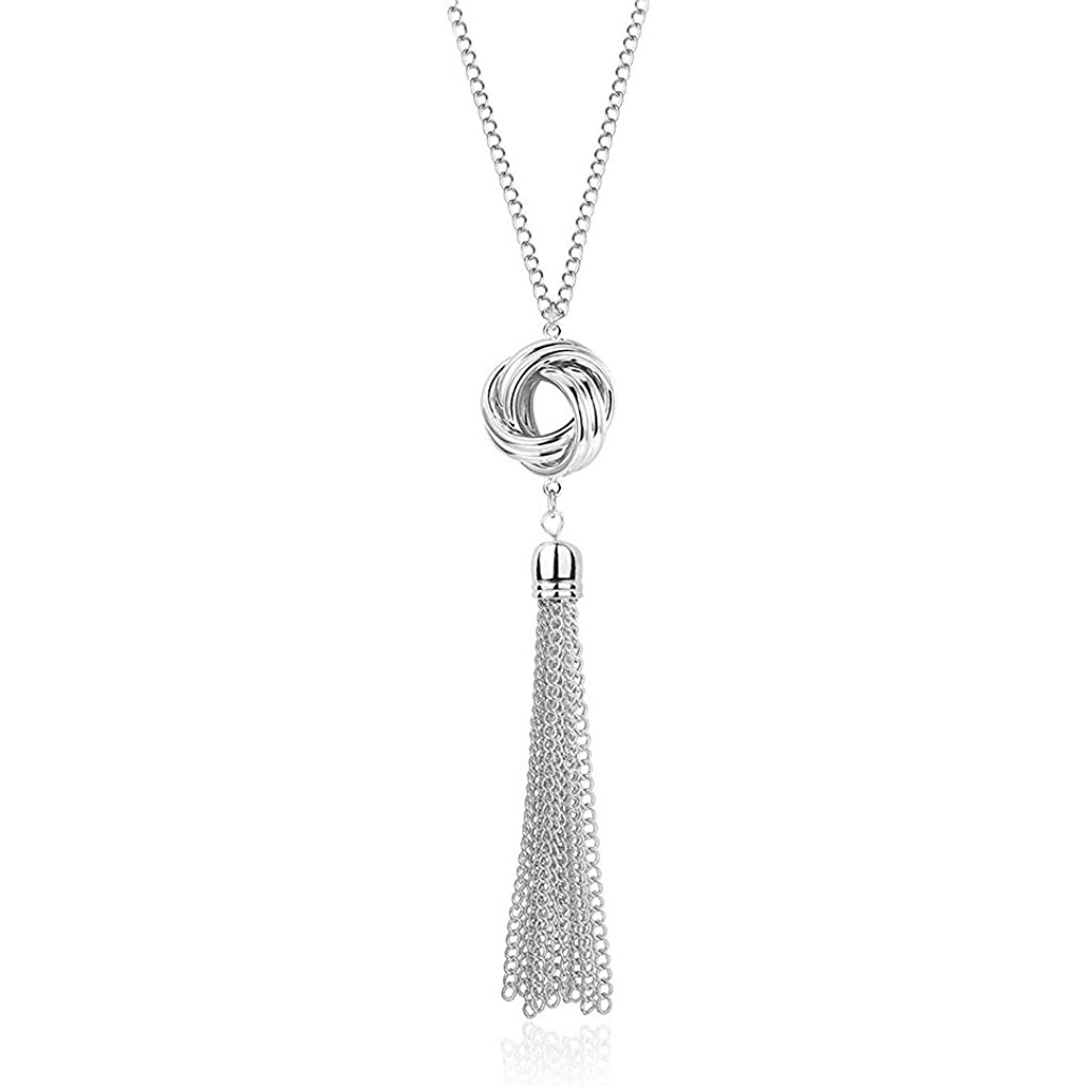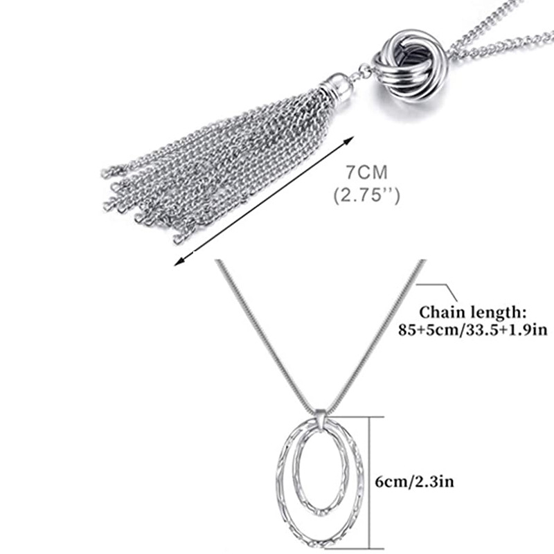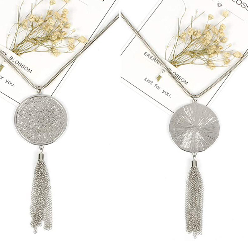 跨境镂空圆盘吊坠流苏长项链流行民族风项饰双层圆圈毛衣链批发