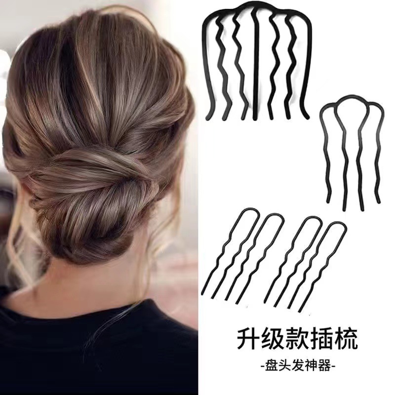 盘发神器丸子头插梳6件套花苞发插编发簪发插多齿后脑勺发卡头饰