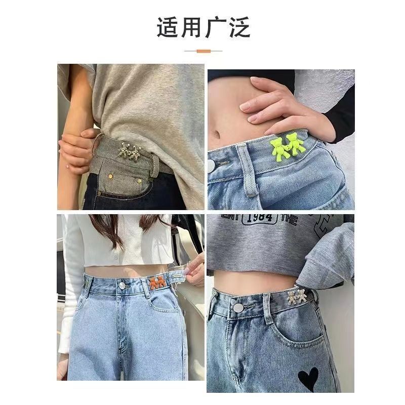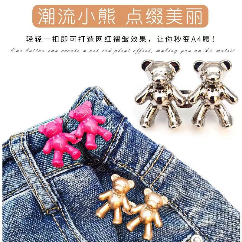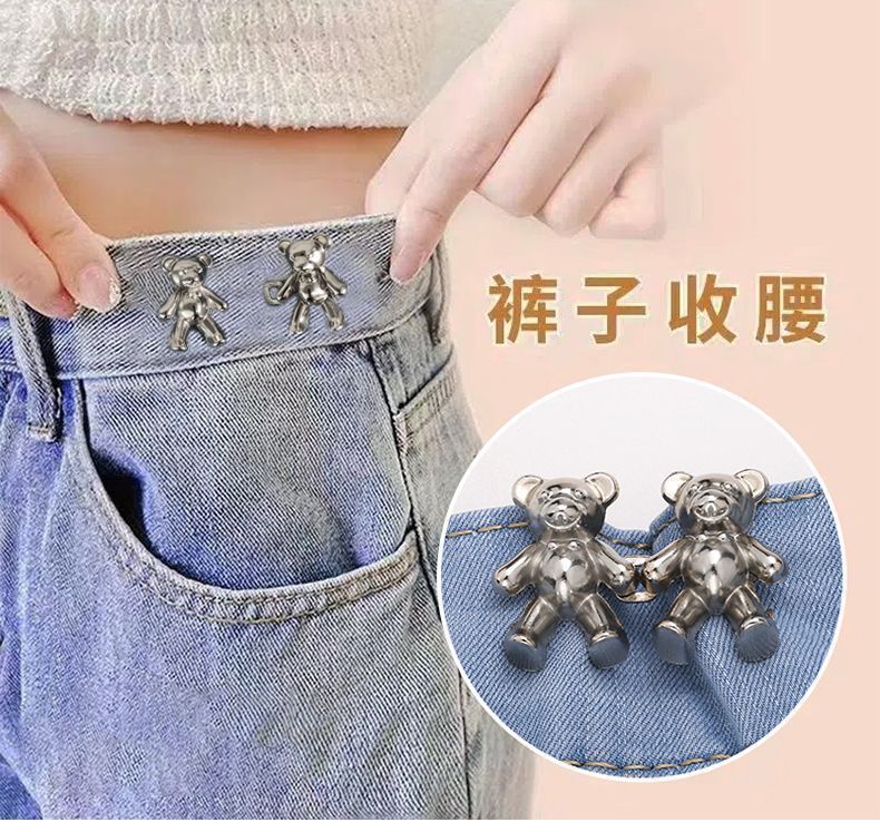 新款小熊收腰扣牛仔裤腰围改小神器裙子固定对扣装饰扣腰部调节扣