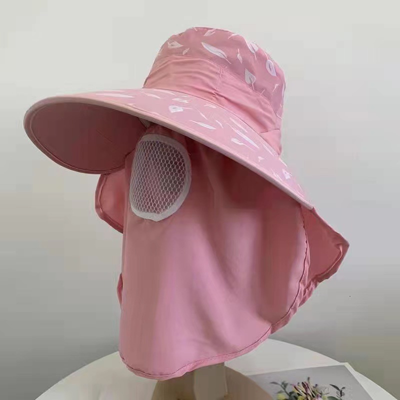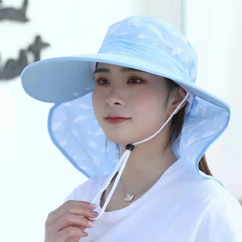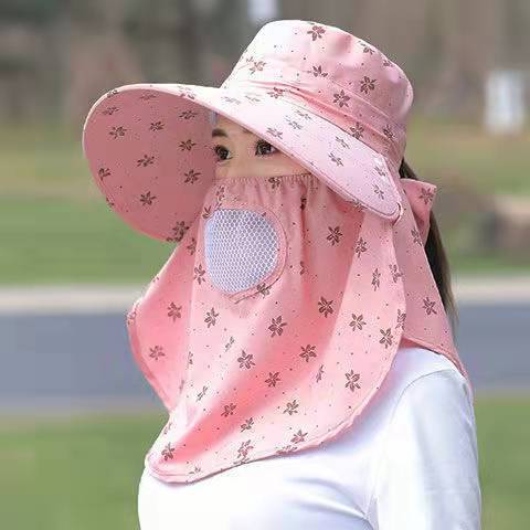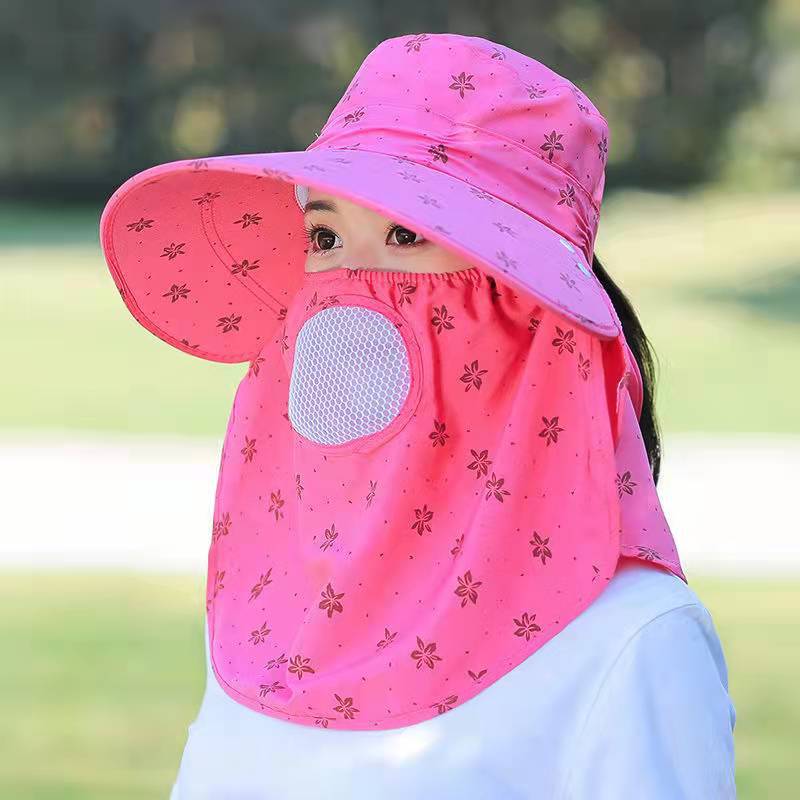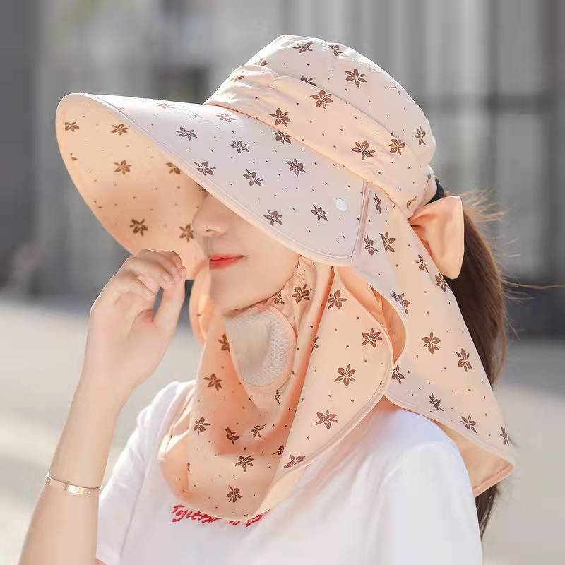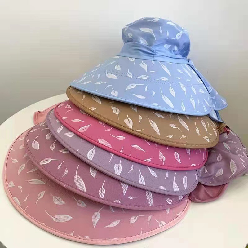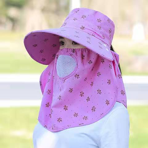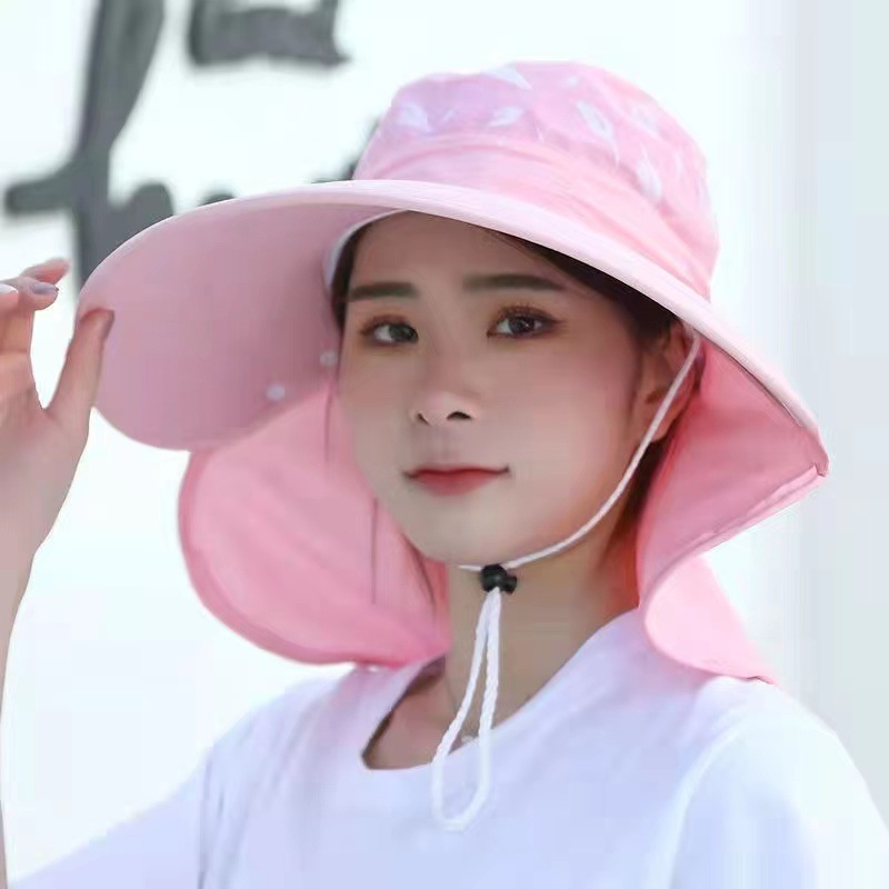 春夏新款棉麻防晒透气遮阳帽子户外骑车防紫外线可拆卸采茶帽女